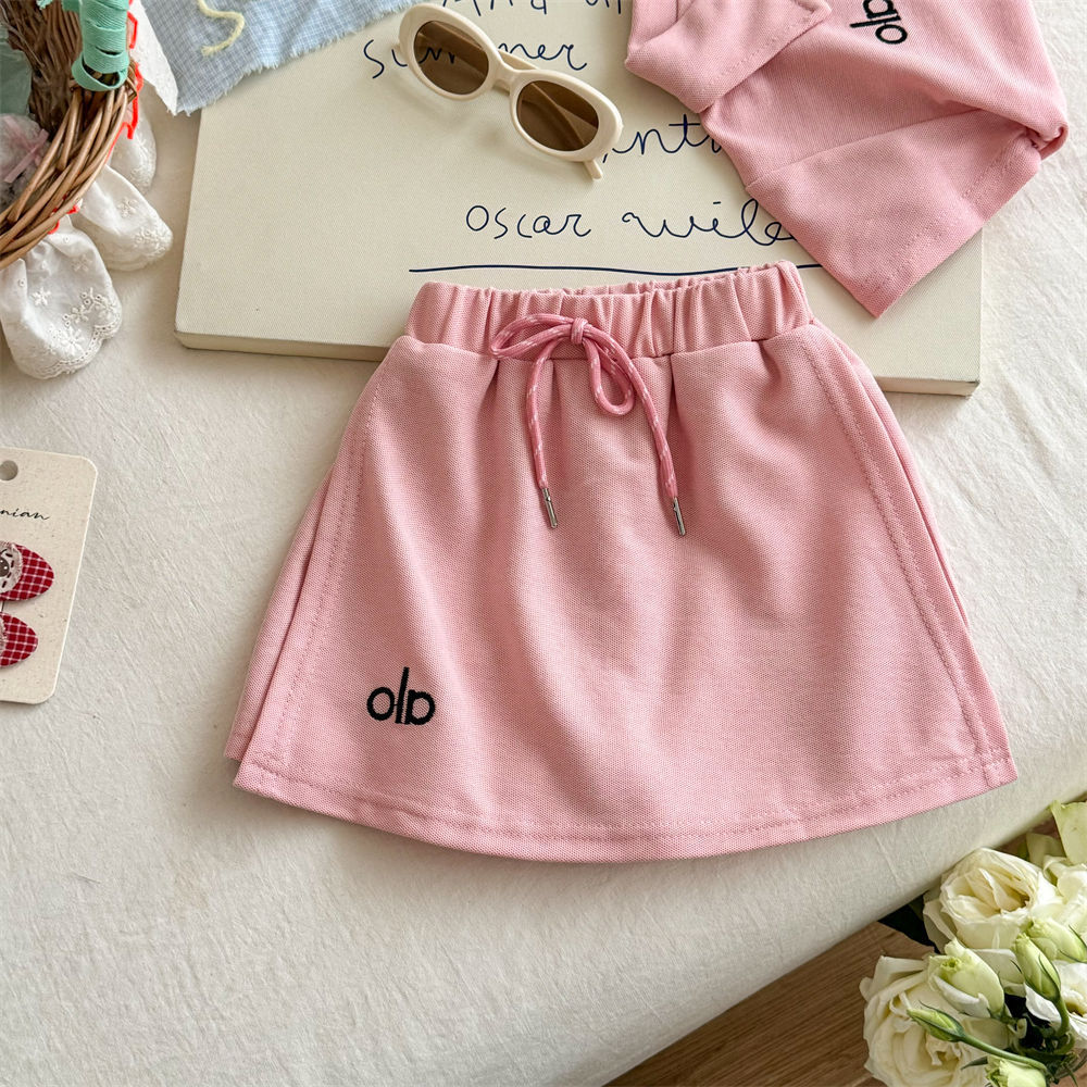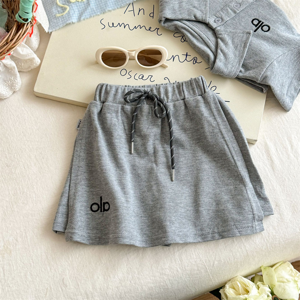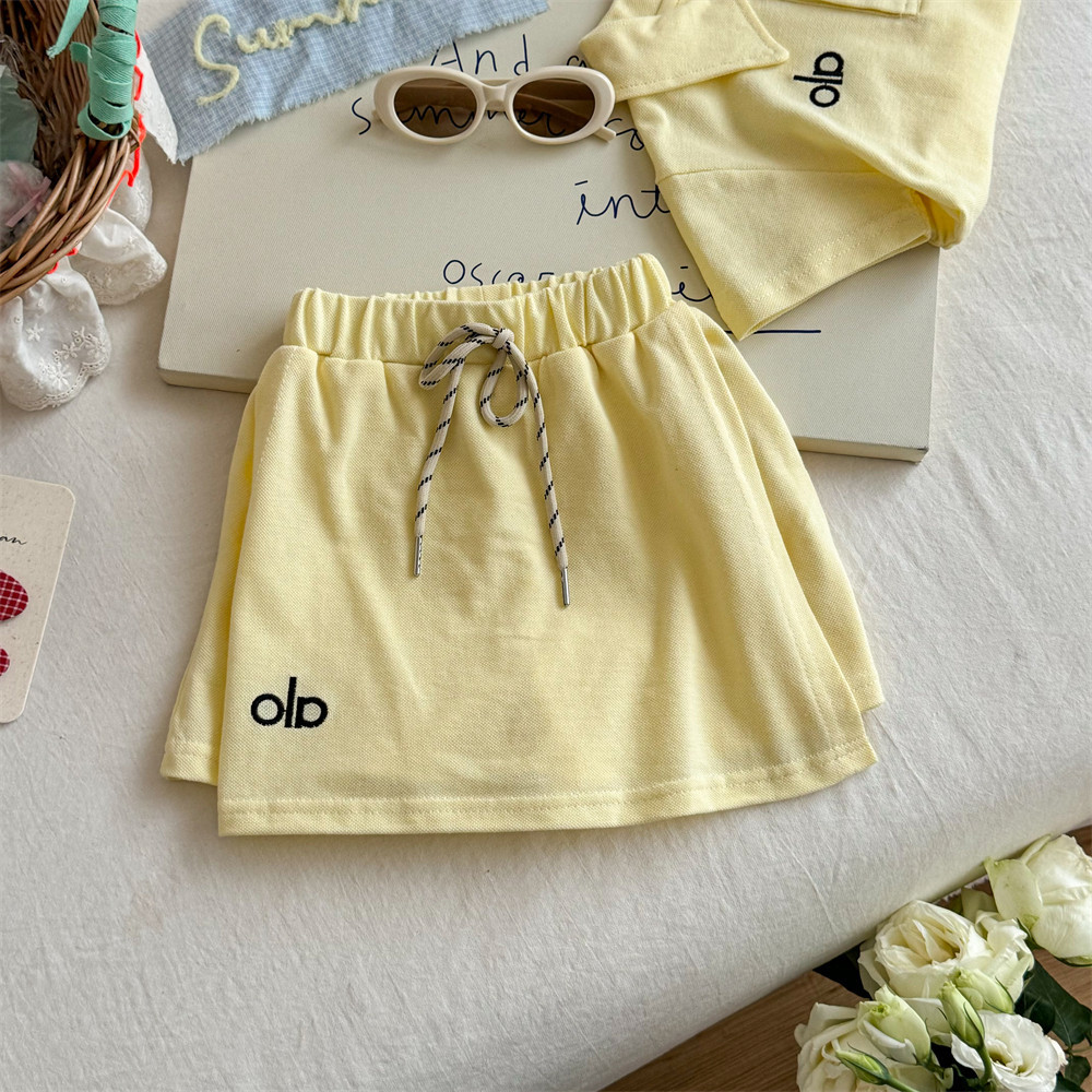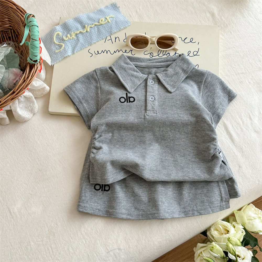 Linlinma 소녀의 달콤한 정장 2025 여름 대학 스타일 여름 드레스 소녀 반팔 폴로 셔츠와 치마 바지 투피스 세트