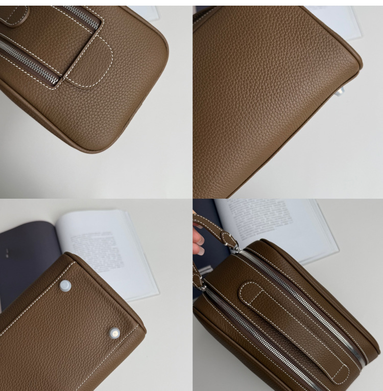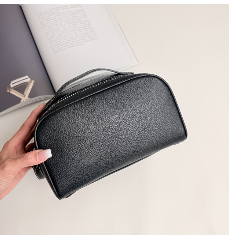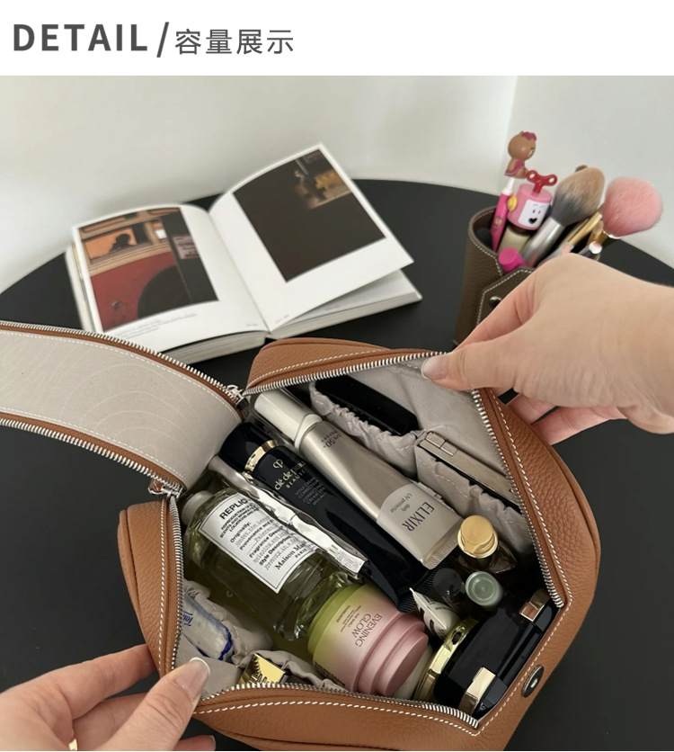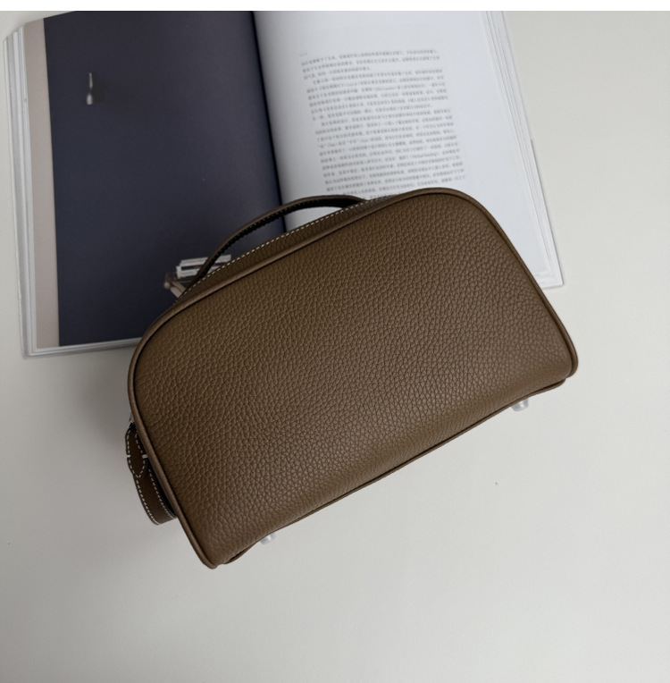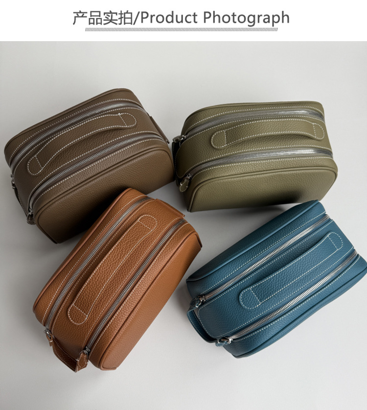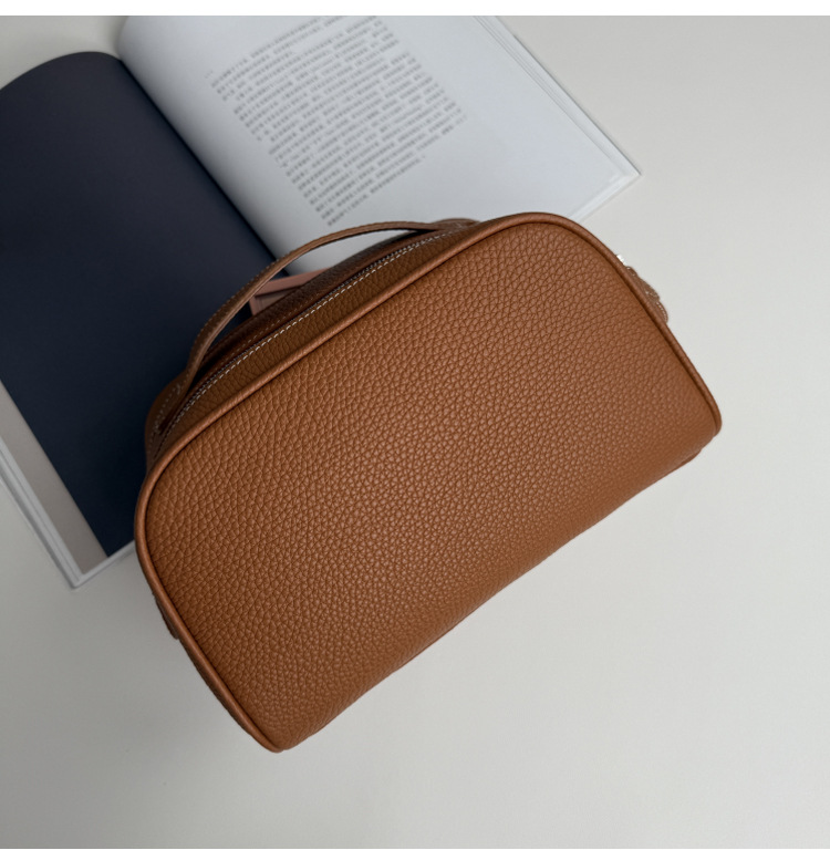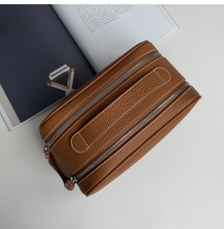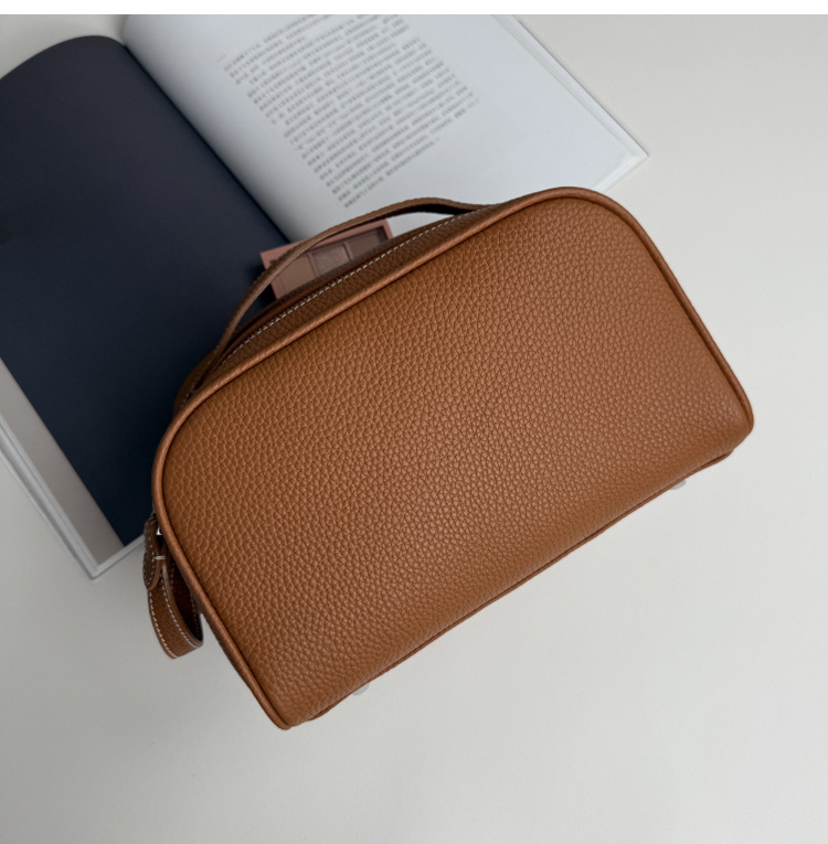 심플하고 고급스러운 화장품 가방, 1층 소가죽 세면도구 가방, 천연가죽 여행용 휴대용 대용량 수납가방스토어 가기