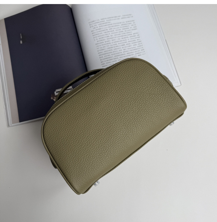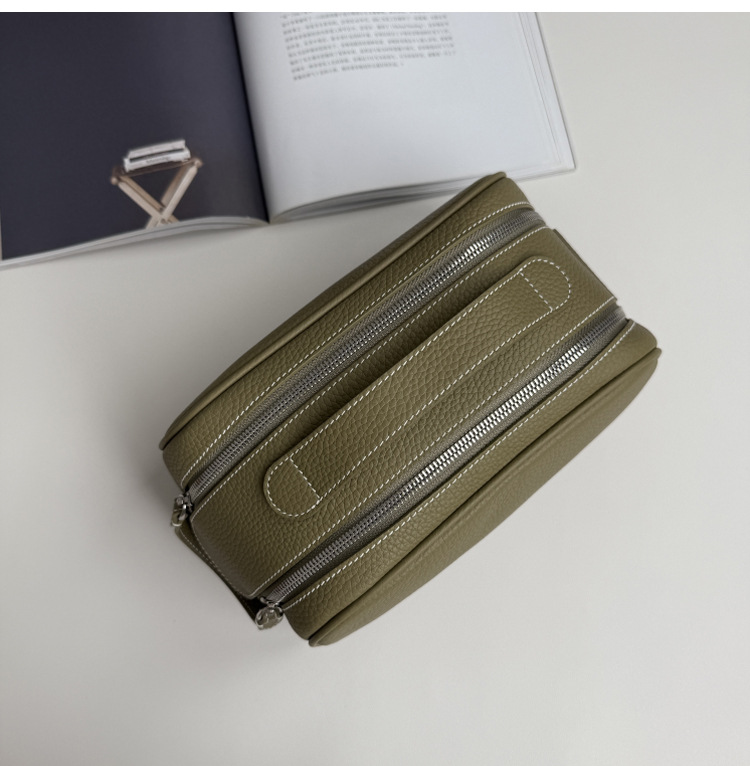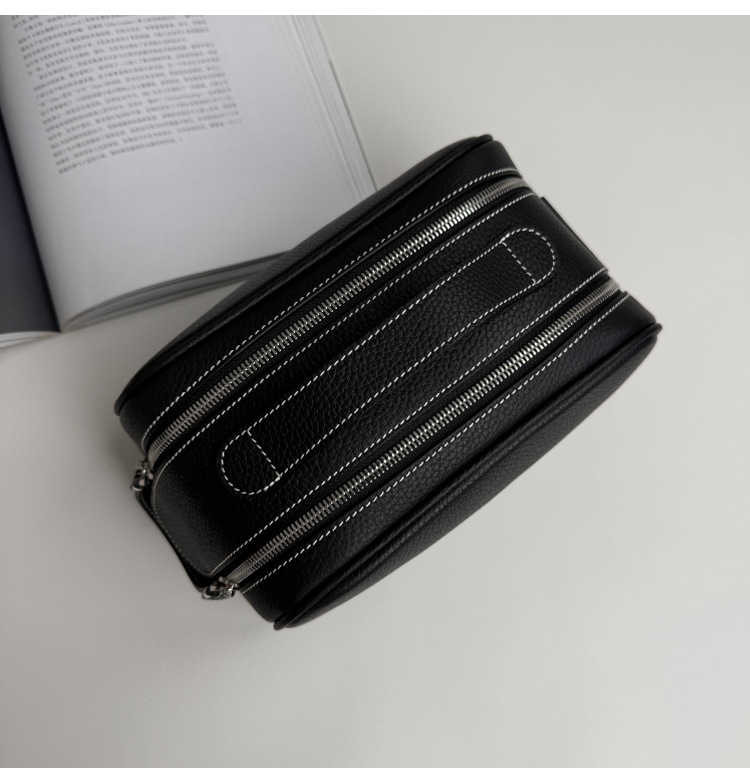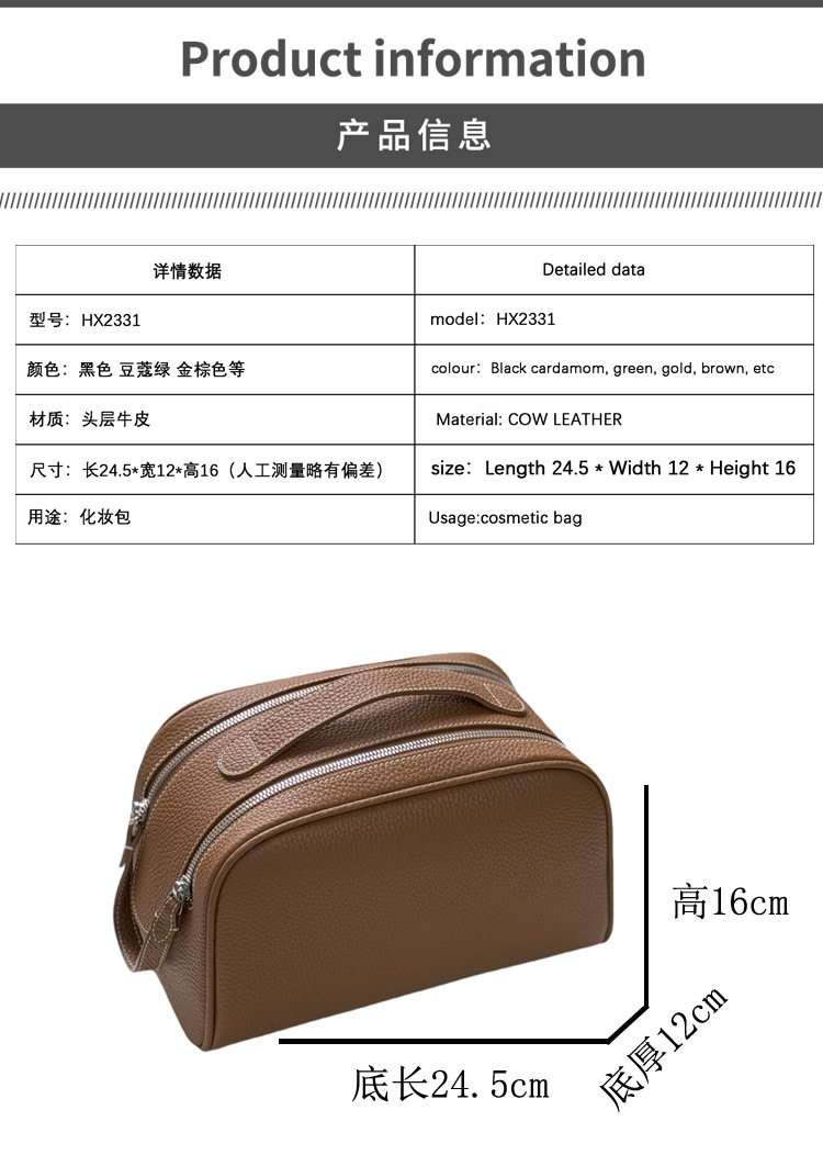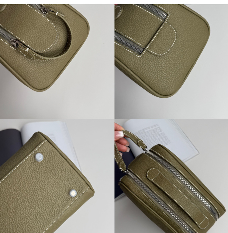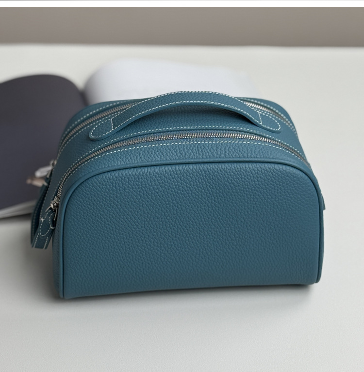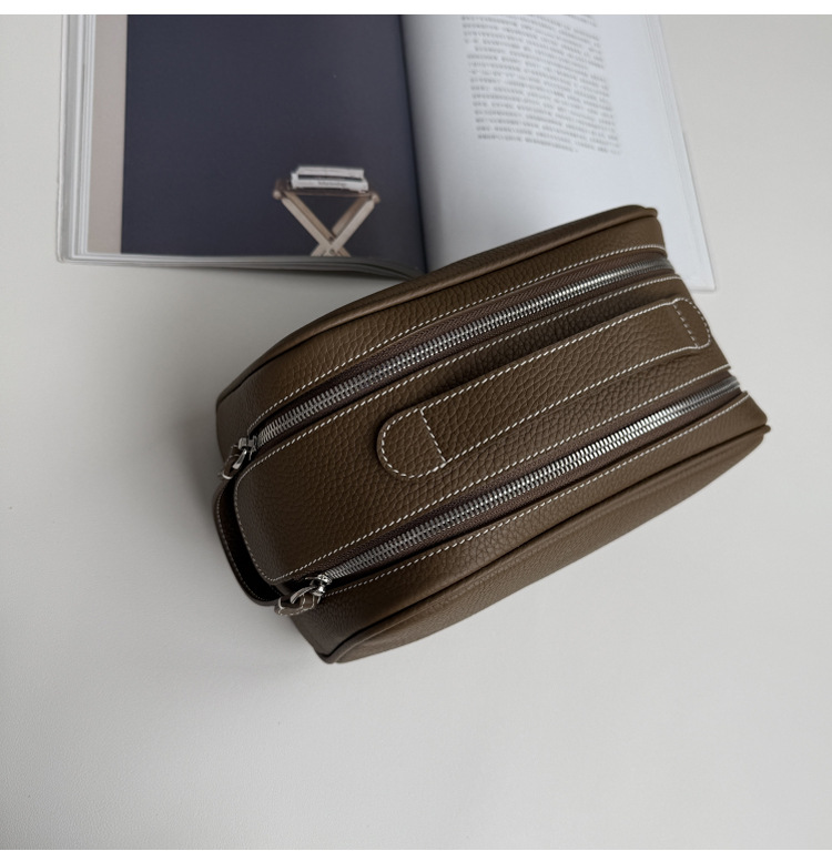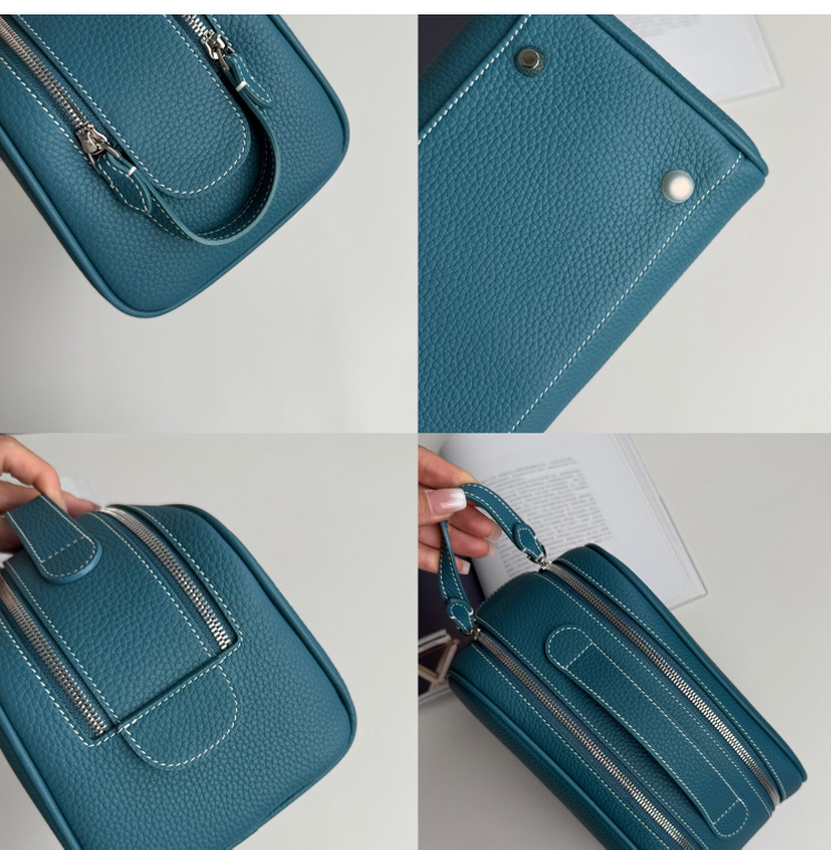 심플하고 고급스러운 화장품 가방, 1층 소가죽 세면도구 가방, 천연가죽 여행용 휴대용 대용량 수납가방스토어 가기