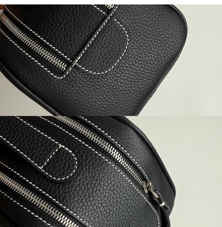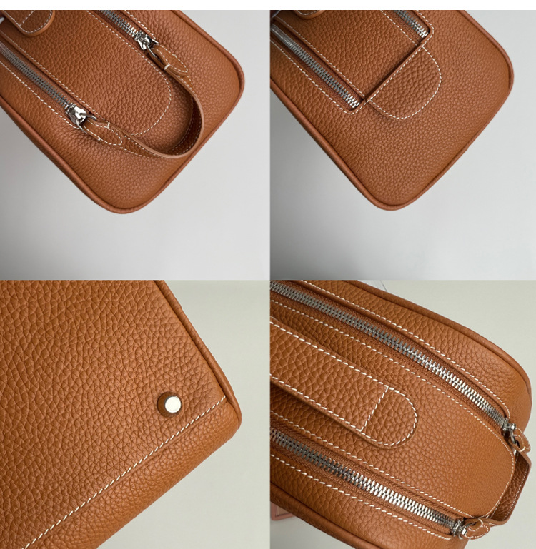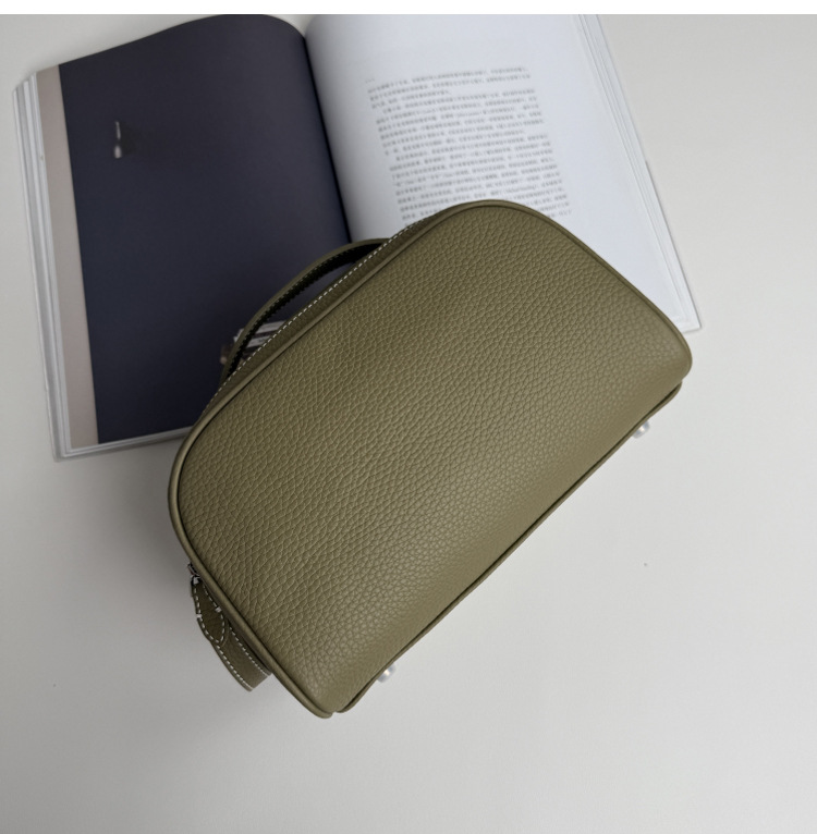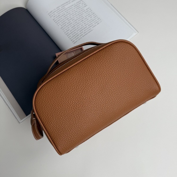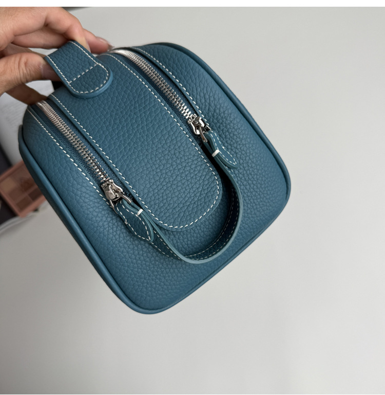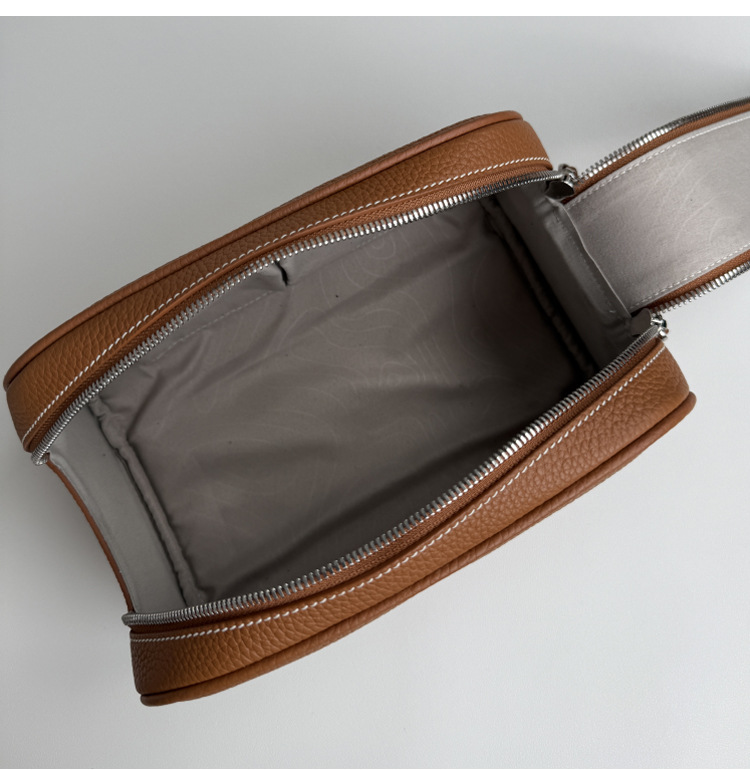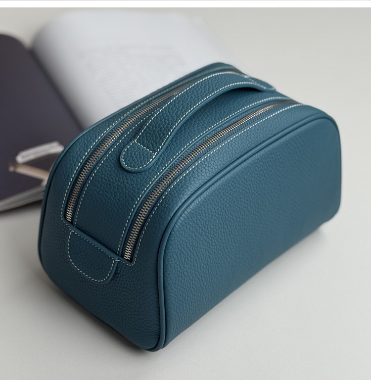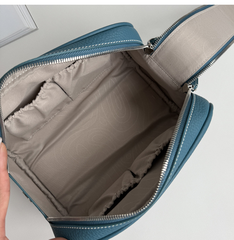 심플하고 고급스러운 화장품 가방, 1층 소가죽 세면도구 가방, 천연가죽 여행용 휴대용 대용량 수납가방스토어 가기