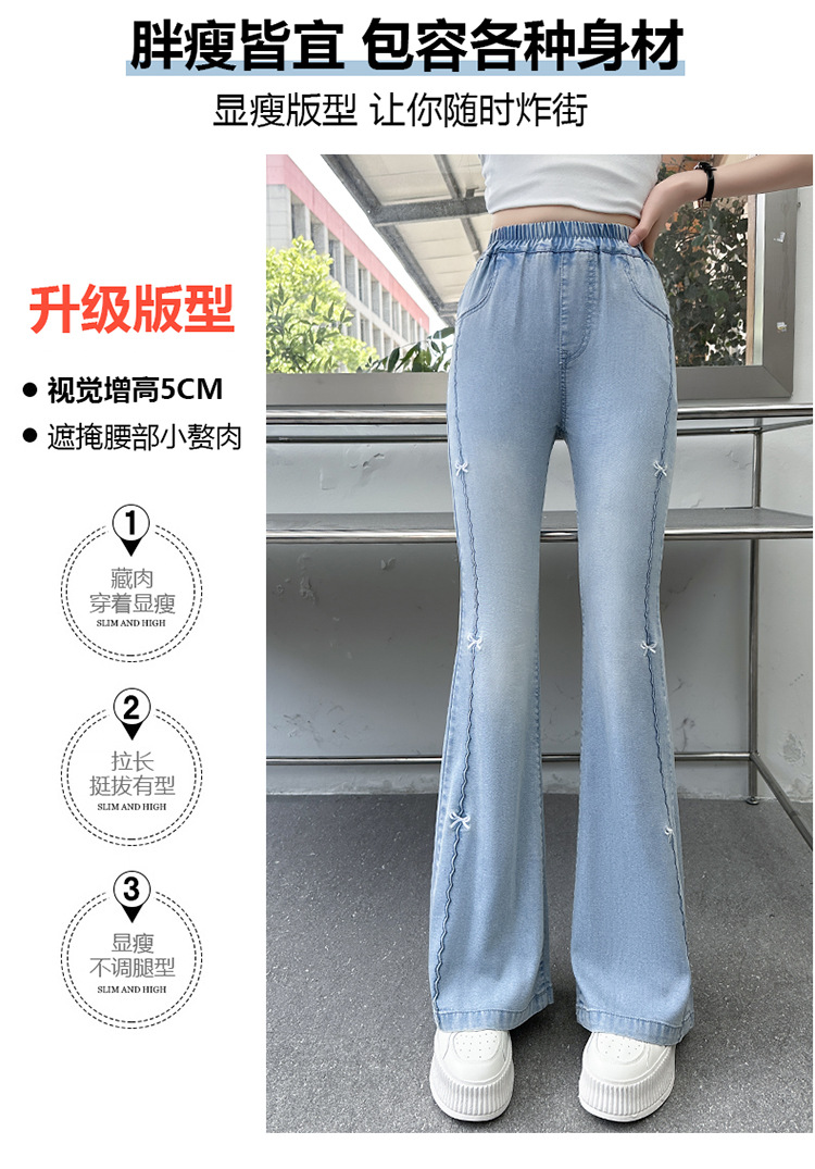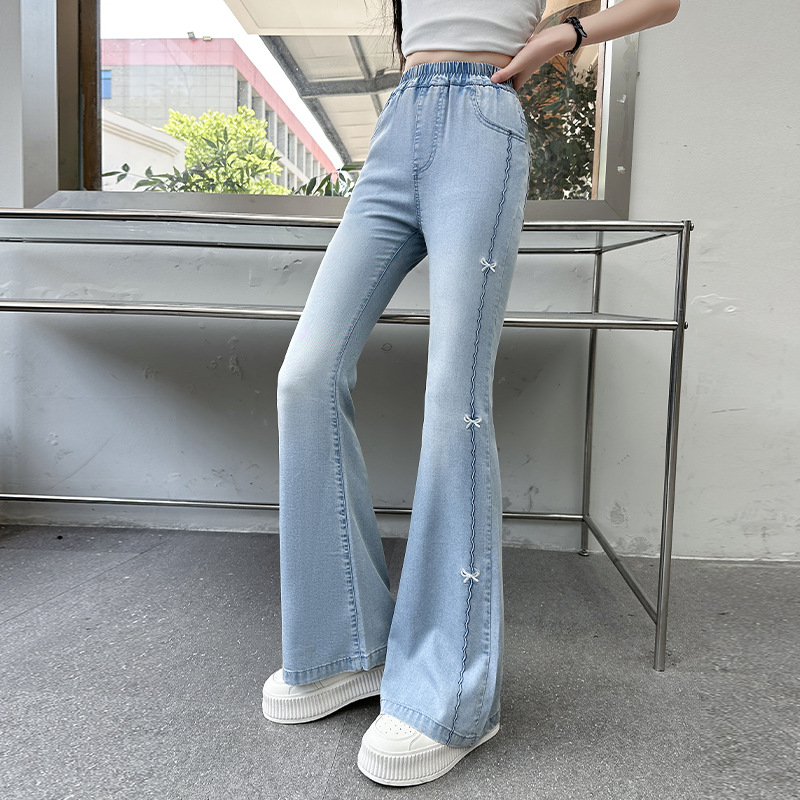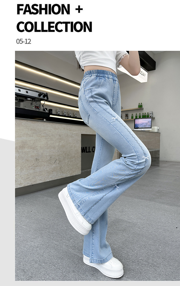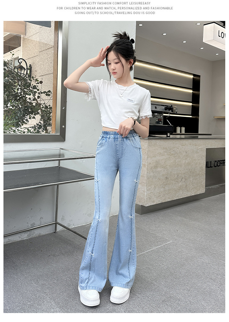 여아 바지 여름 2026 신상 한국 스타일 세련된 얇은 청바지 아동용 중대형 아동용 리본 플레어 팬츠스토어 가기