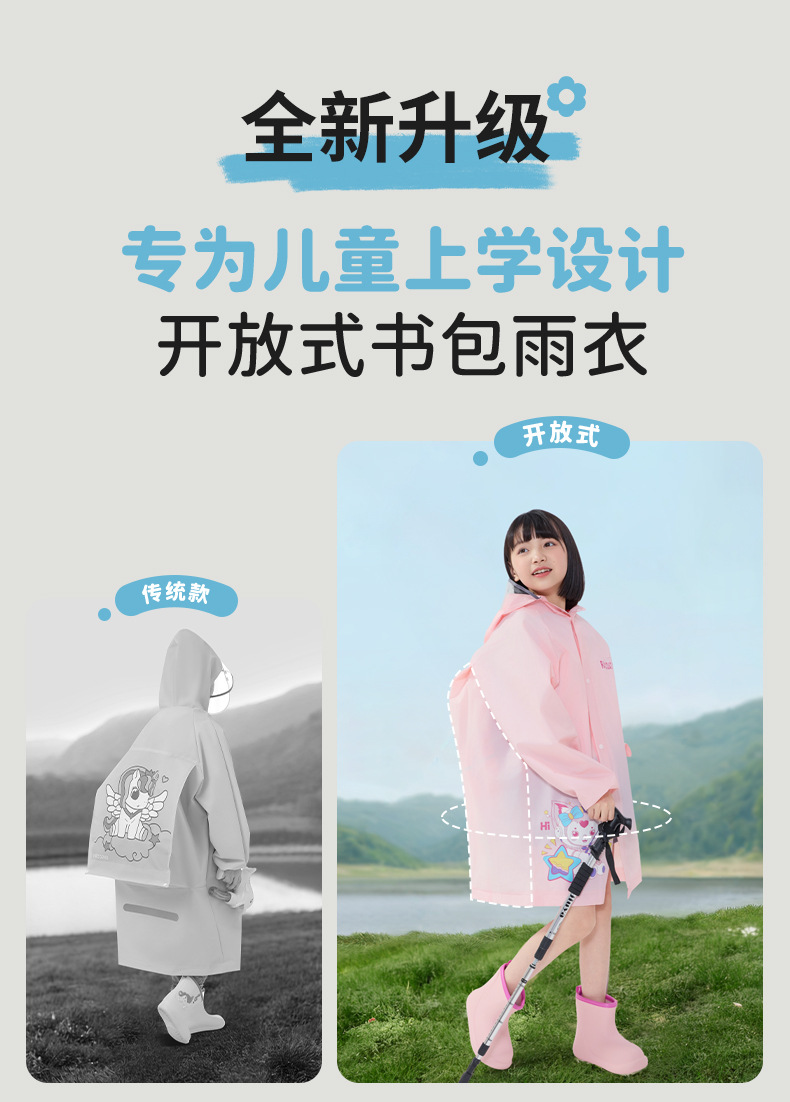 어린이 비옷, 여아 및 남아용, 초등학생을 위한 책가방 포함 특수 비옷, 전신 일체형 방수 비옷스토어 가기