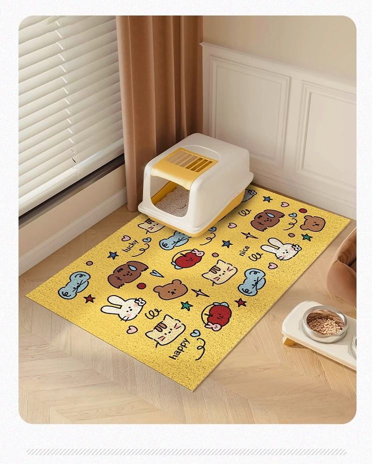 애완동물을 위한 만화 귀여운 고양이 모래 매트, 물 튀김 방지 및 모래 제어 바닥 매트, 초대형 얼룩 방지 및 물 튀김 방지 와이어 링 바닥 매트