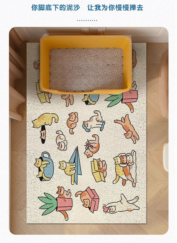 애완동물을 위한 만화 귀여운 고양이 모래 매트, 물 튀김 방지 및 모래 제어 바닥 매트, 초대형 얼룩 방지 및 물 튀김 방지 와이어 링 바닥 매트스토어 가기