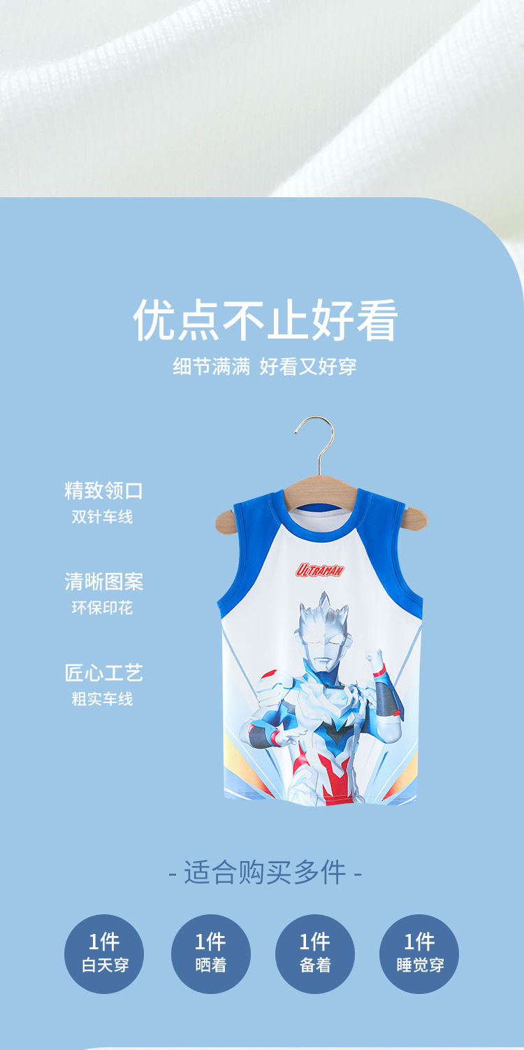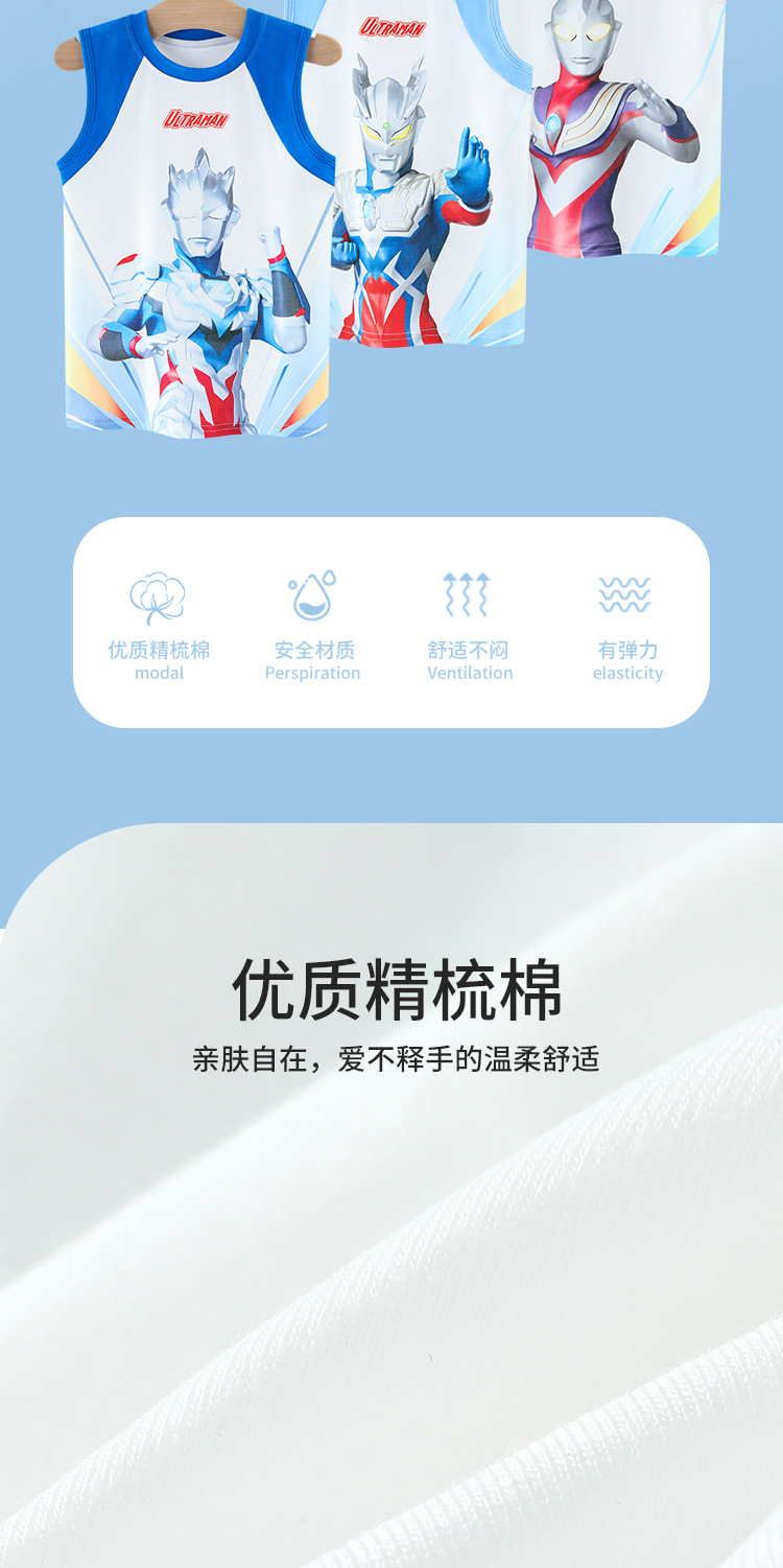 울트라 맨 아동 의류 소년 민소매 티셔츠 어린이 여름 새 스타일 순수 코튼 베이비 조끼 소년 만화 티셔츠 Zero스토어 가기