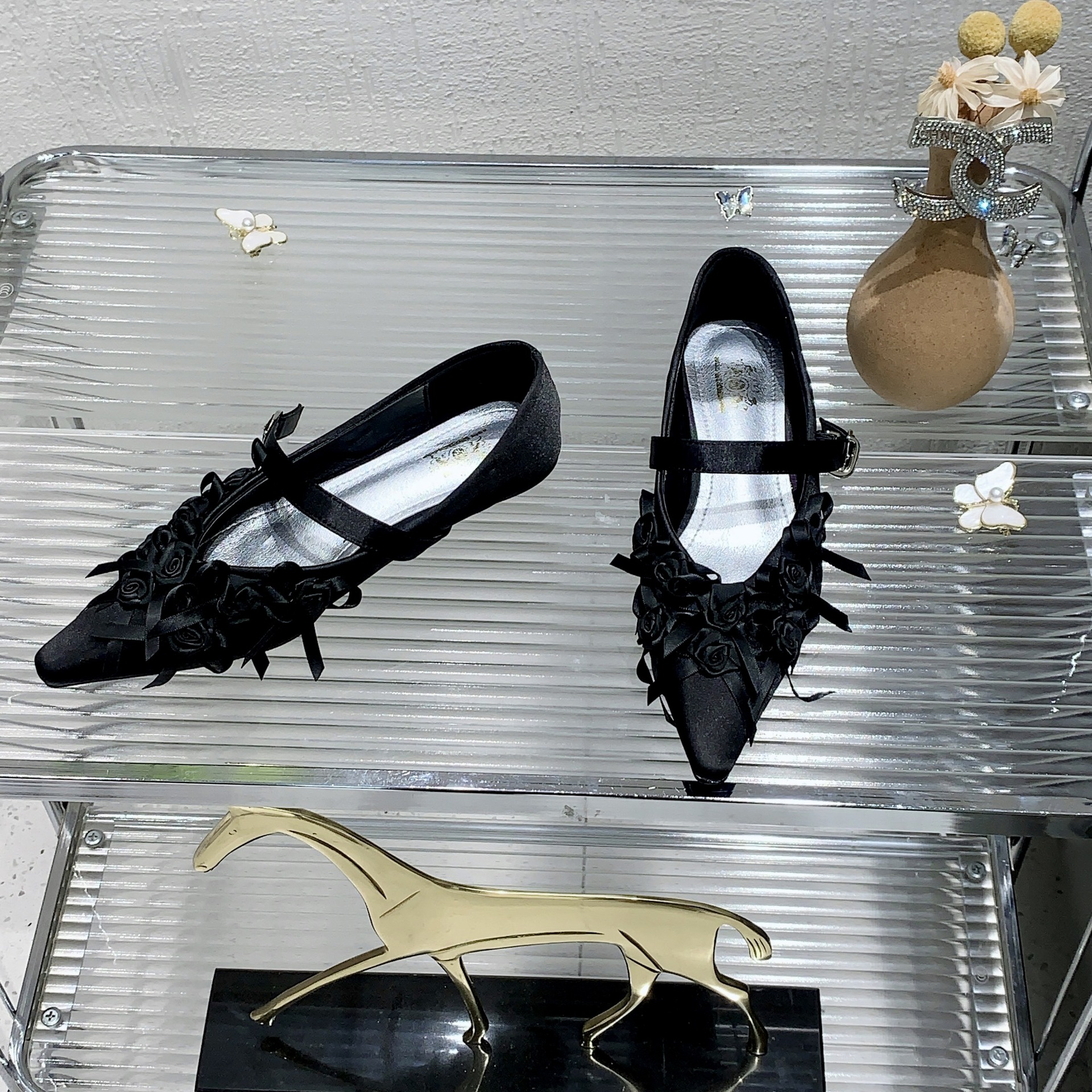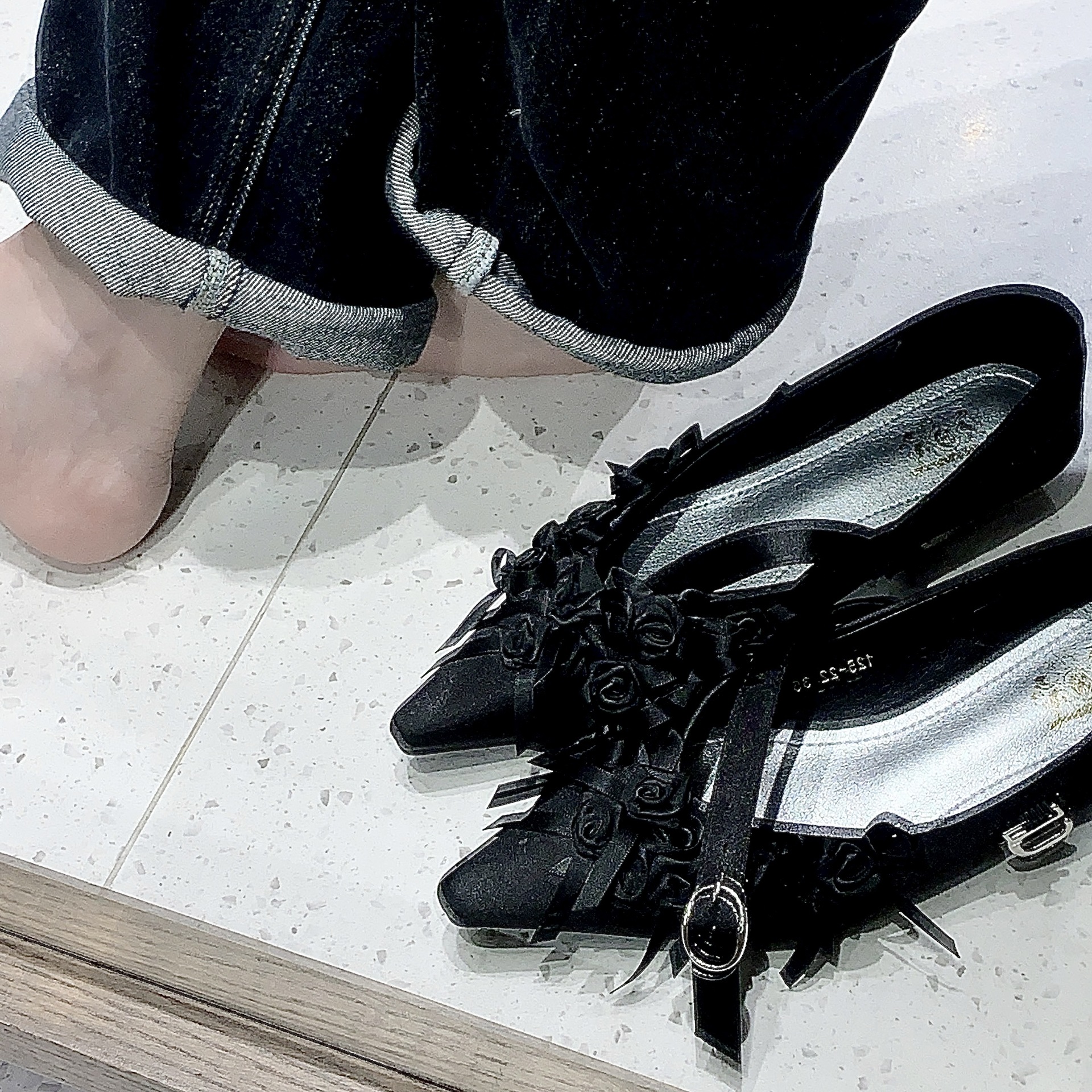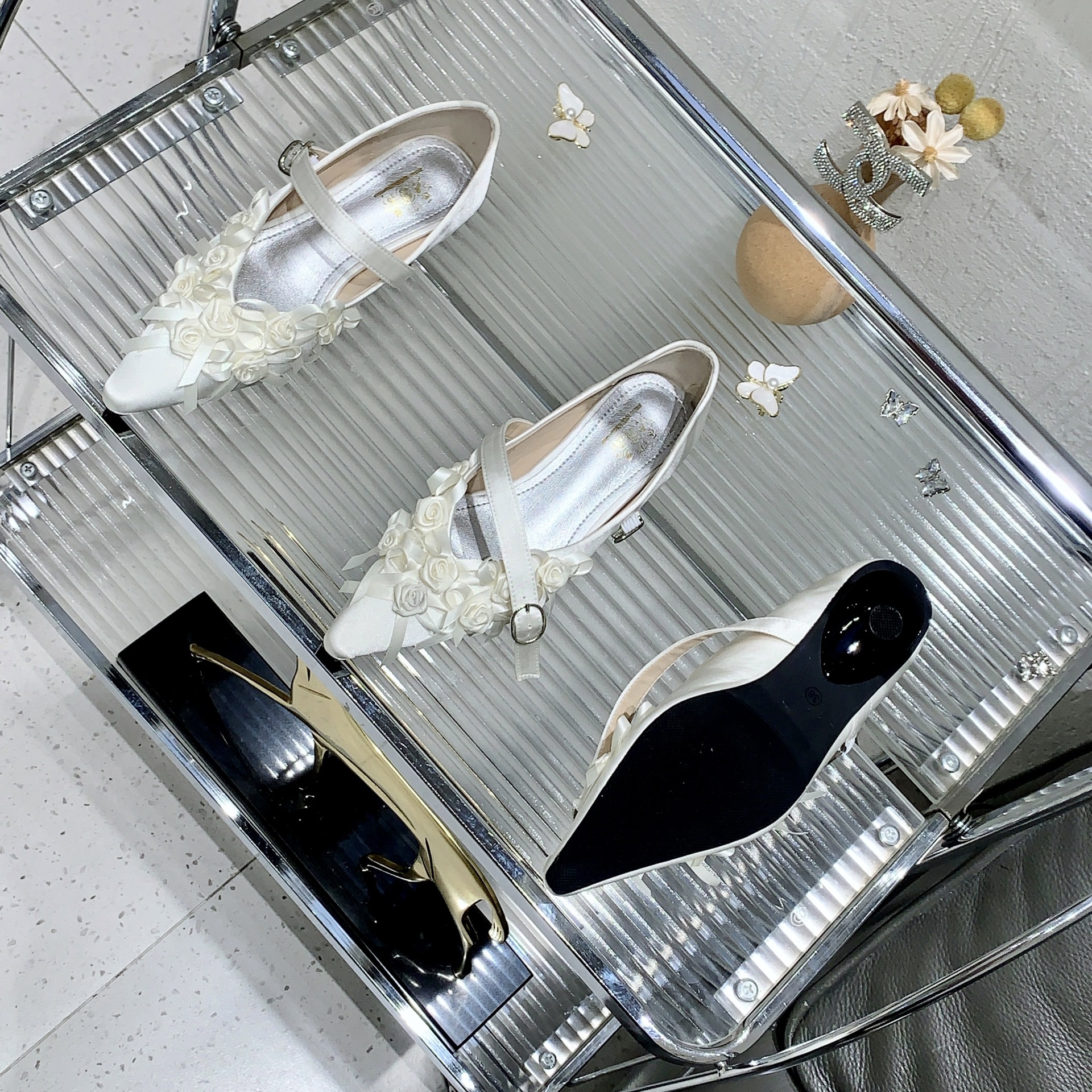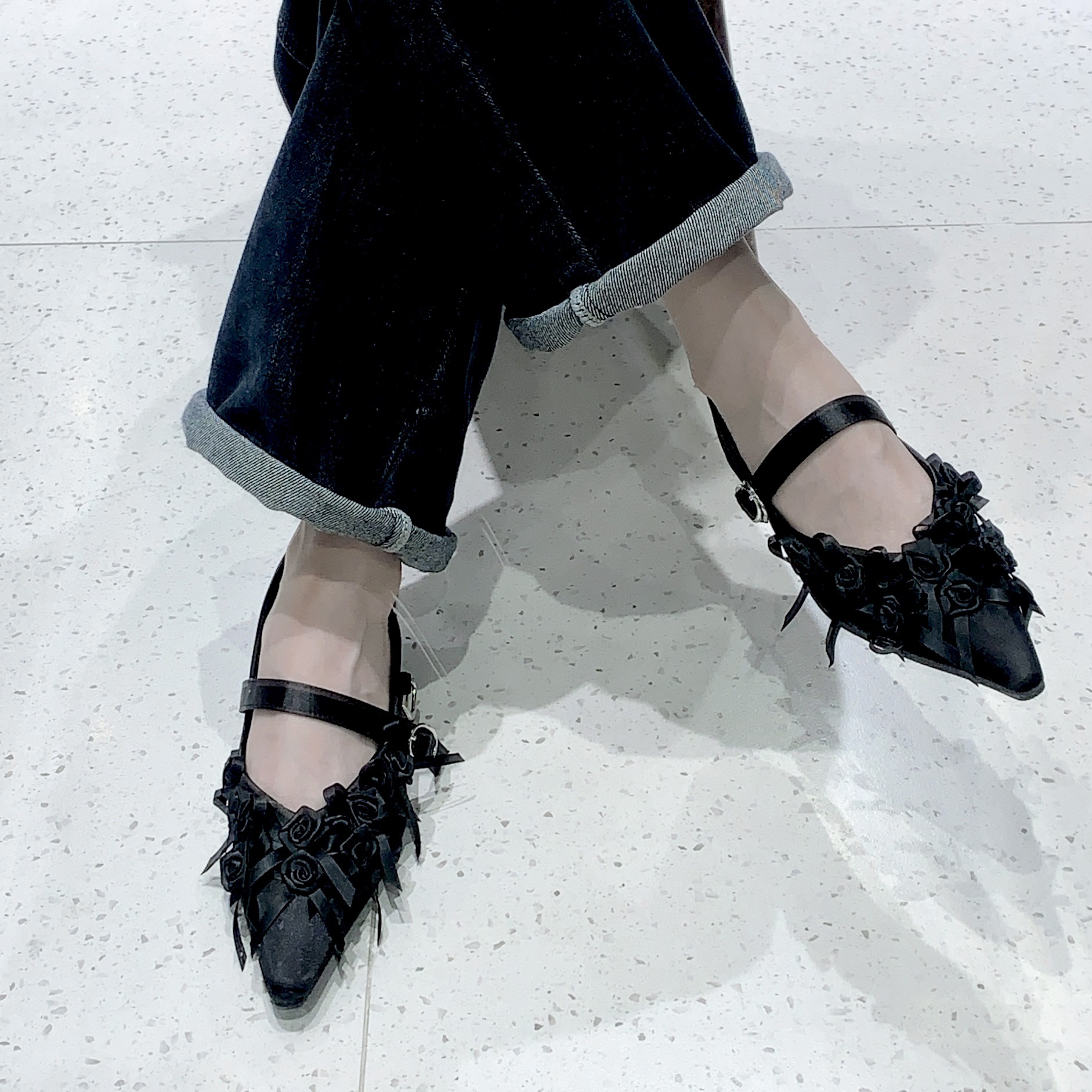재고 있음~ 리본 발레 스타일 포인티드 토 패션 여성 구두 한국 스타일 다용도 블랙 화이트