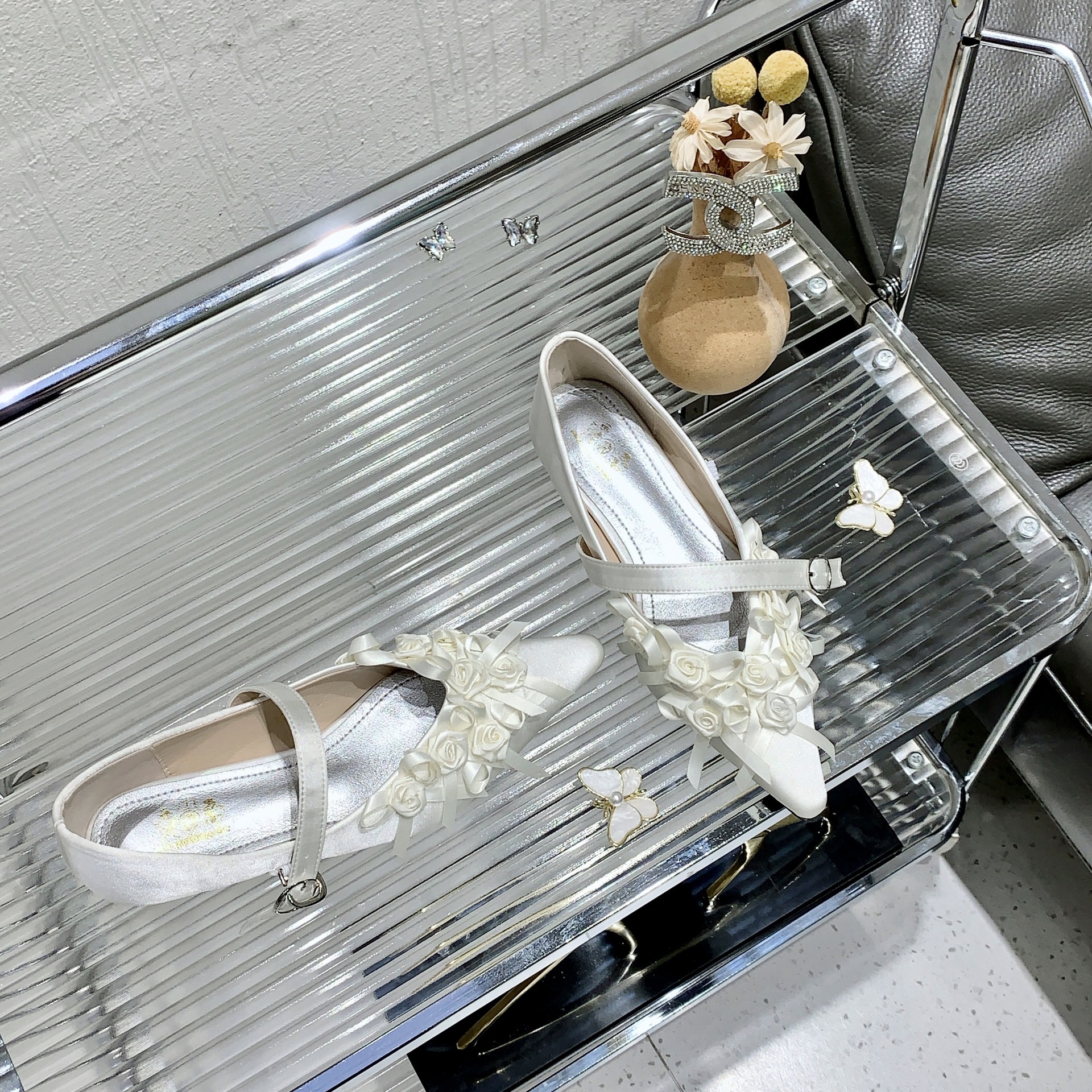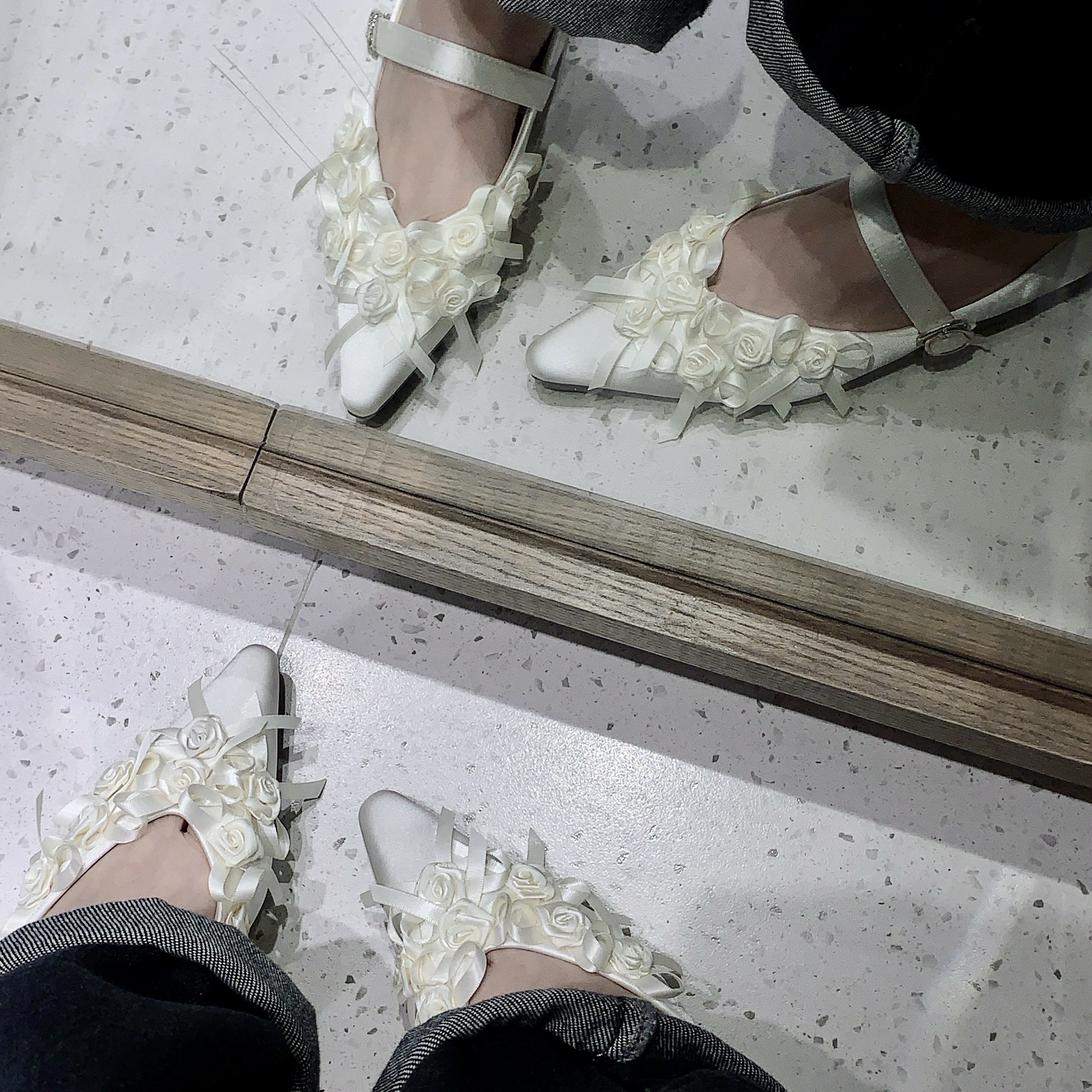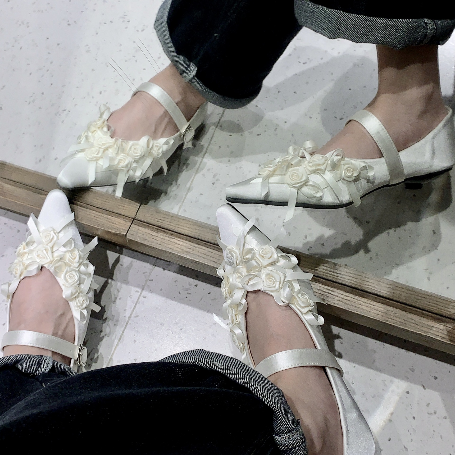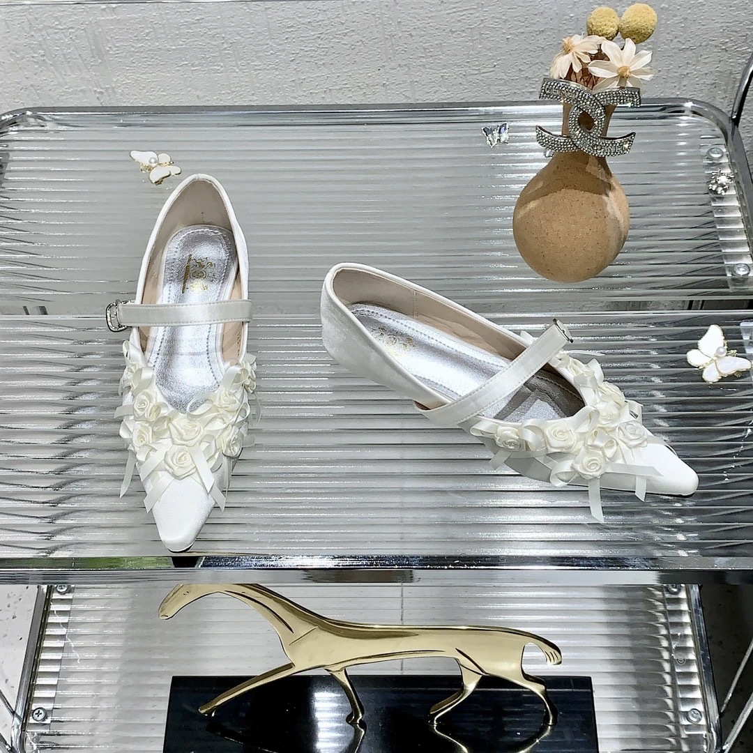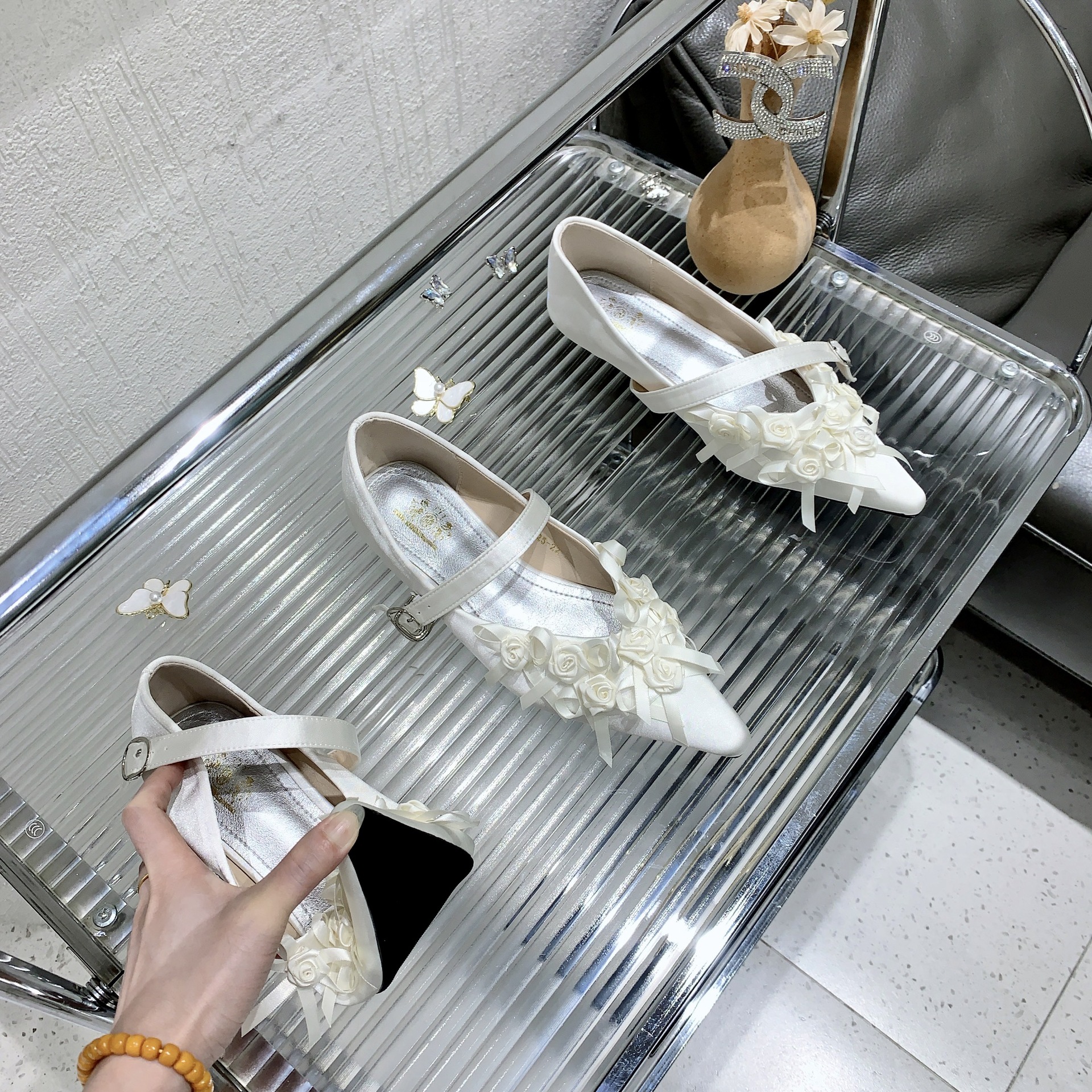 재고 있음~ 리본 발레 스타일 포인티드 토 패션 여성 구두 한국 스타일 다용도 블랙 화이트