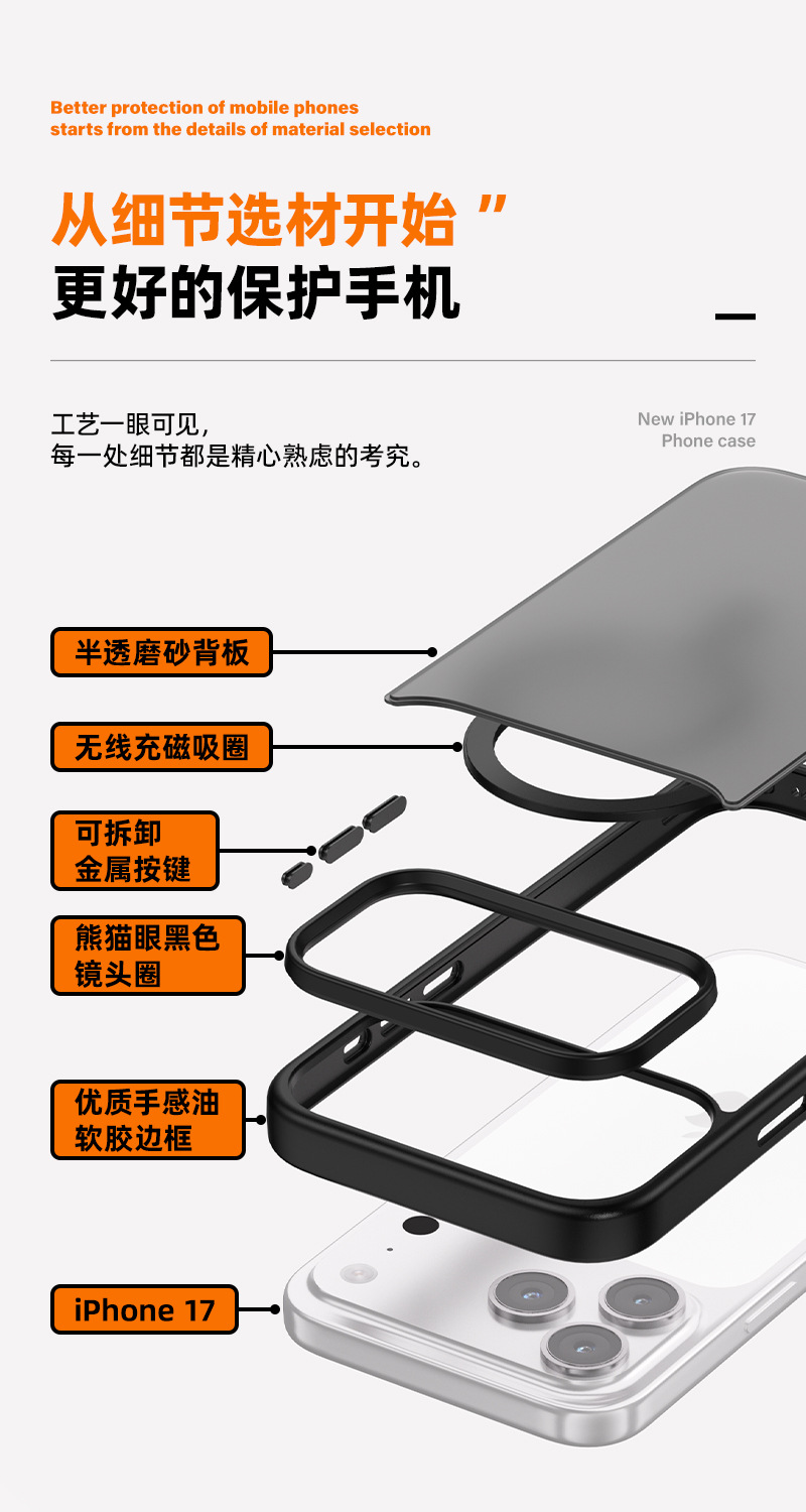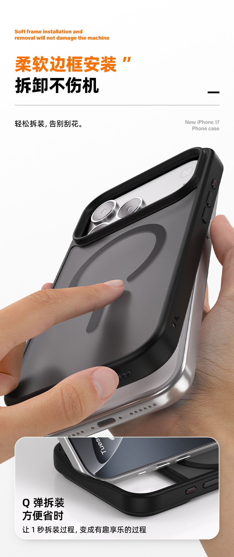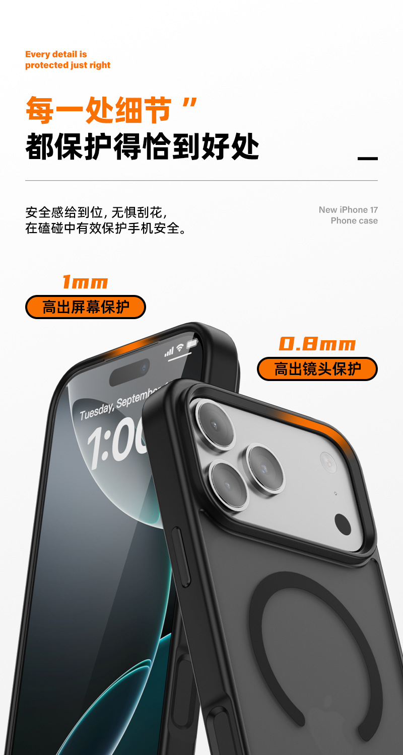 Apple 17pro에 적합한 새로운 iPhone 17 피부 느낌의 자기 흡입 휴대폰 케이스 고급 감각을 갖춘 모든 항목을 포함하는 낙하 방지 보호 커버