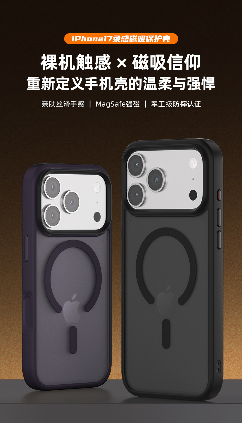 Apple 17pro에 적합한 새로운 iPhone 17 피부 느낌의 자기 흡입 휴대폰 케이스 고급 감각을 갖춘 모든 항목을 포함하는 낙하 방지 보호 커버스토어 가기
