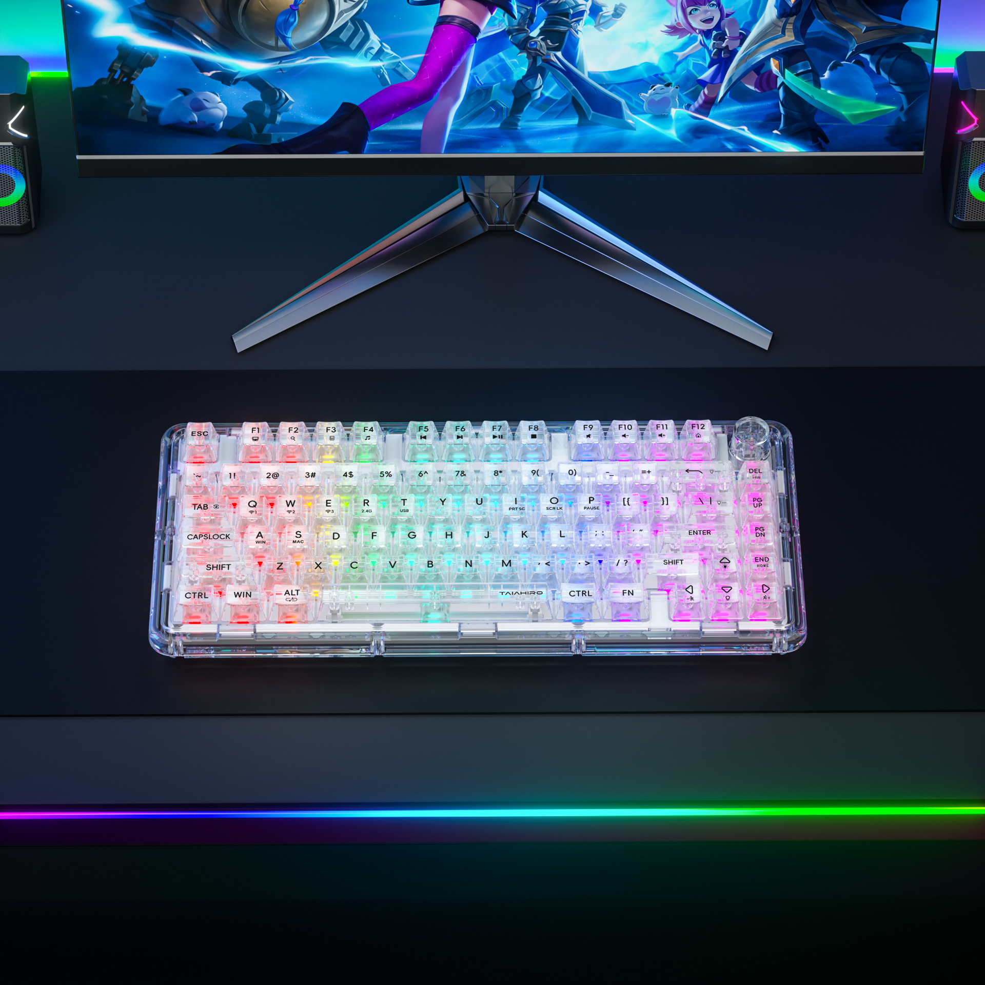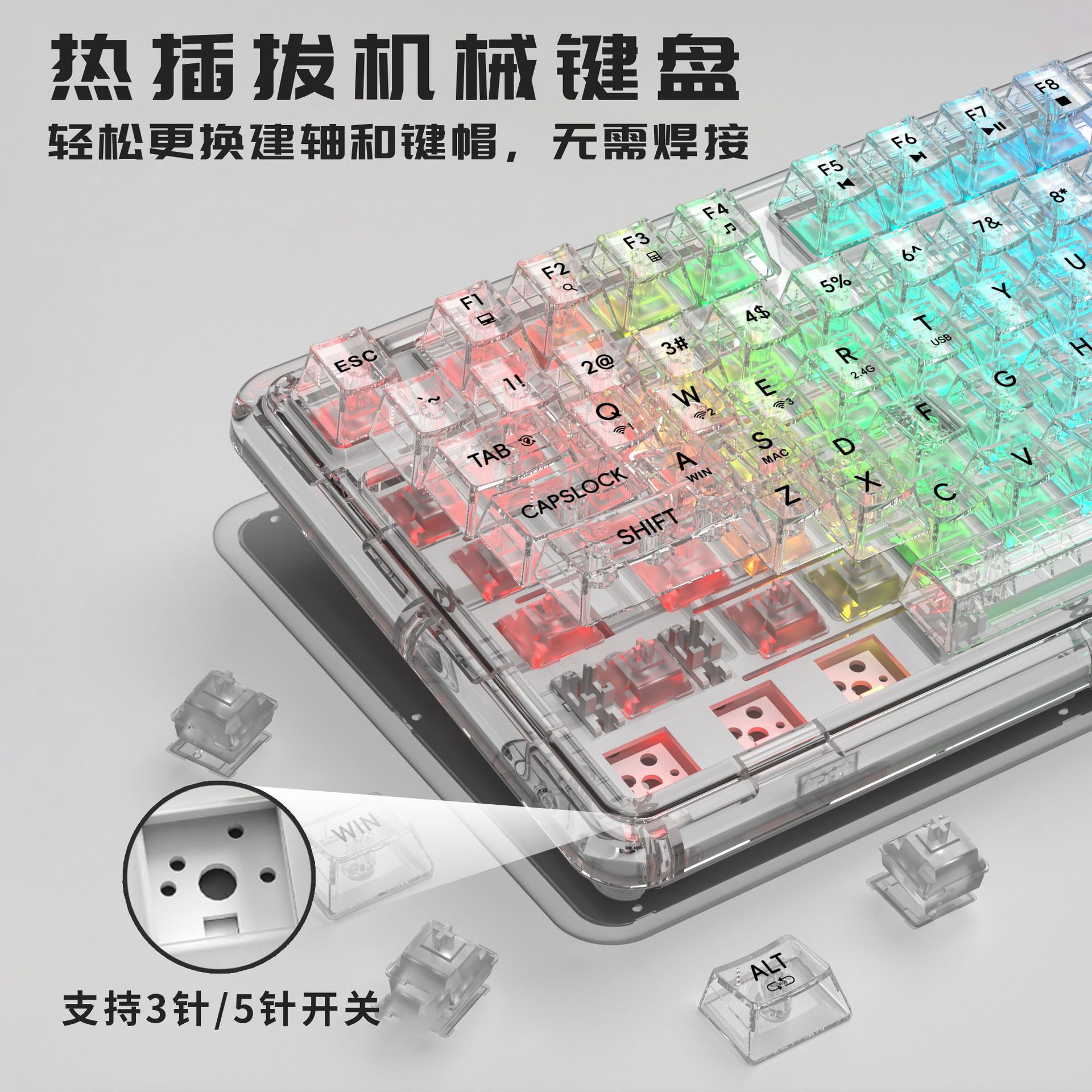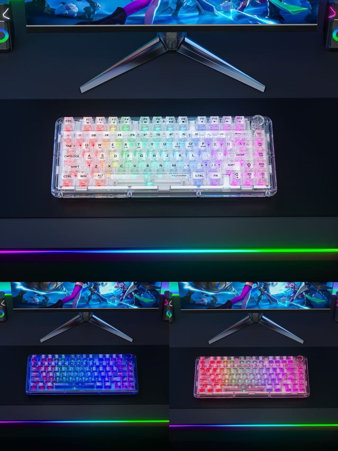 아크릴 투명 삼중 모드 2.4G 무선 블루투스 키보드 가스켓 커스텀 e스포츠 게임 기계식 키 RGB
