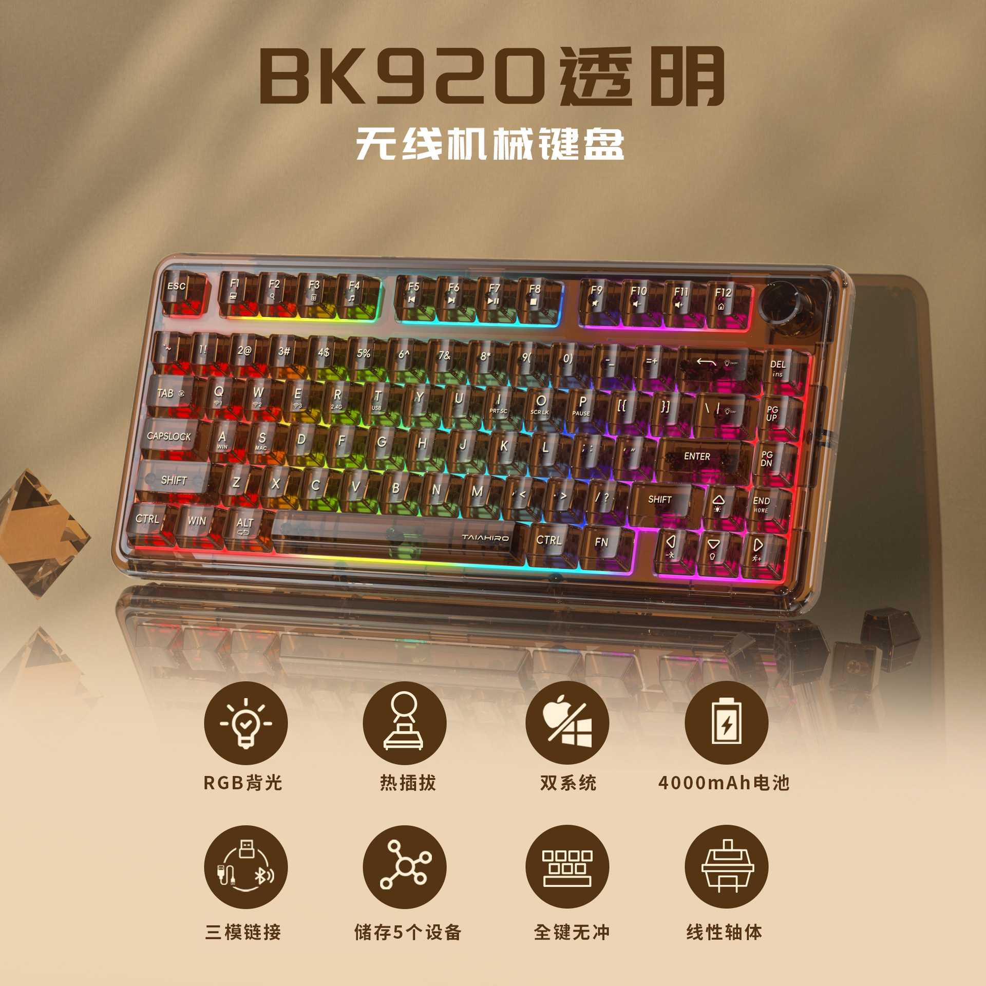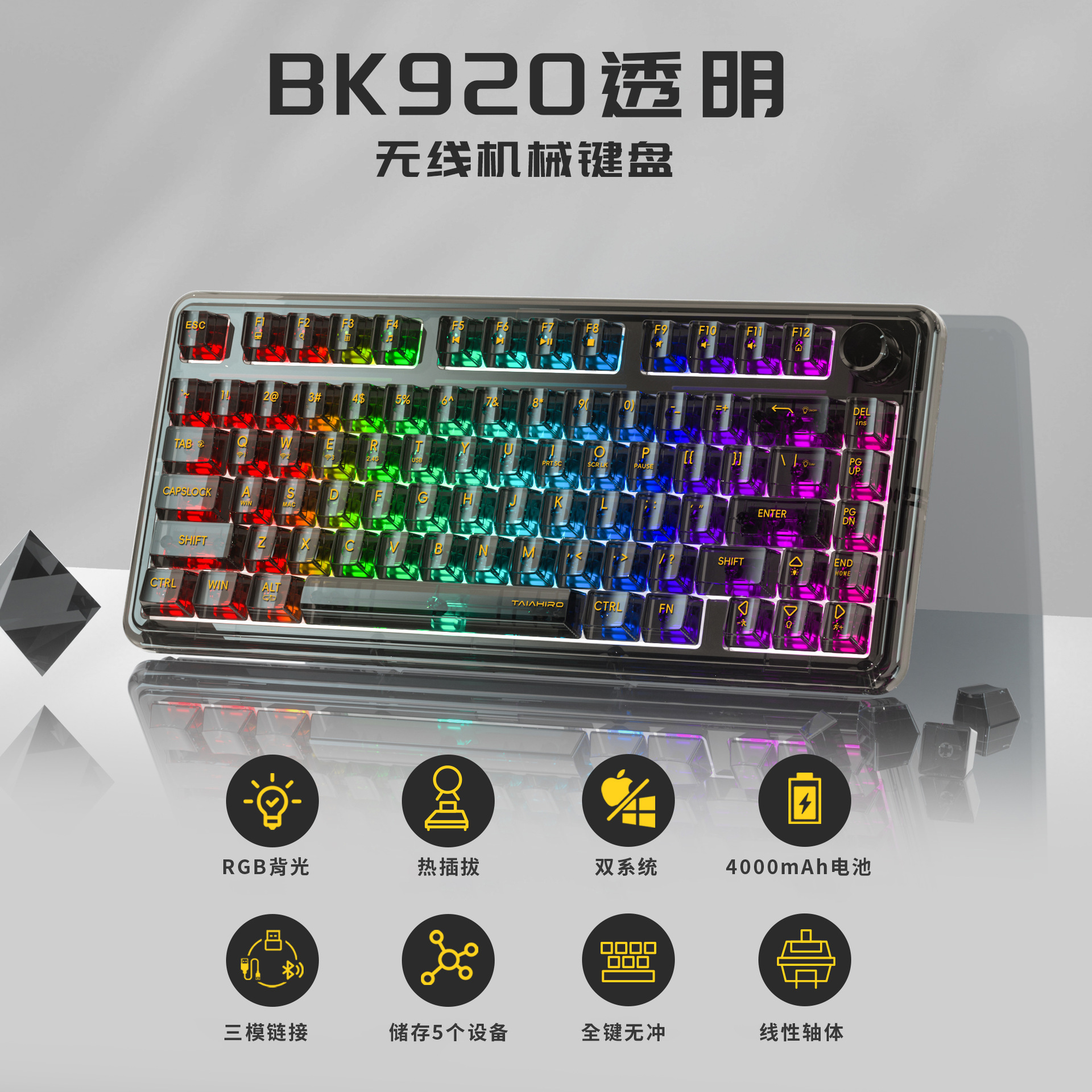 아크릴 투명 삼중 모드 2.4G 무선 블루투스 키보드 가스켓 커스텀 e스포츠 게임 기계식 키 RGB스토어 가기