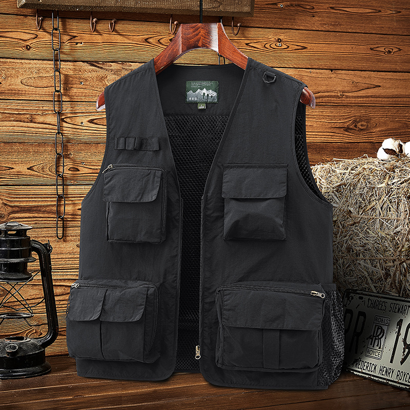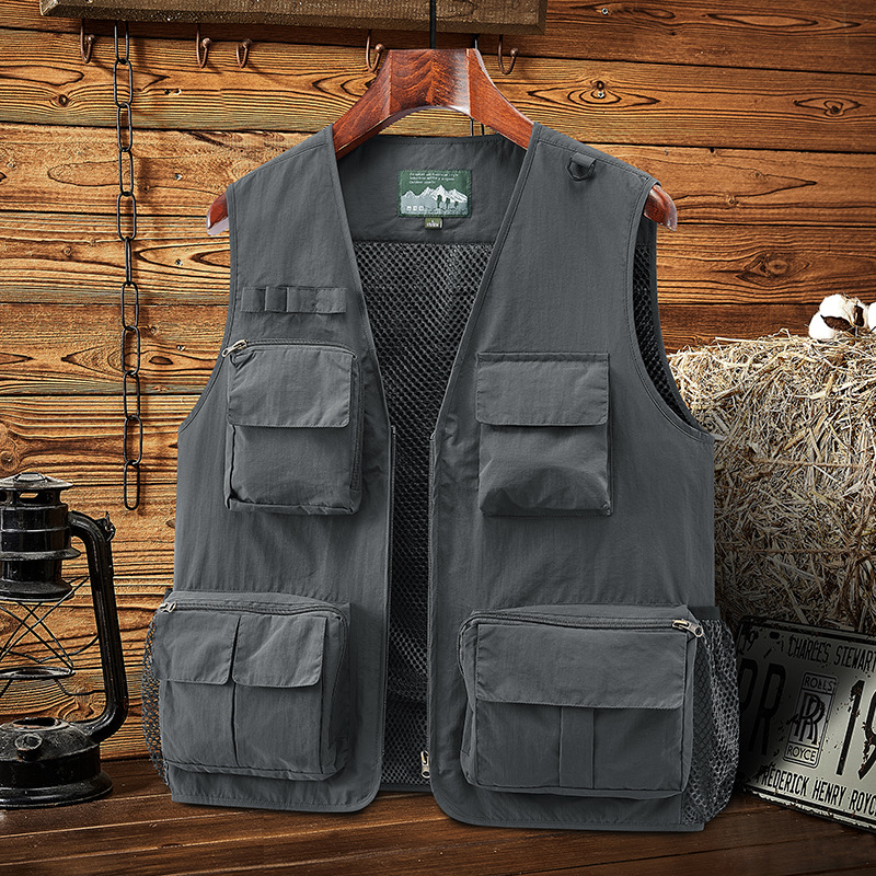 낚시 여행 사진 등산 조끼 남성용 루즈 대형 멀티 포켓 조끼 캐주얼 v 넥 조끼 여름 얇은