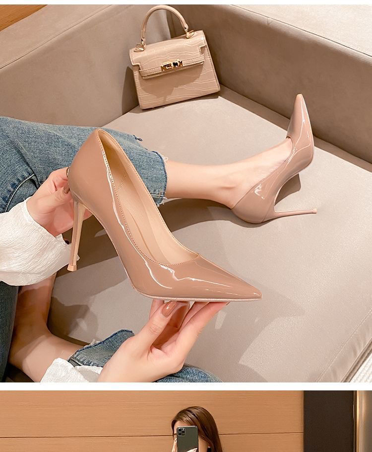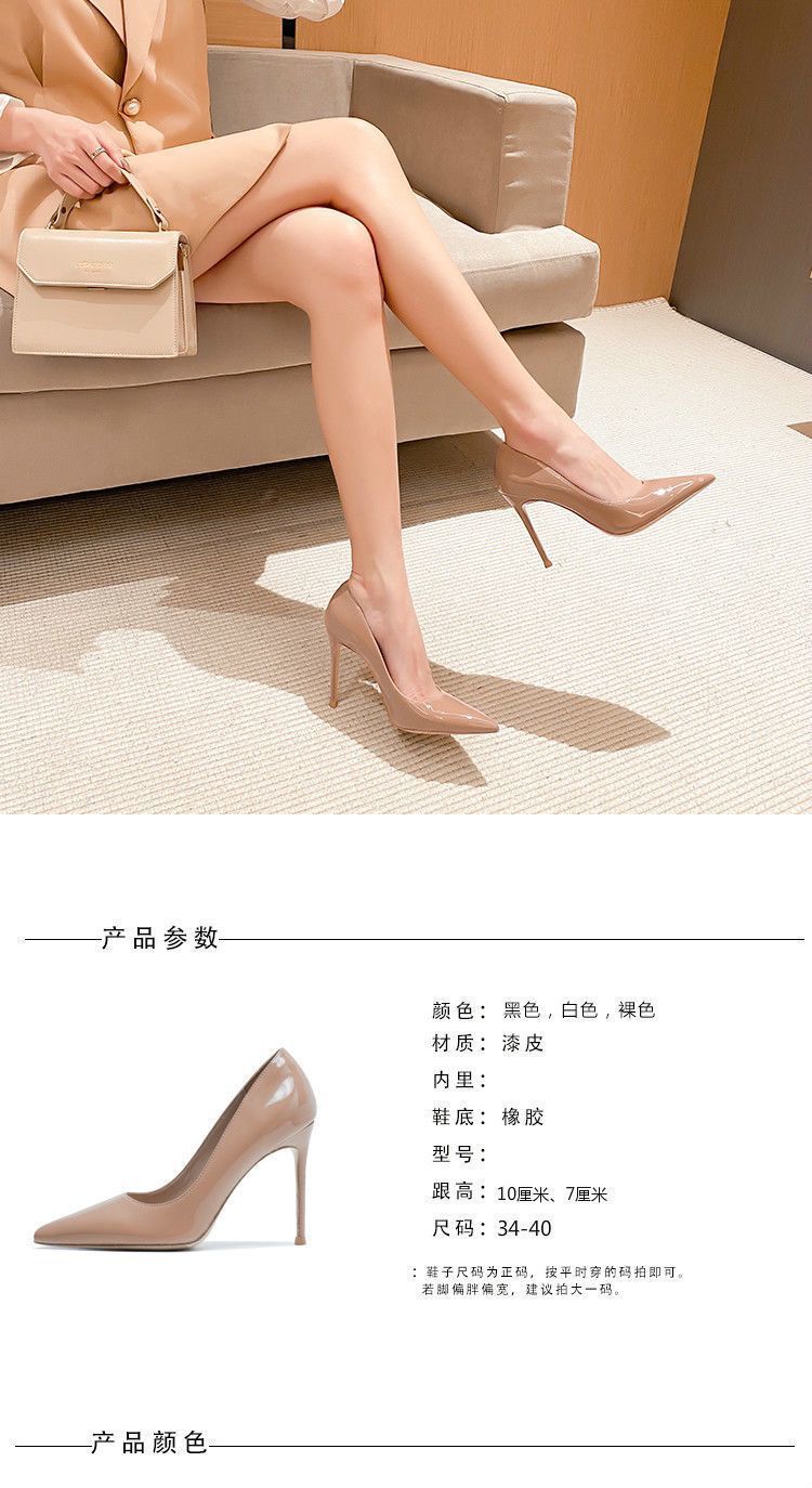 누드 하이힐, 스틸레토 힐, 새로운 스타일, 인터넷 연예인 스타일, 화이트 여름, 봄, 가을 디자인, 여성용 페이턴트 가죽 신발스토어 가기