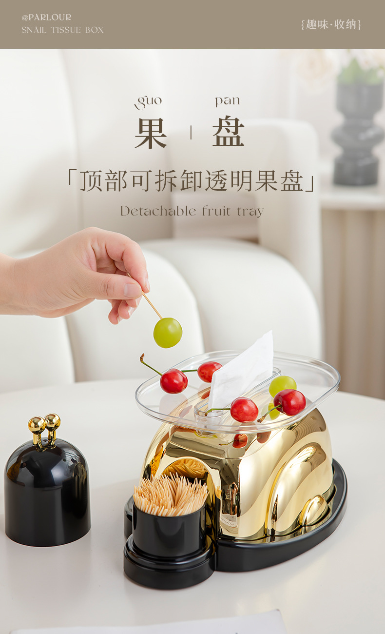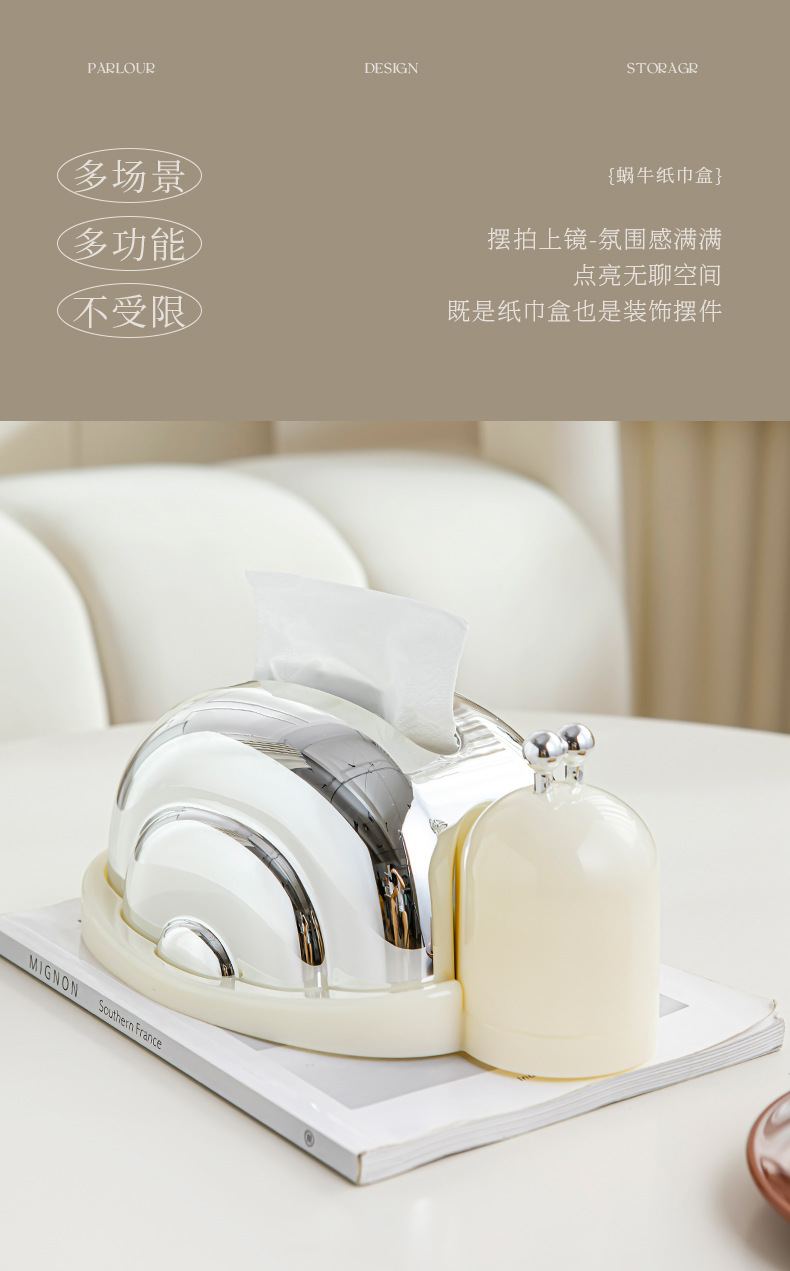 달팽이 모양 티슈박스, 이쑤시개통, 종이타월 보관함 일체형, 거실 티테이블 장식품, 거실 장식