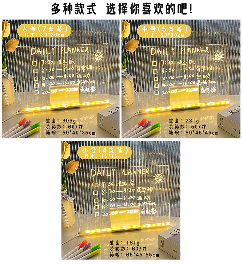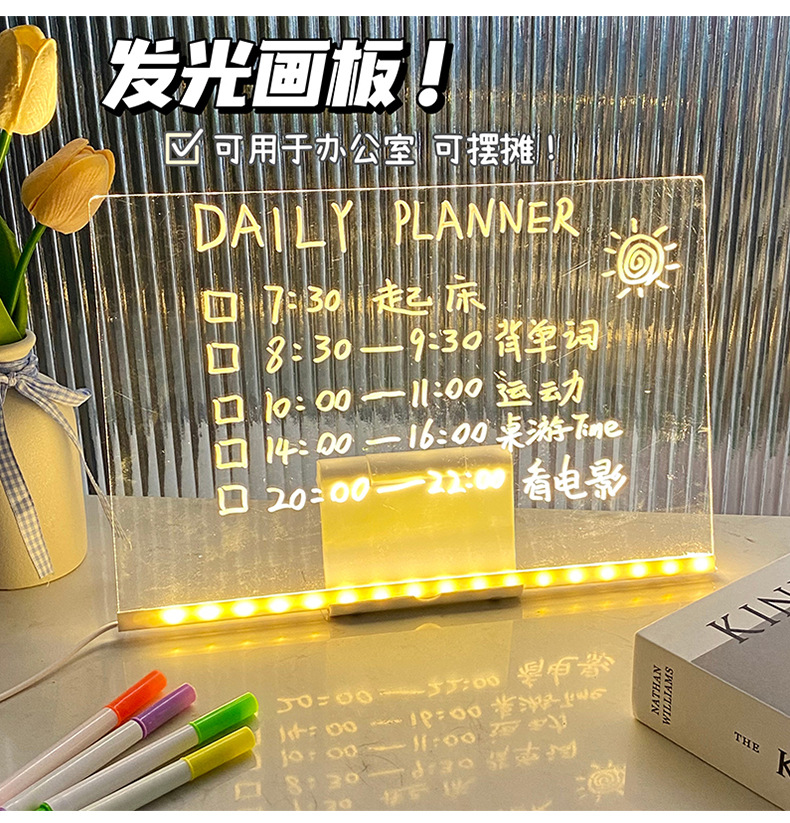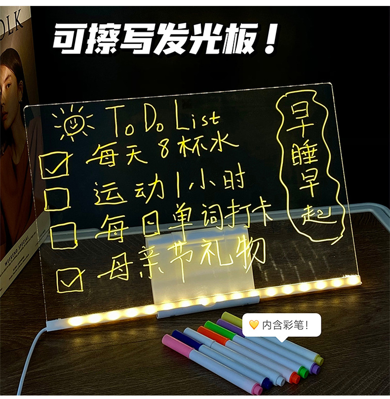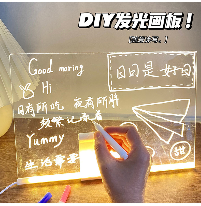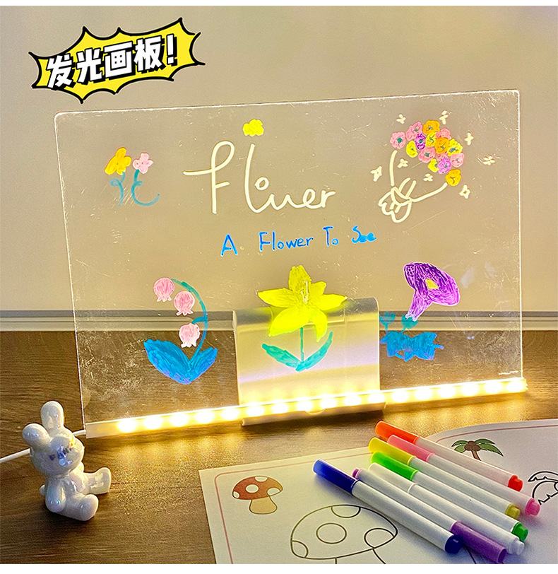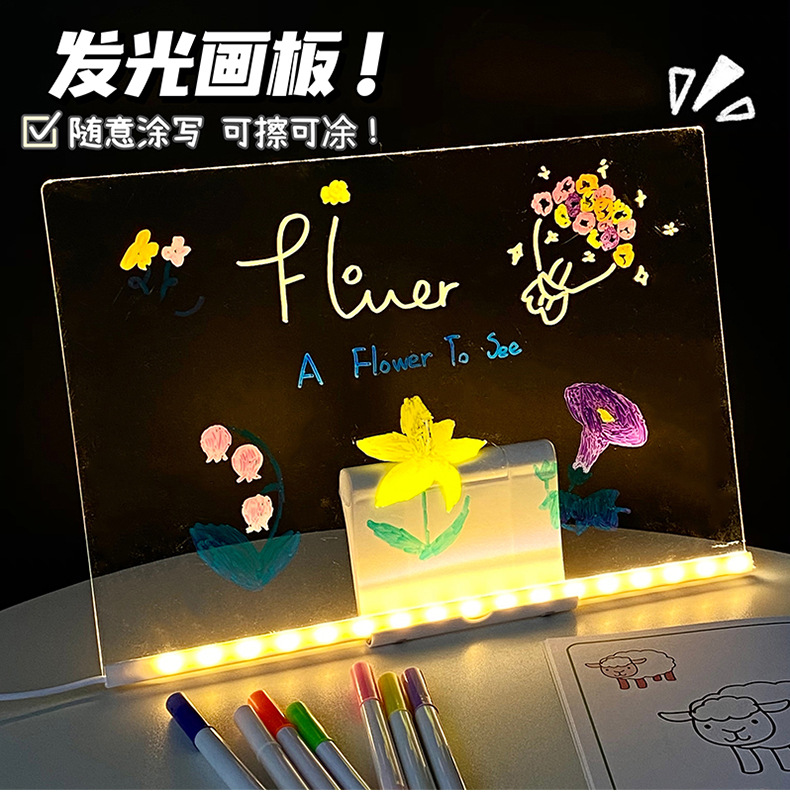 도매 스팟 빛나는 드로잉 보드 어린이 장난감 선물 소녀 양면 아크릴 손으로 그린 빛나는 드로잉 보드