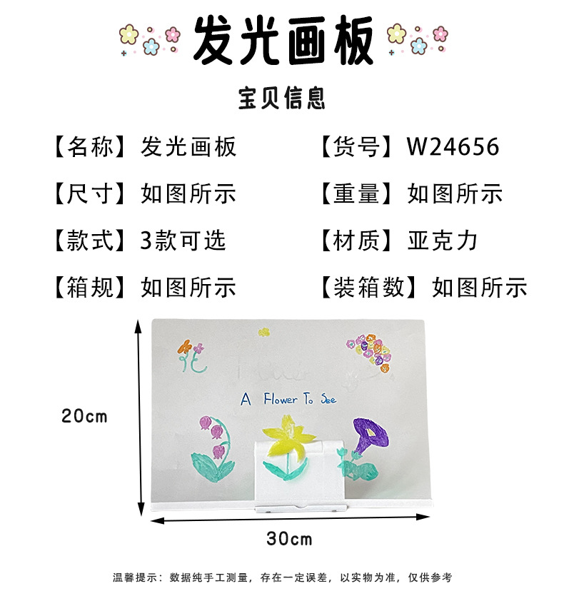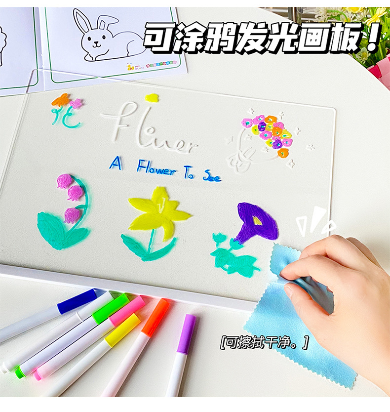 도매 스팟 빛나는 드로잉 보드 어린이 장난감 선물 소녀 양면 아크릴 손으로 그린 빛나는 드로잉 보드스토어 가기