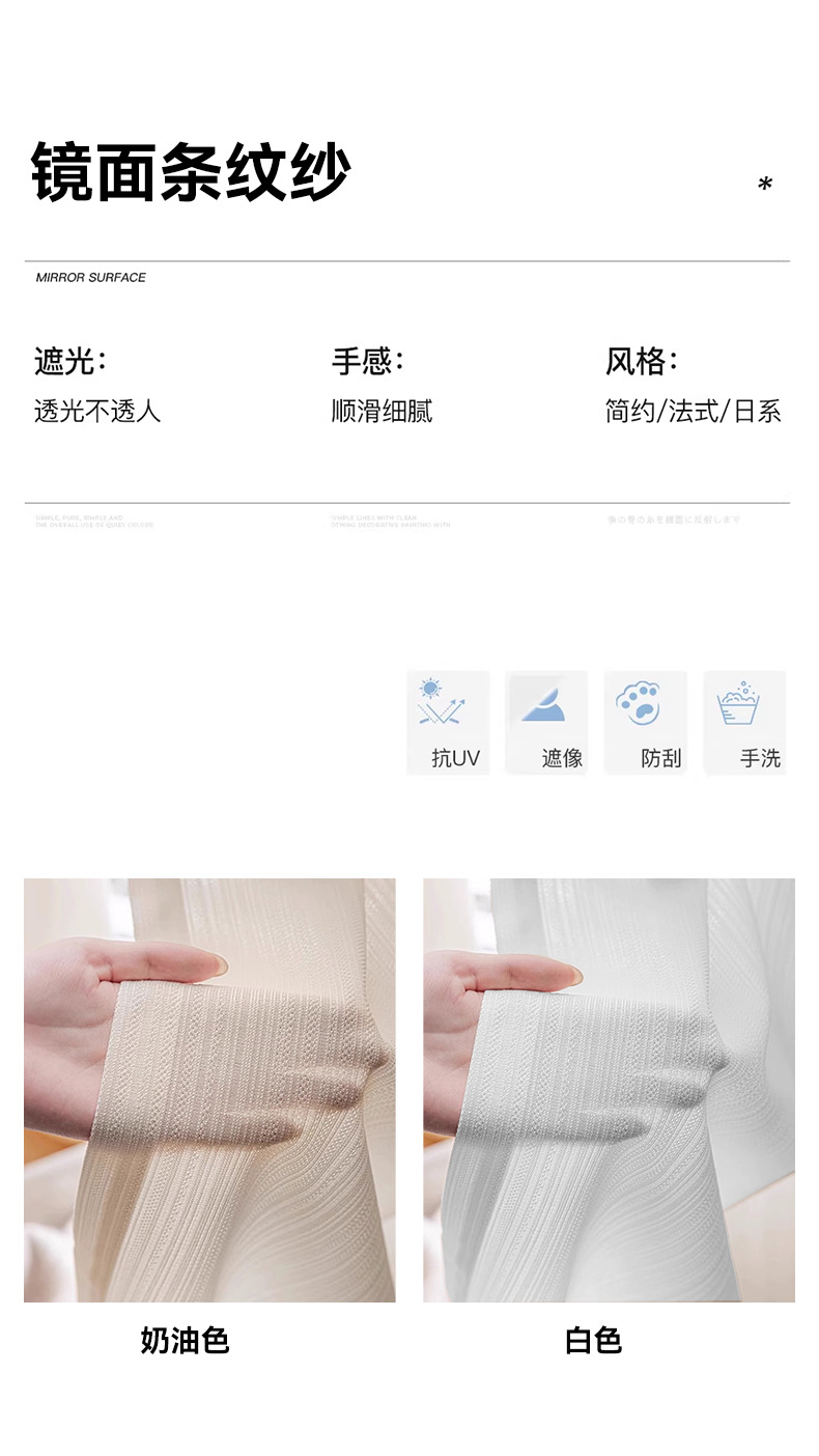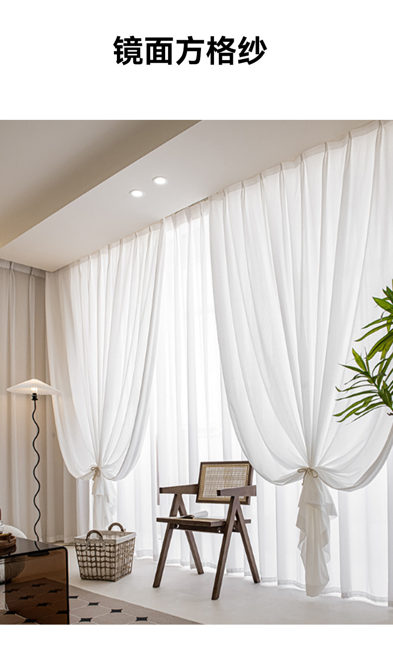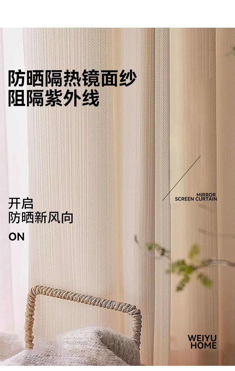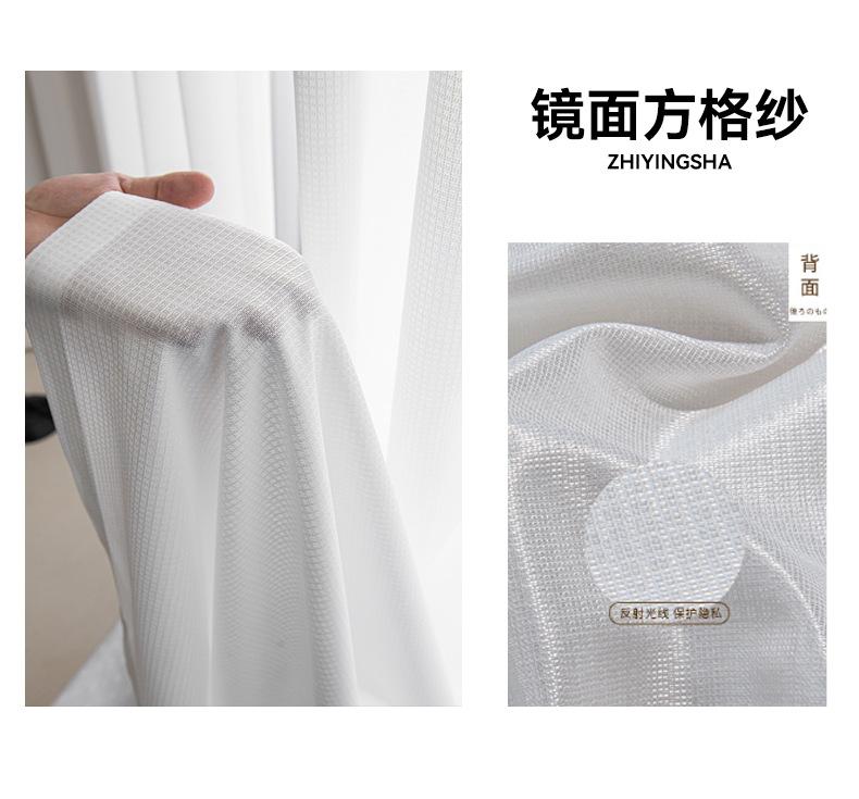 거울빛 거즈 커튼, 빛은 들어오지만 사람은 보이지 않는 거즈 커튼, 거실 발코니 차양, 크림 스타일, 심플, 단열, 자외선 차단, 화이트 윈도우 거즈