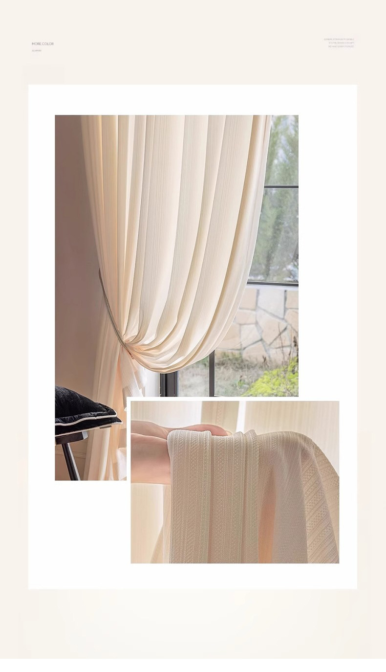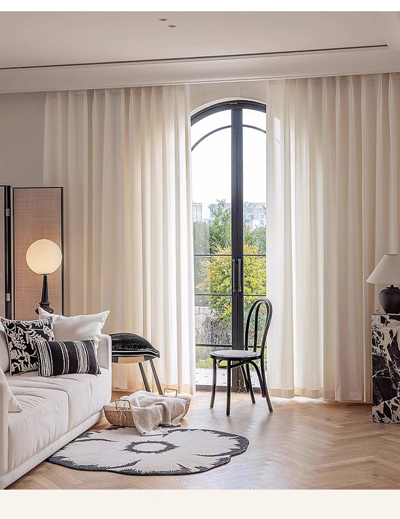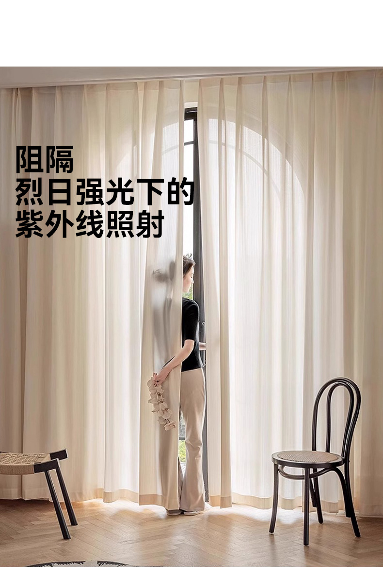 거울빛 거즈 커튼, 빛은 들어오지만 사람은 보이지 않는 거즈 커튼, 거실 발코니 차양, 크림 스타일, 심플, 단열, 자외선 차단, 화이트 윈도우 거즈