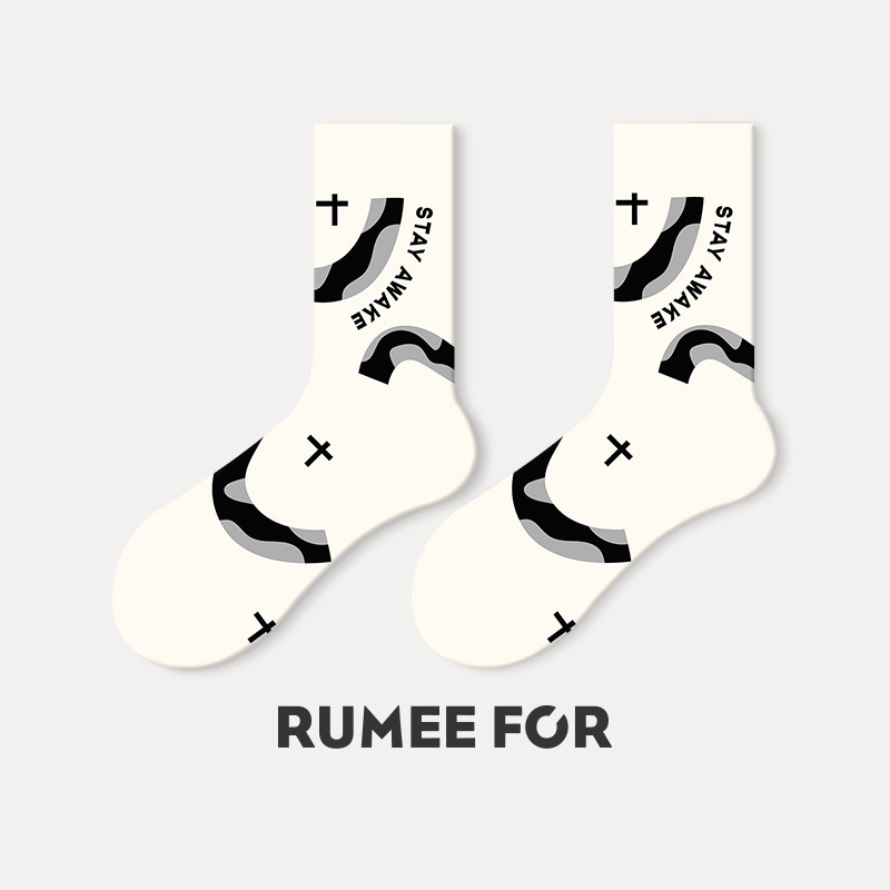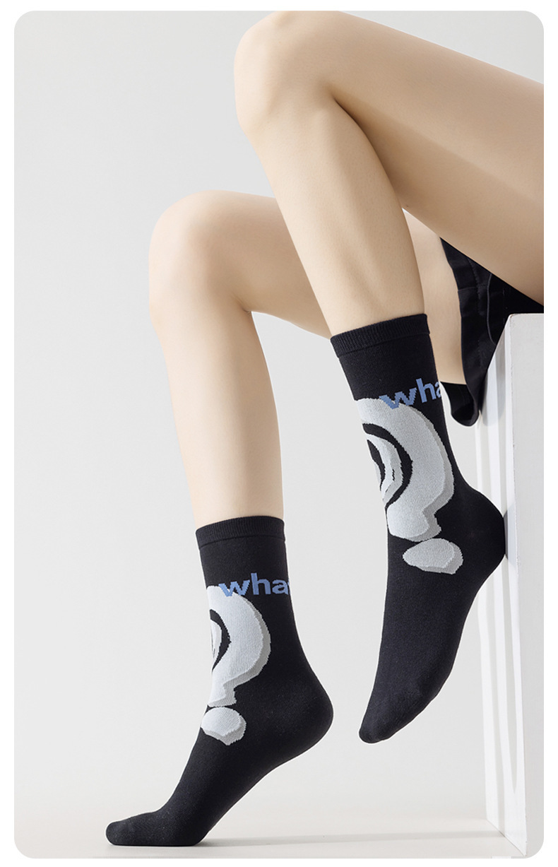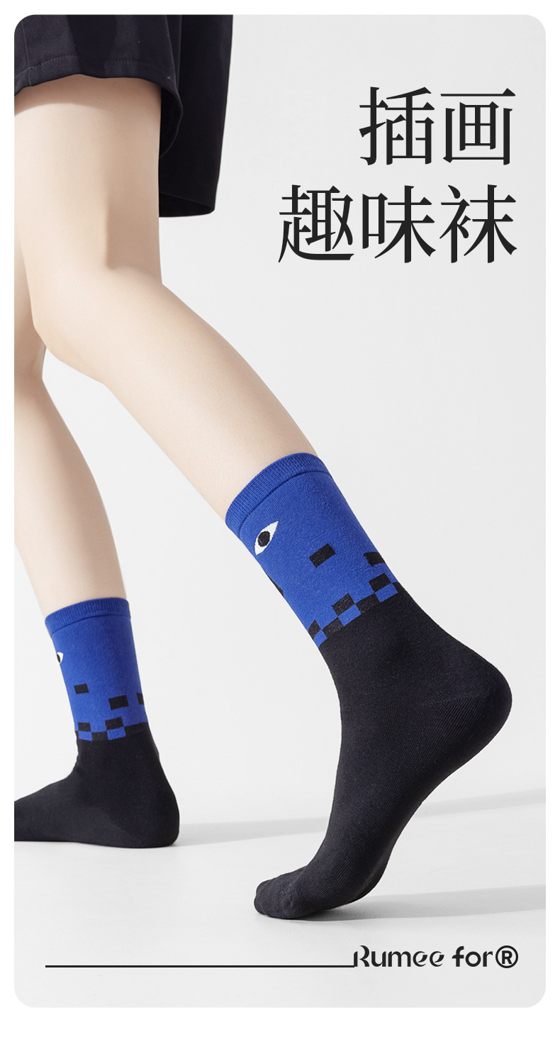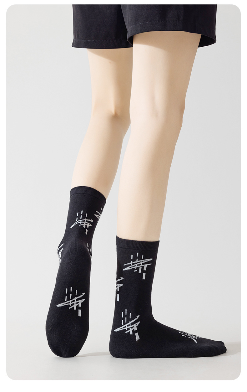 트렌디한 여성용 종아리 중간 양말, 트렌디한 가을 양말, 스포츠용 블랙 남성용 긴 양말, 아트 일러스트 양말, 면 양말, Zhuji스토어 가기