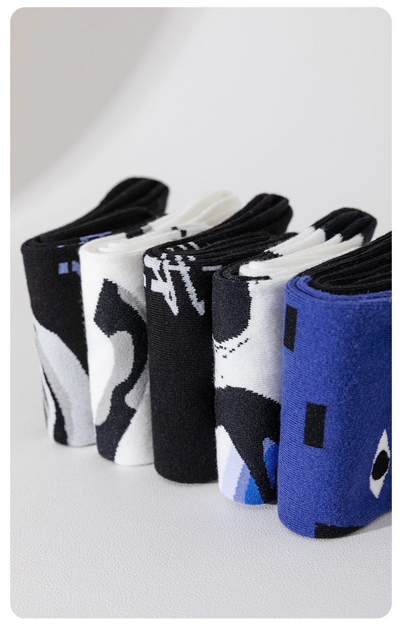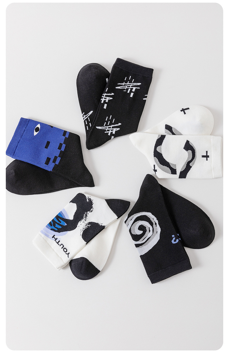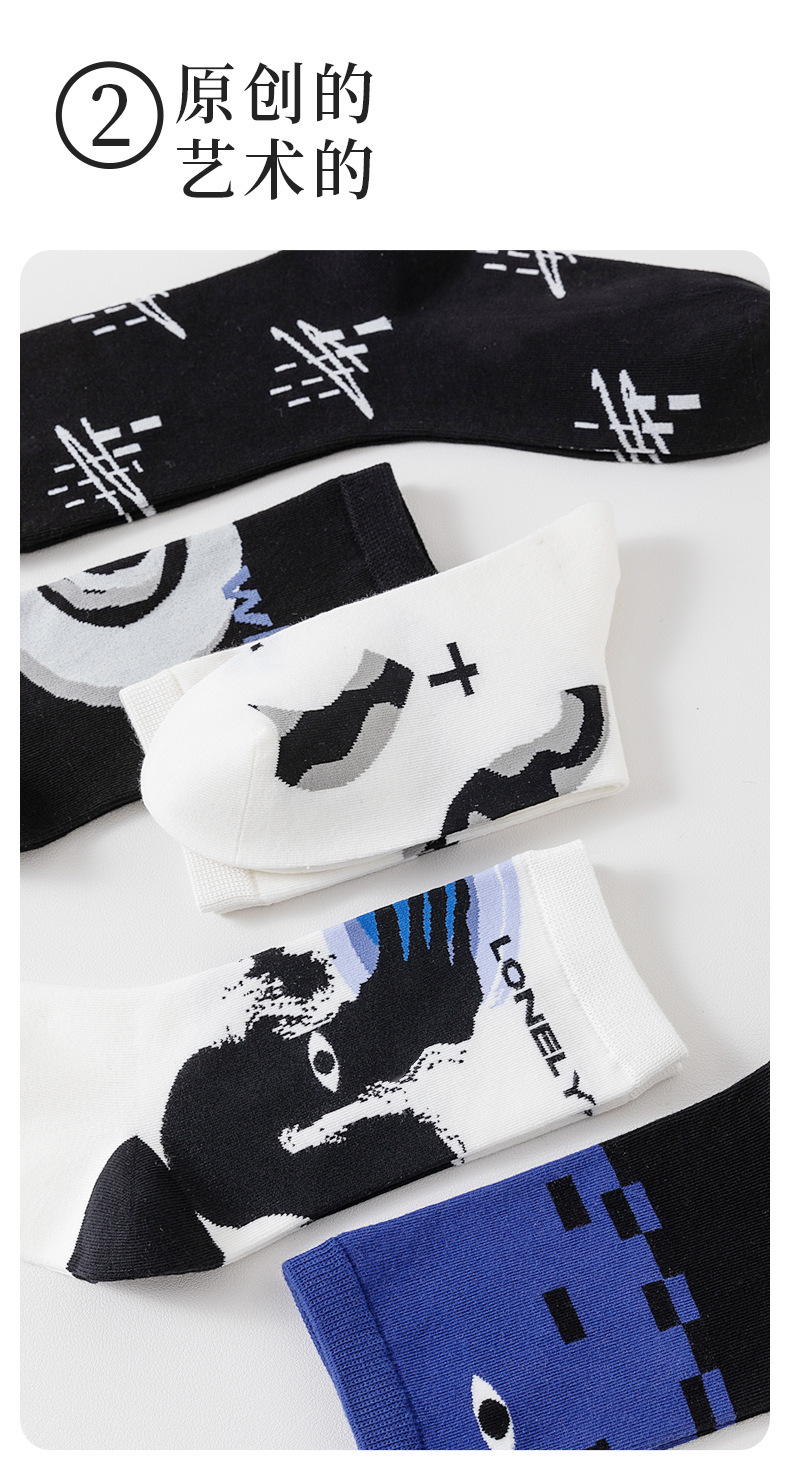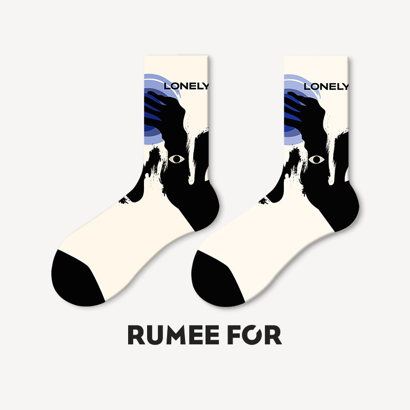 트렌디한 여성용 종아리 중간 양말, 트렌디한 가을 양말, 스포츠용 블랙 남성용 긴 양말, 아트 일러스트 양말, 면 양말, Zhuji