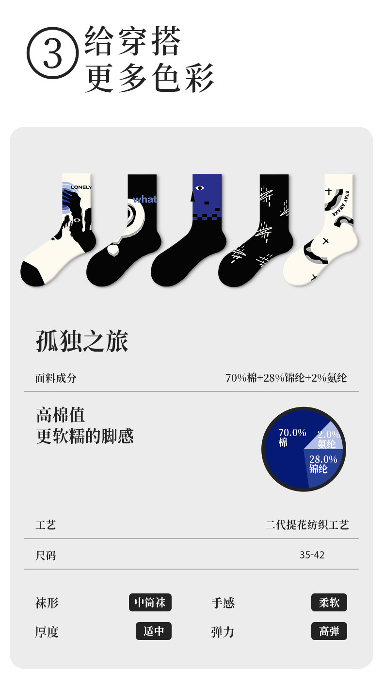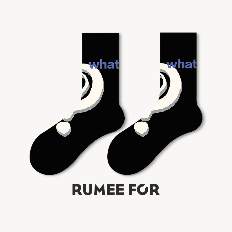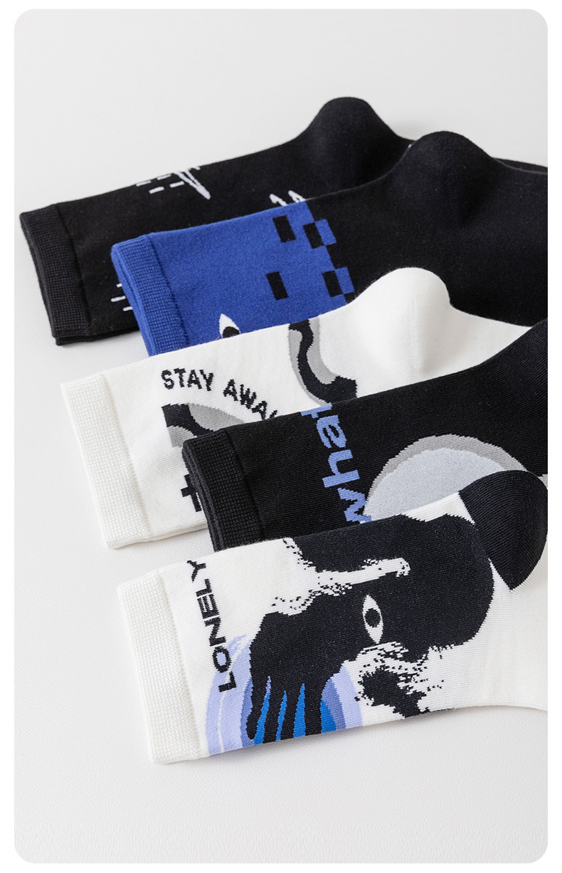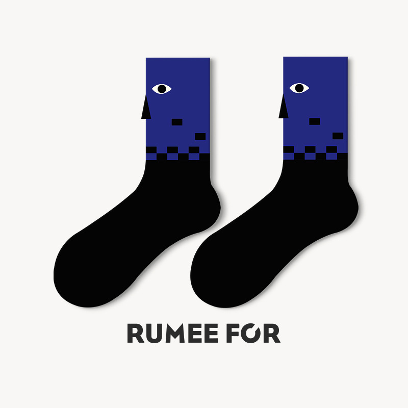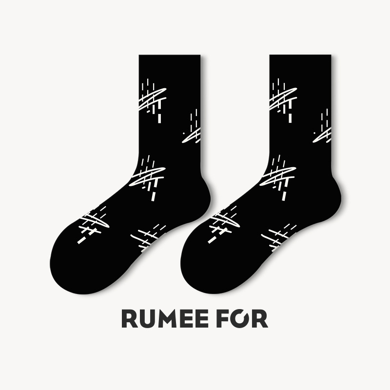 트렌디한 여성용 종아리 중간 양말, 트렌디한 가을 양말, 스포츠용 블랙 남성용 긴 양말, 아트 일러스트 양말, 면 양말, Zhuji