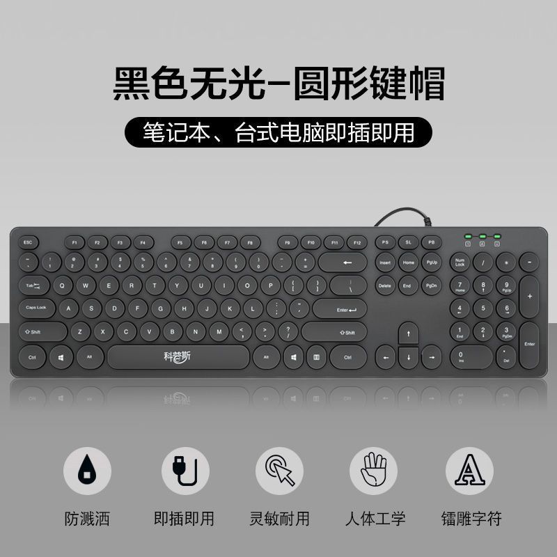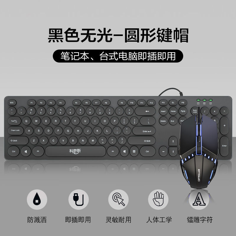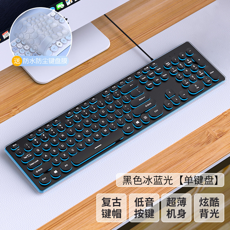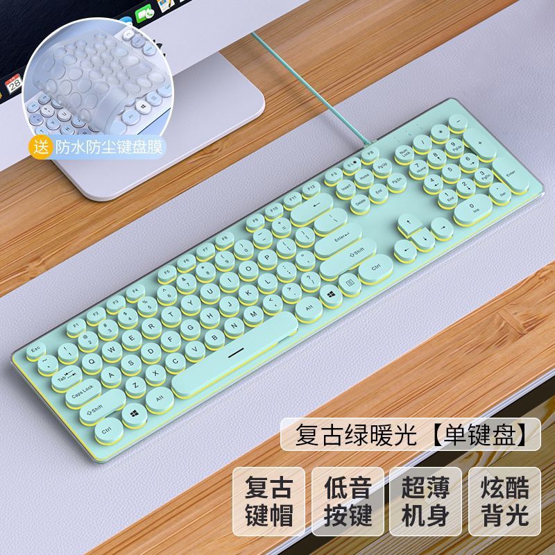 초콜릿 무음 유선 키보드 펑크 외부 컴퓨터 노트북 USB 홈 게임 사무실 타이핑 전용