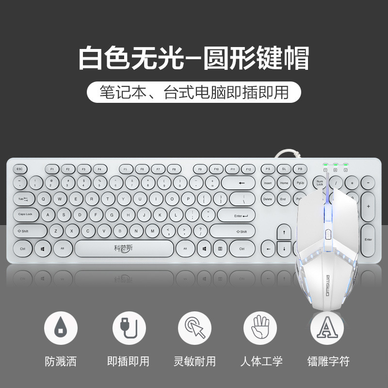 • 흰색 무광택 버전 - 원형 키캡 - 패키지 1: 키보드 + 마우스
