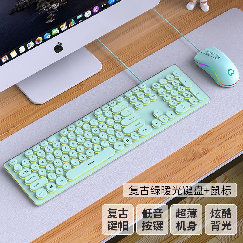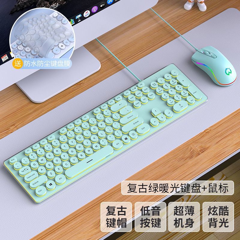 • 녹색 따뜻한 노란색 빛의 펑크 버전 [무음 발광] - 패키지 3: 키보드 + 마우스 + 키보드 필름