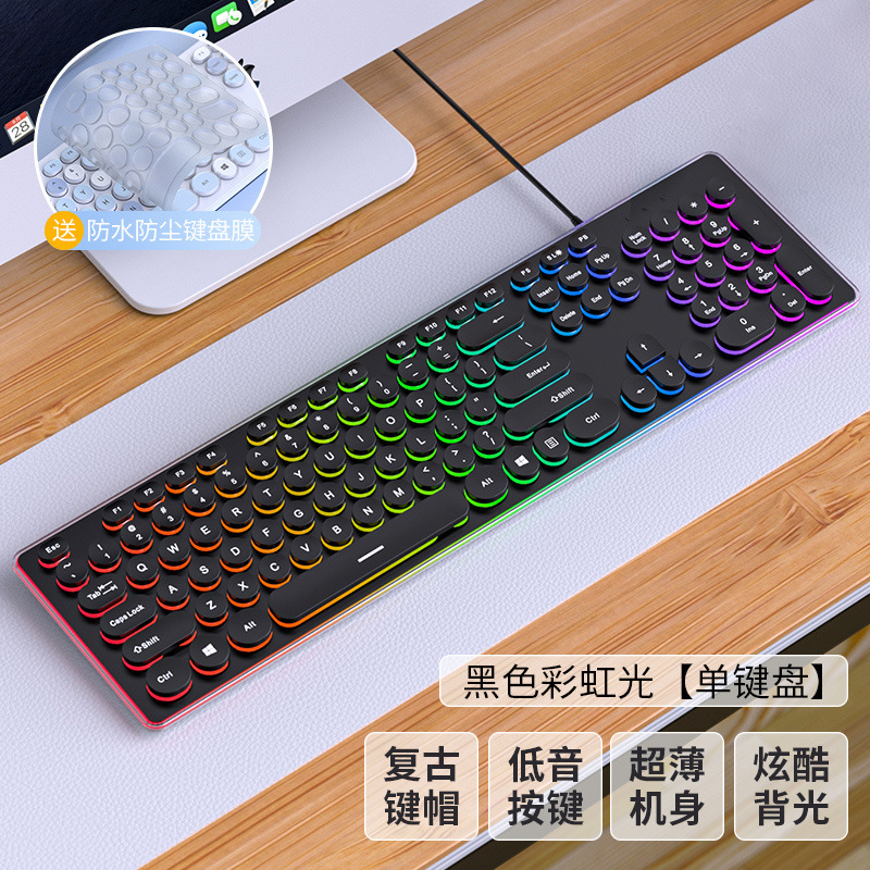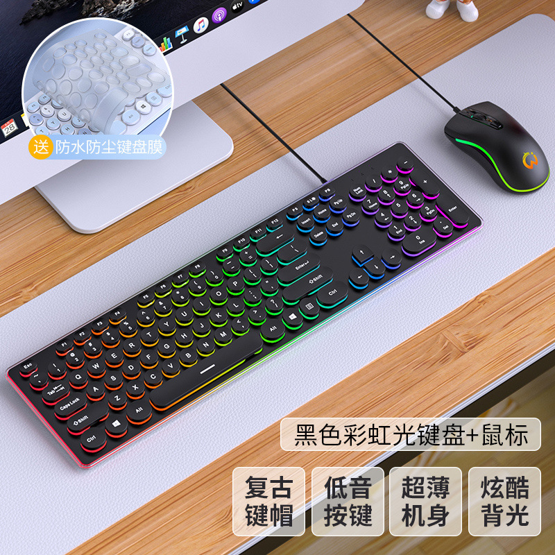• 검은 무지개 빛의 펑크 버전 [무음 발광] - 패키지 3: 키보드 + 마우스 + 키보드 필름