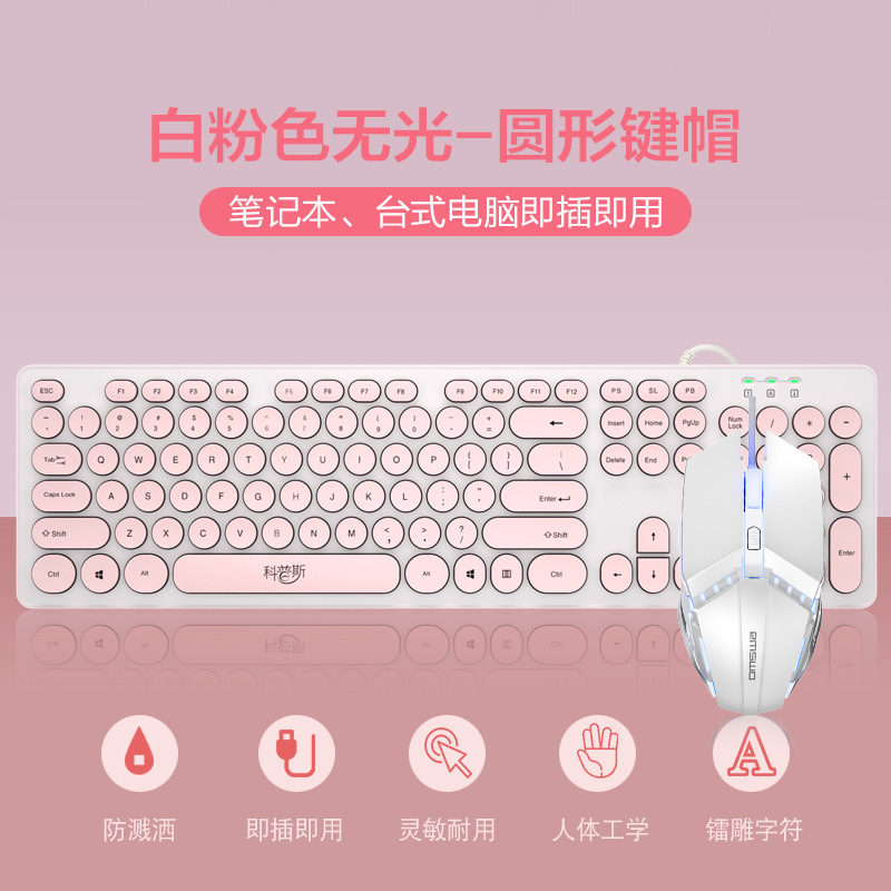 • 흰색과 분홍색 무광택 버전 - 원형 키캡 - 패키지 3: 키보드 + 마우스 + 키보드 필름