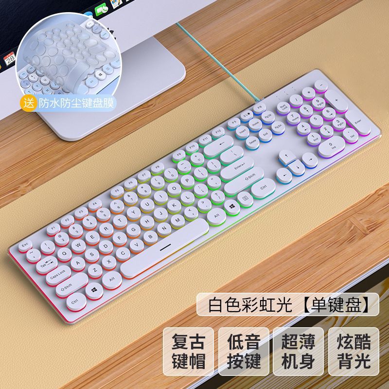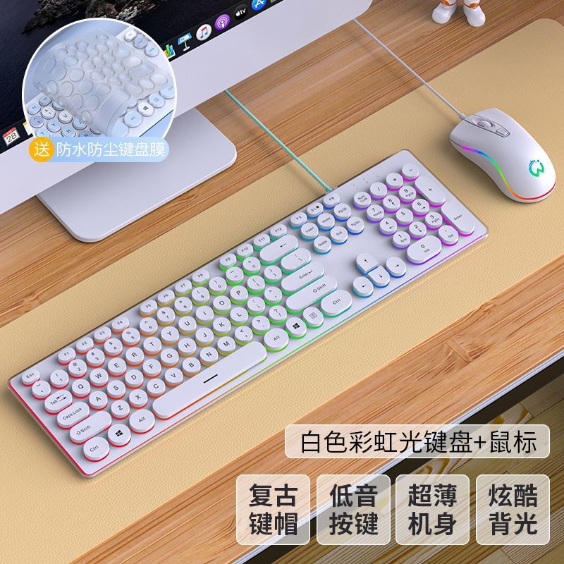 • 흰색 무지개 빛의 펑크 버전 [무음 발광] - 패키지 3: 키보드 + 마우스 + 키보드 필름