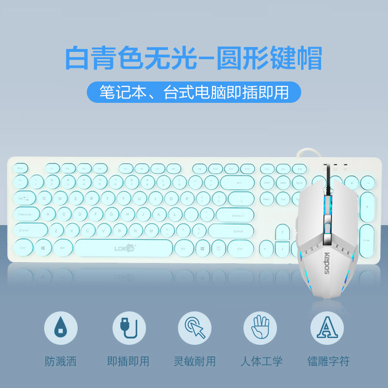 • 흰색 청록색 무광택 버전 - 원형 키캡 - 패키지 1: 키보드 + 마우스