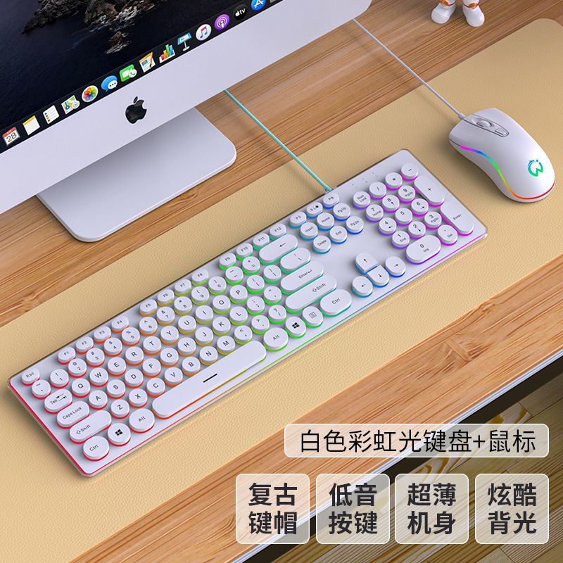 • 흰색 무지개 빛의 펑크 버전 [무음 발광]-패키지 1: 키보드 + 마우스