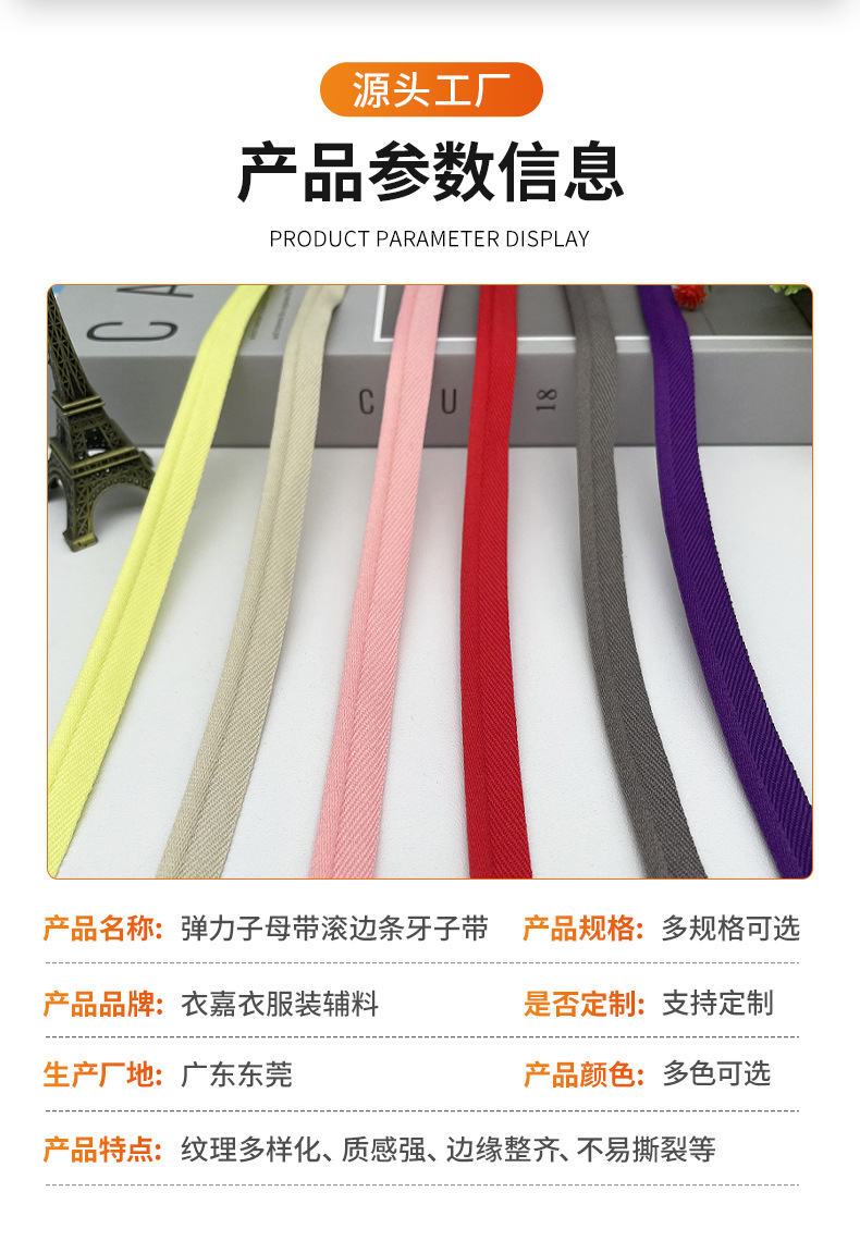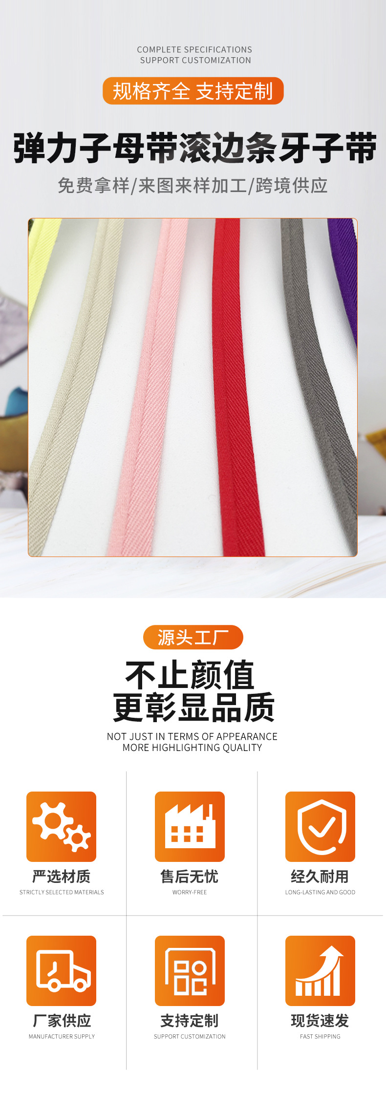 1cm 탄성 엄마-아들형 테이프 롤링 엣지 스트립, 홈 텍스타일 베개 커버, 이불 커버, 커튼 롤링 엣지 로프 부자재 재고 있음스토어 가기