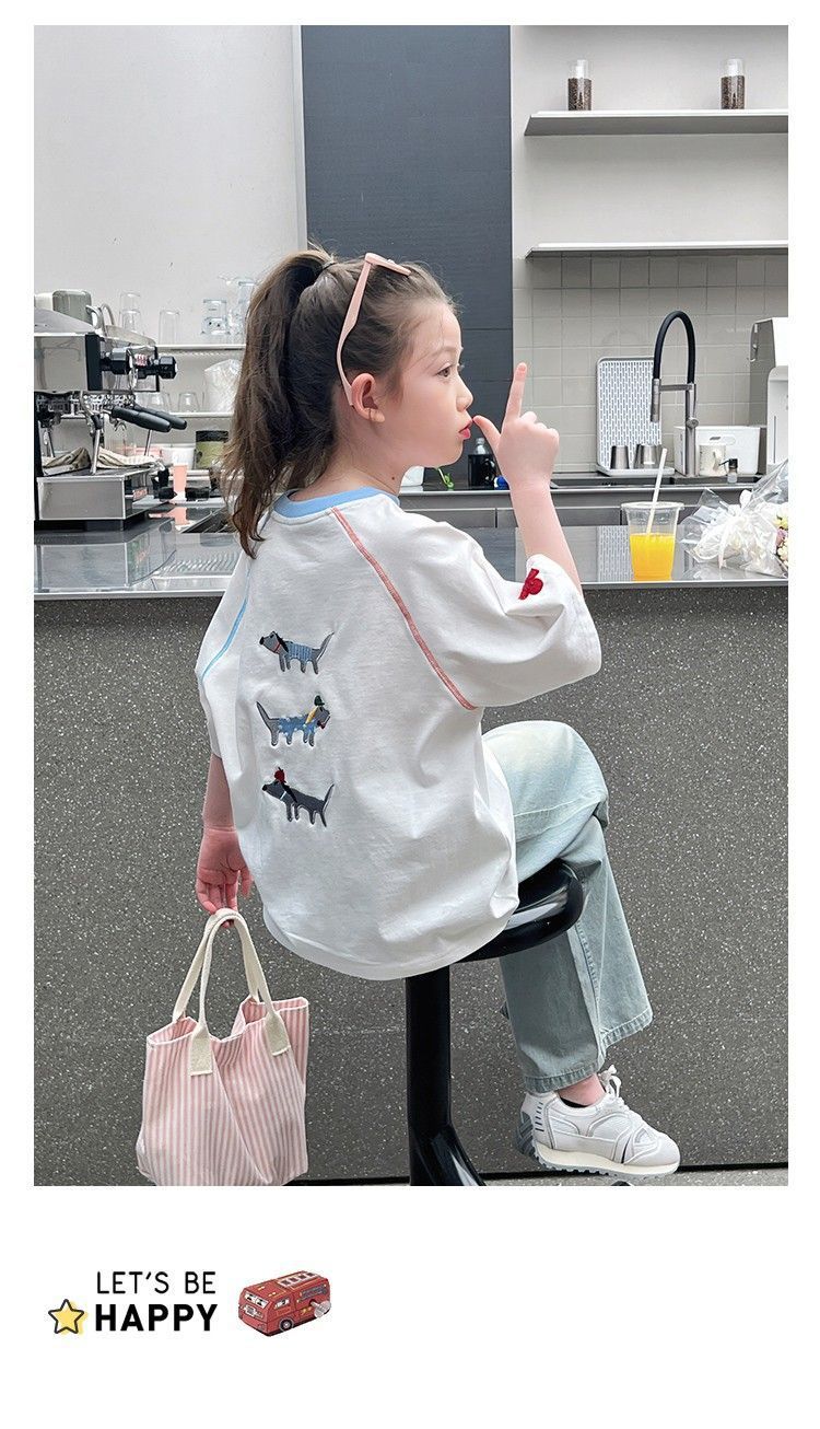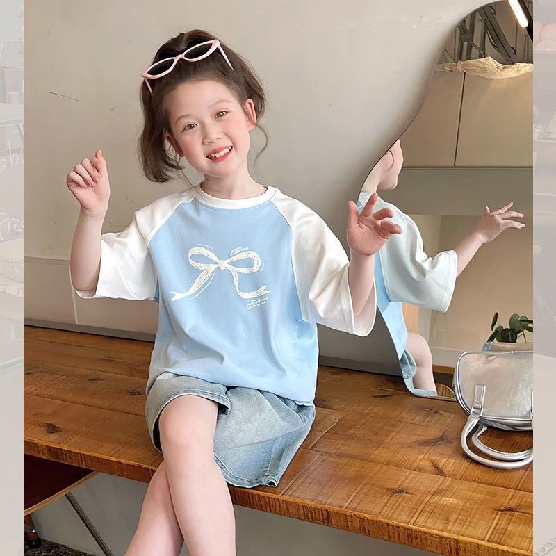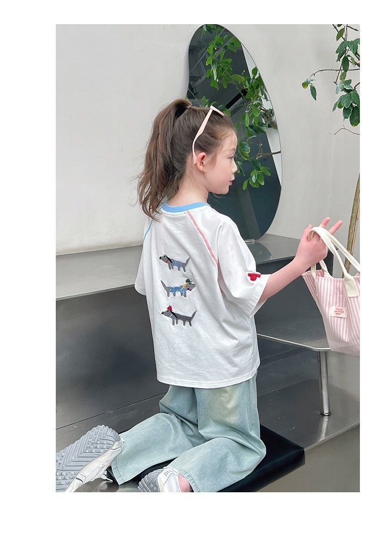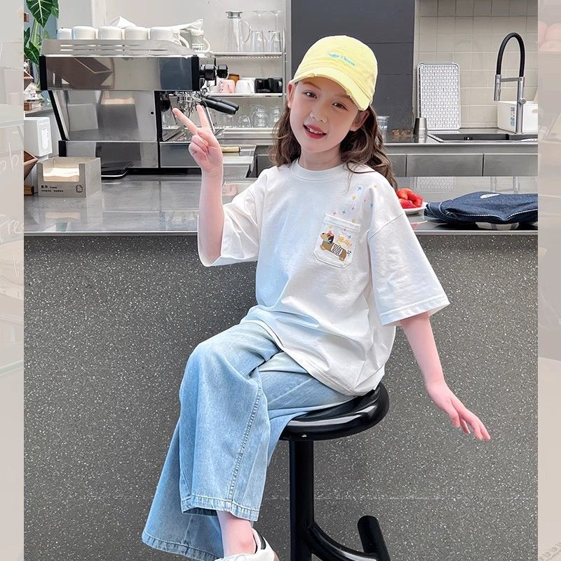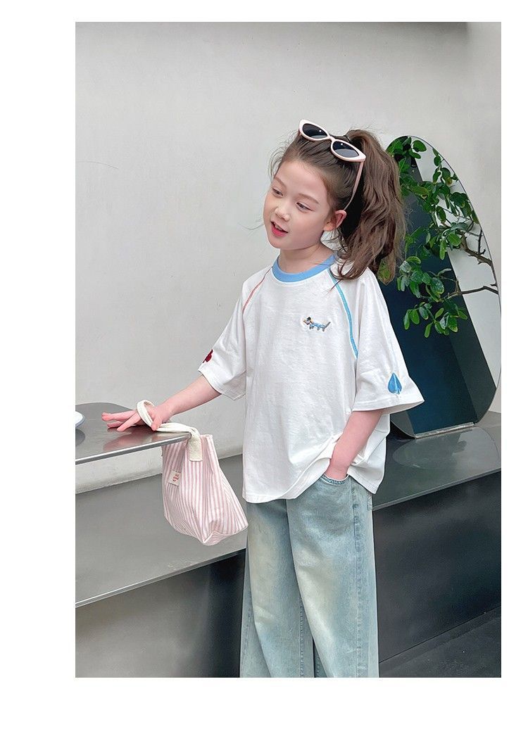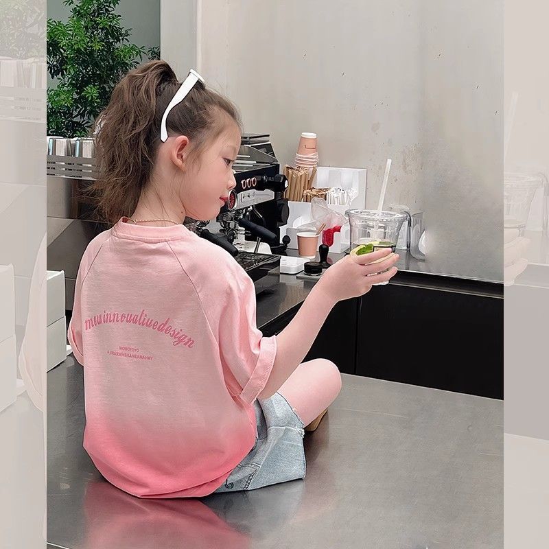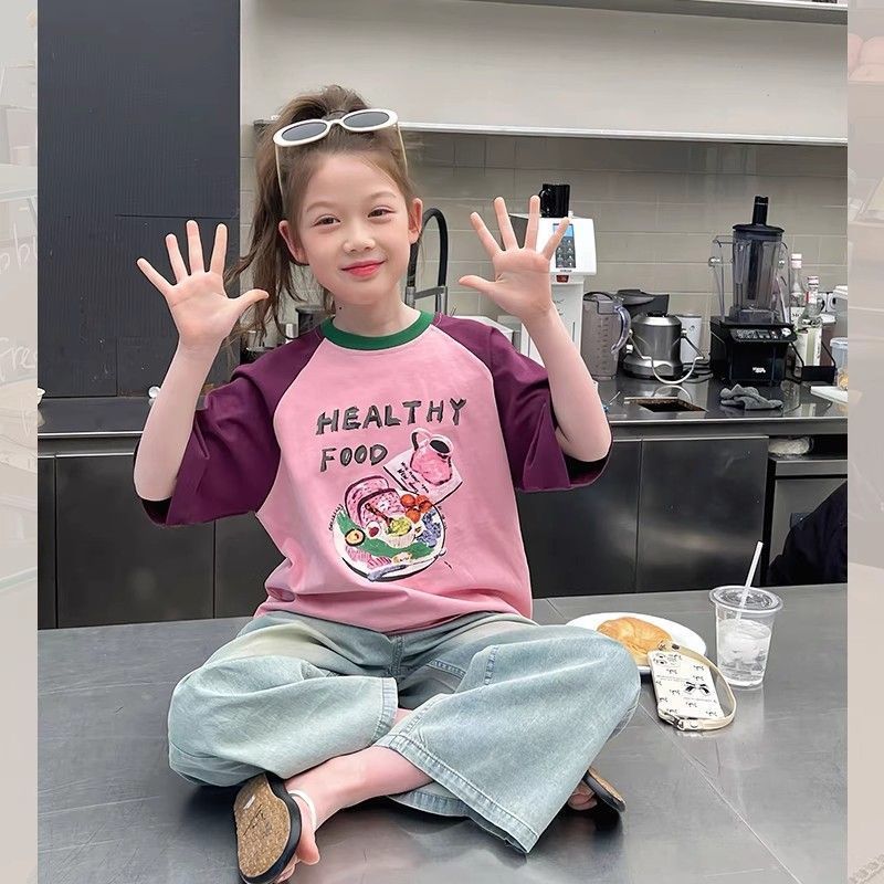 아동 패션 인터넷 연예인 반팔 흰색 티셔츠 소녀 유행 느슨한 한국 스타일 탑 큰 아동복 2025 여름 새 스타일스토어 가기