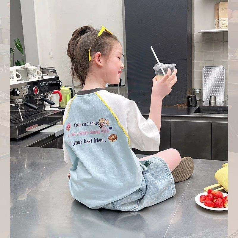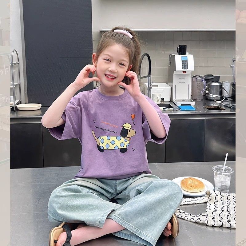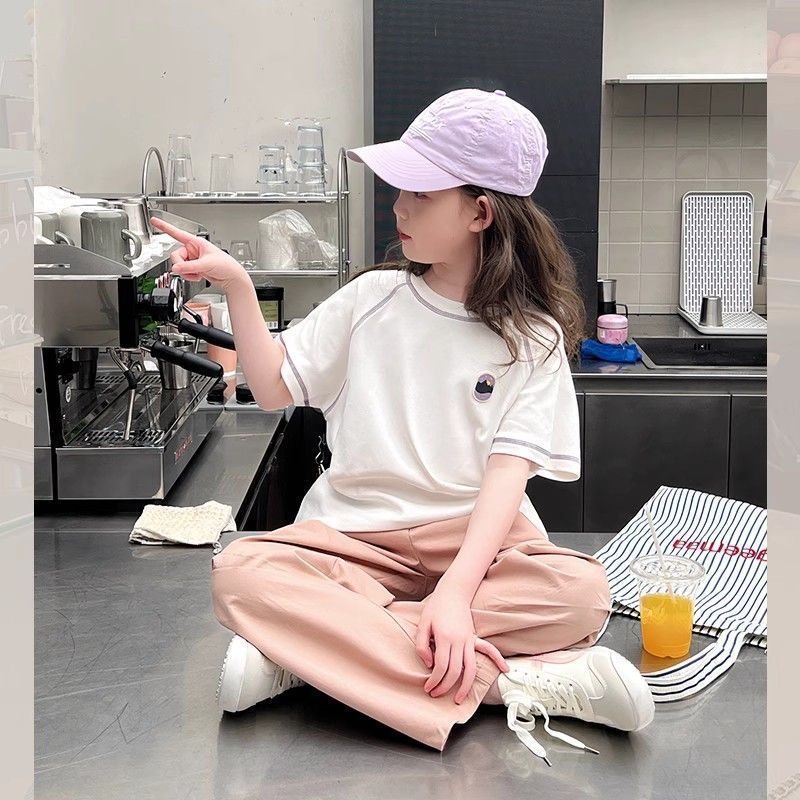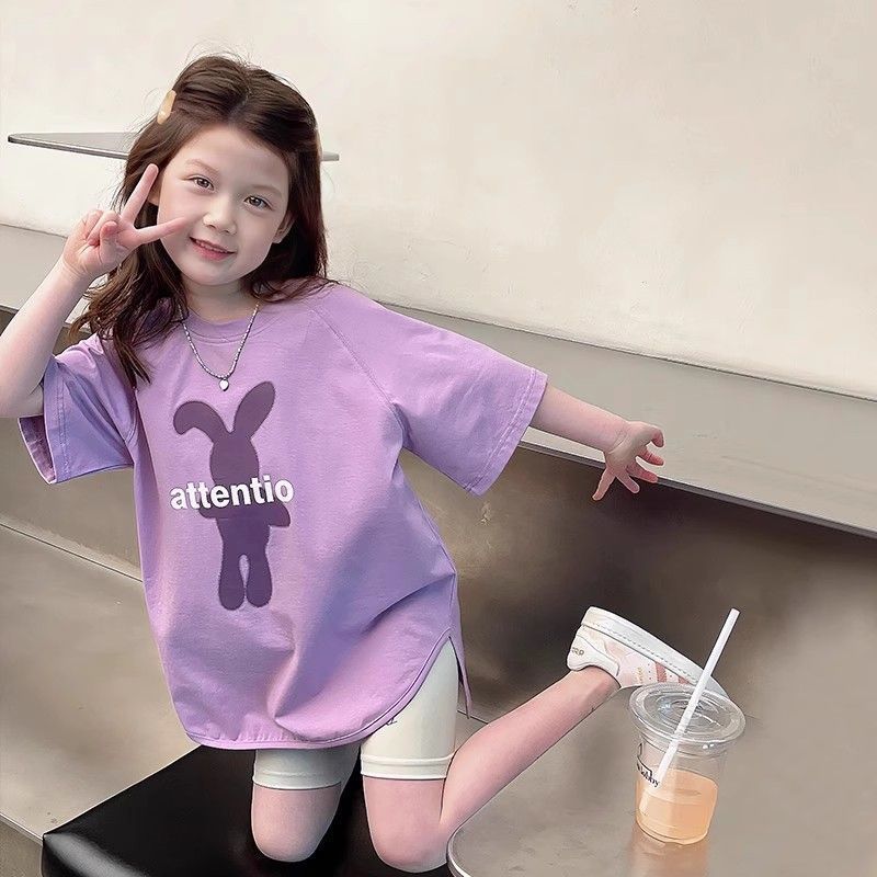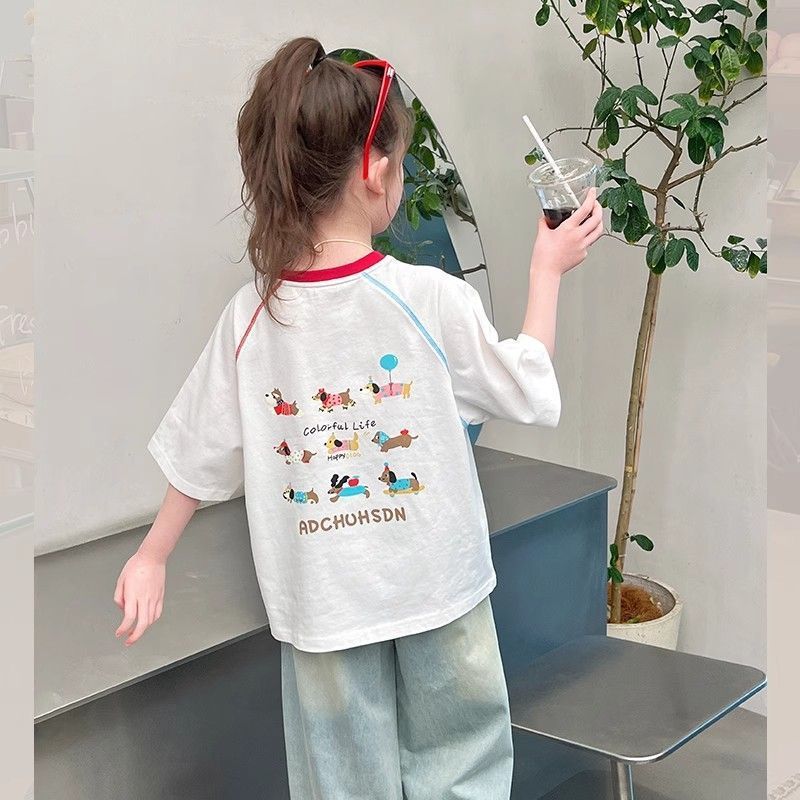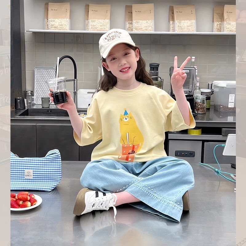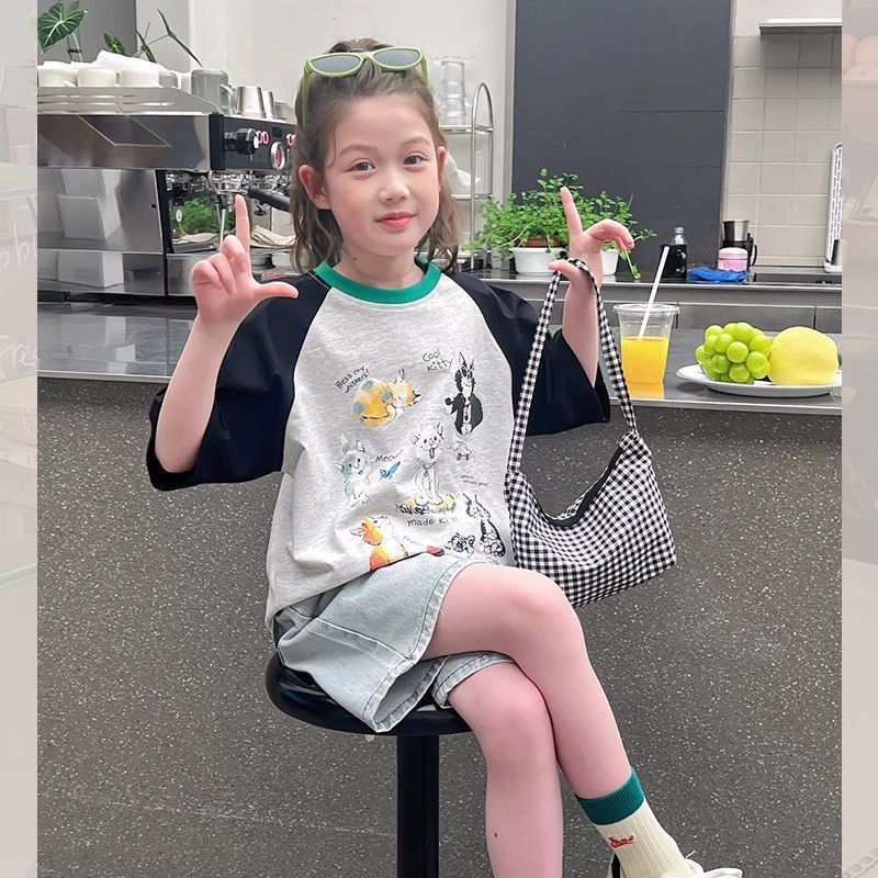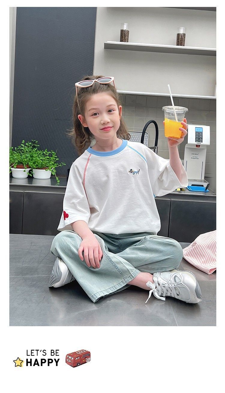 아동 패션 인터넷 연예인 반팔 흰색 티셔츠 소녀 유행 느슨한 한국 스타일 탑 큰 아동복 2025 여름 새 스타일스토어 가기