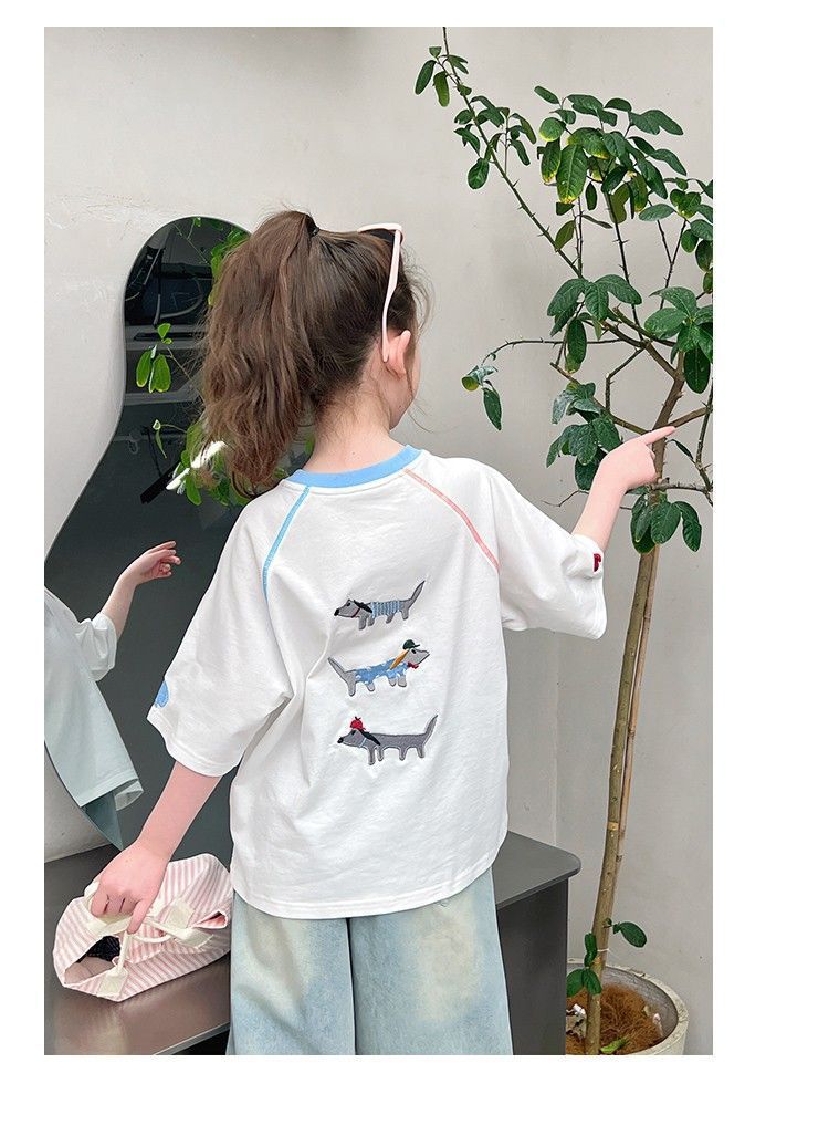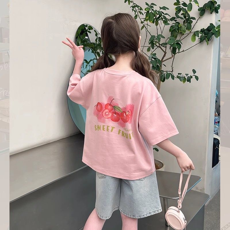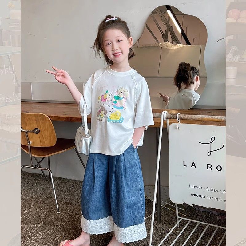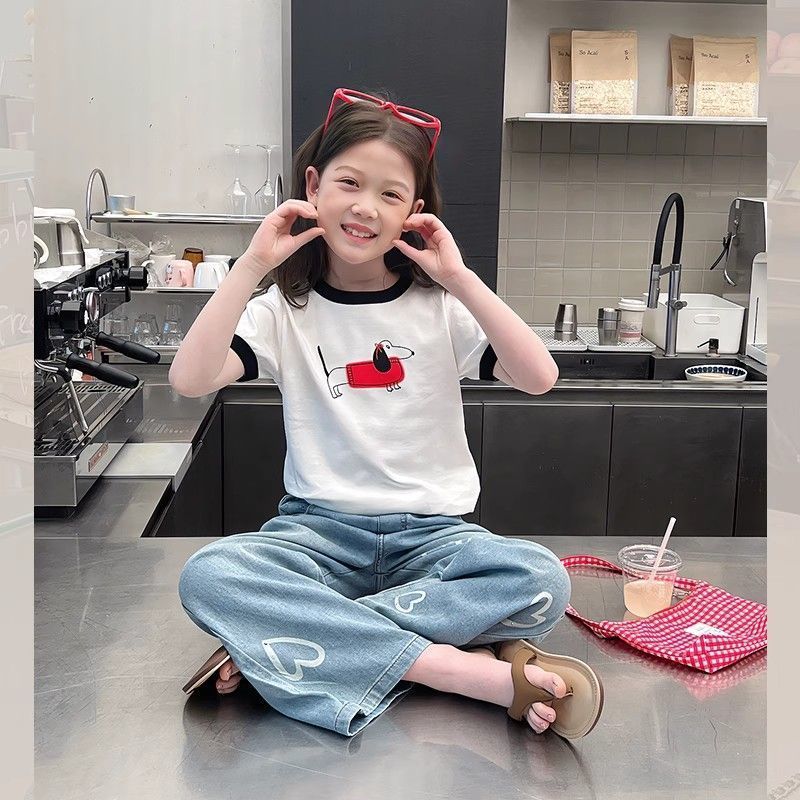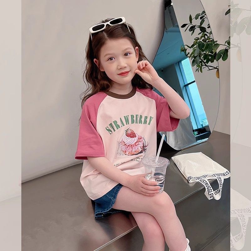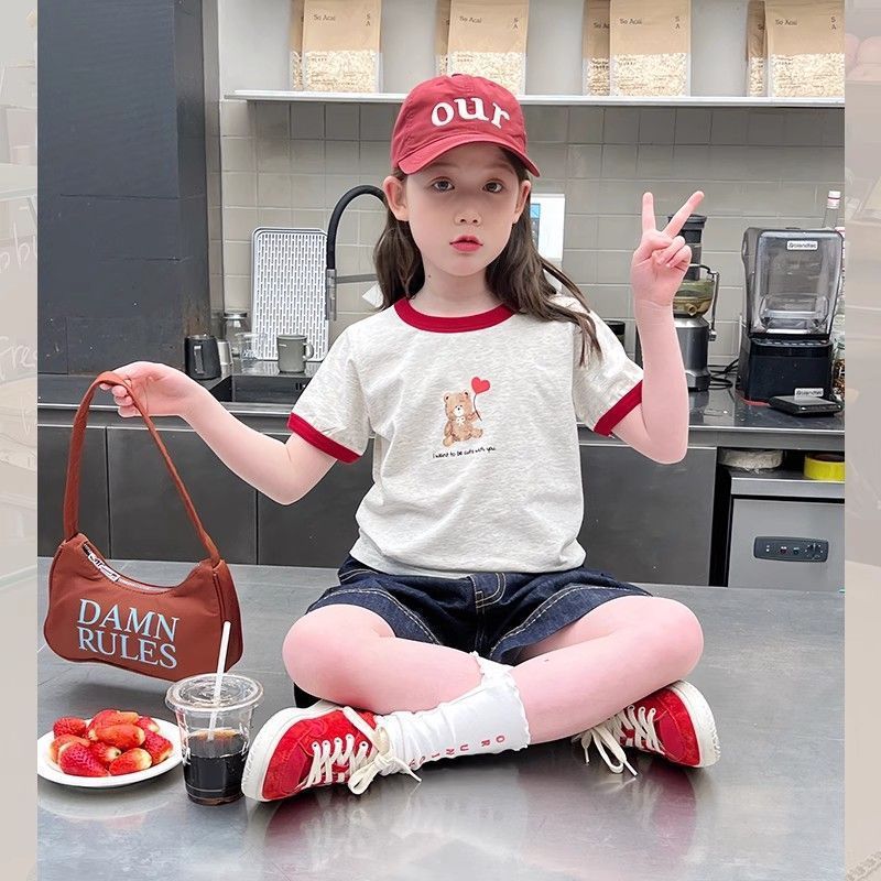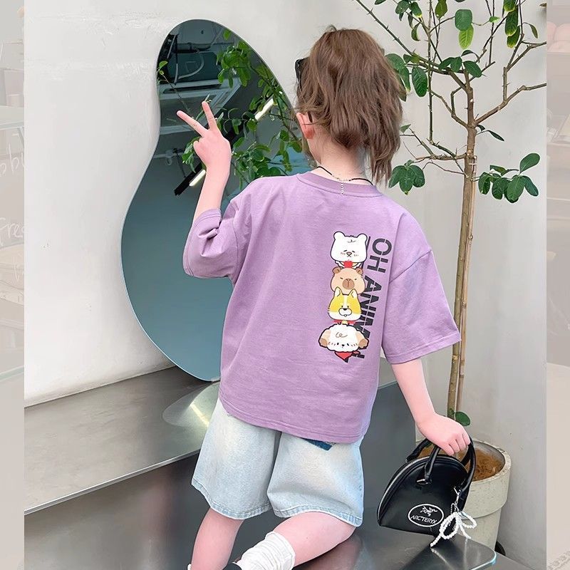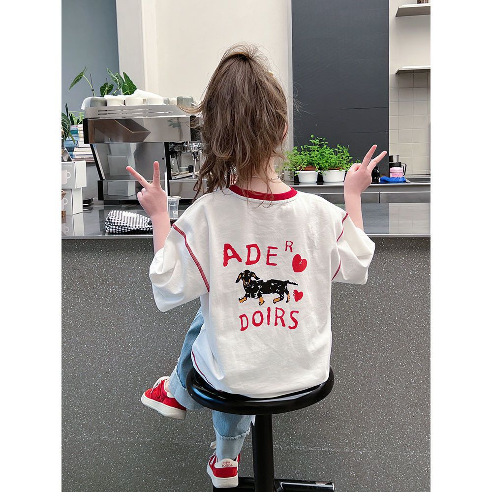 아동 패션 인터넷 연예인 반팔 흰색 티셔츠 소녀 유행 느슨한 한국 스타일 탑 큰 아동복 2025 여름 새 스타일스토어 가기