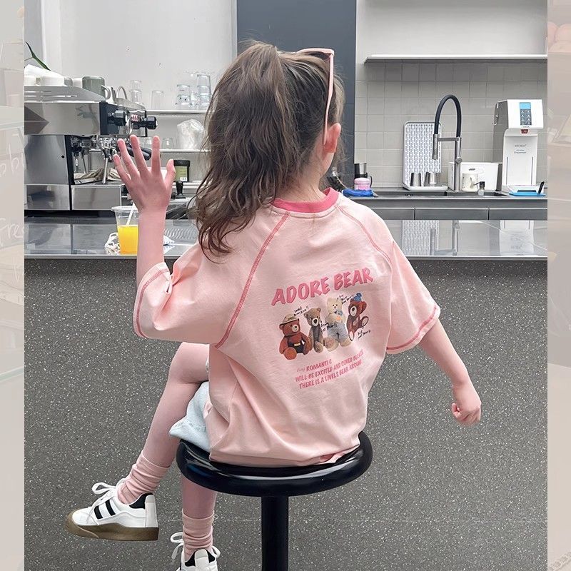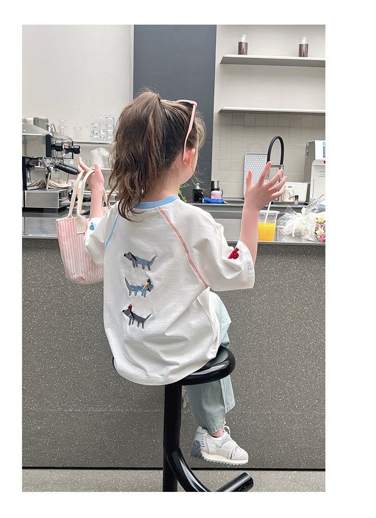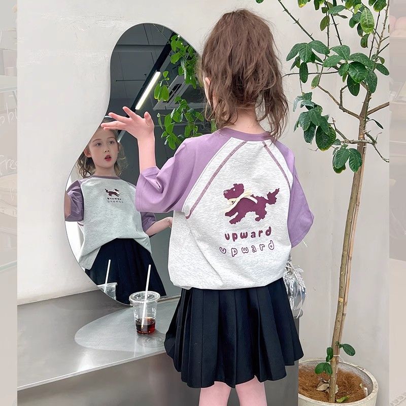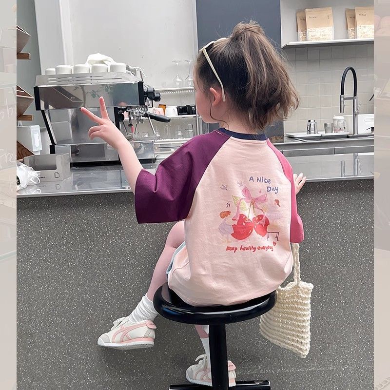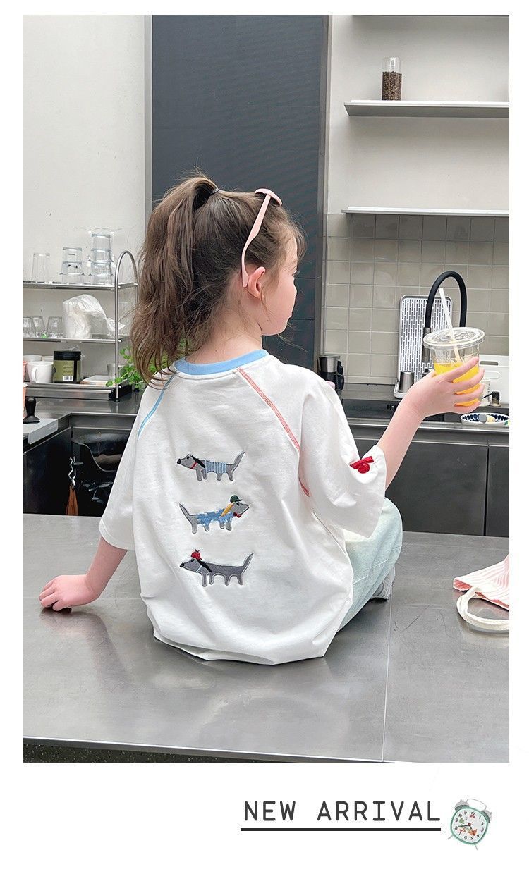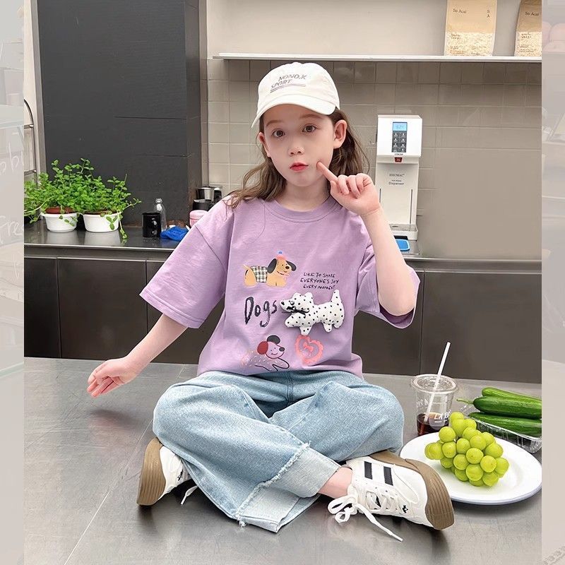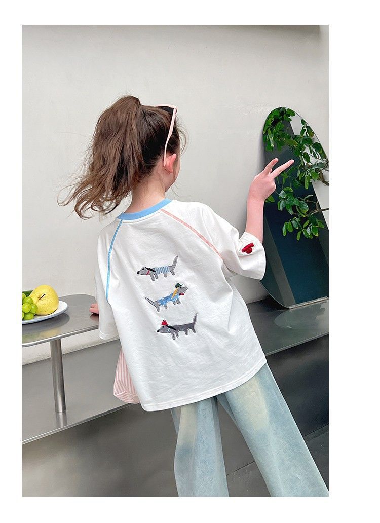 아동 패션 인터넷 연예인 반팔 흰색 티셔츠 소녀 유행 느슨한 한국 스타일 탑 큰 아동복 2025 여름 새 스타일스토어 가기