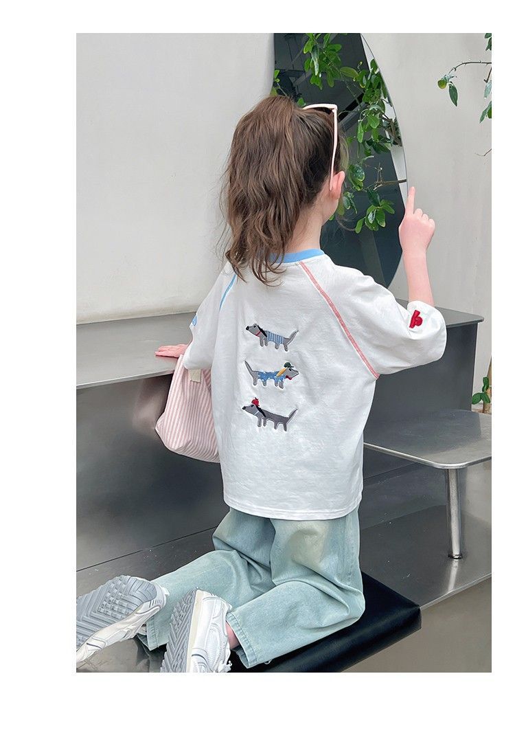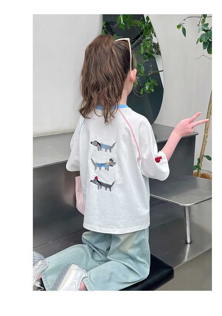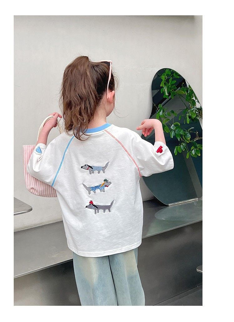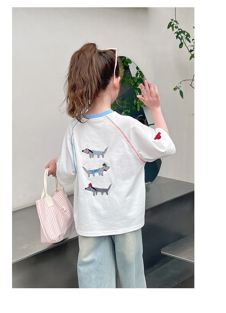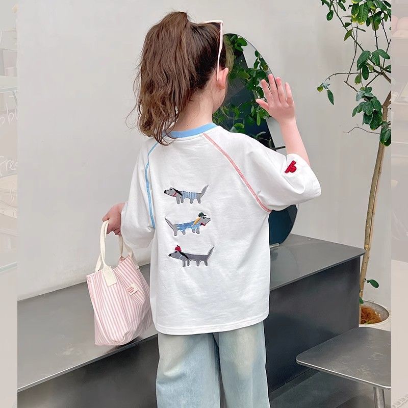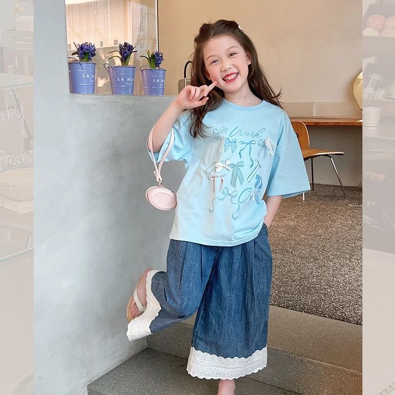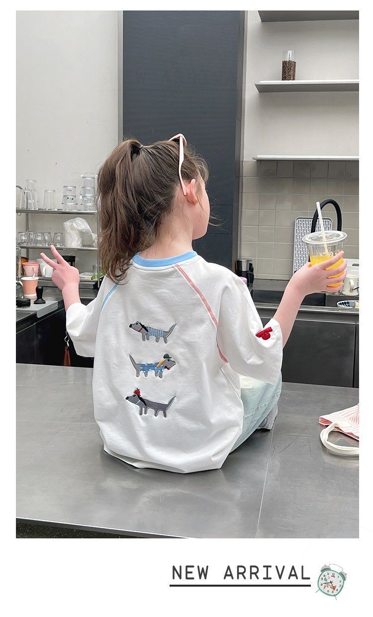 아동 패션 인터넷 연예인 반팔 흰색 티셔츠 소녀 유행 느슨한 한국 스타일 탑 큰 아동복 2025 여름 새 스타일스토어 가기