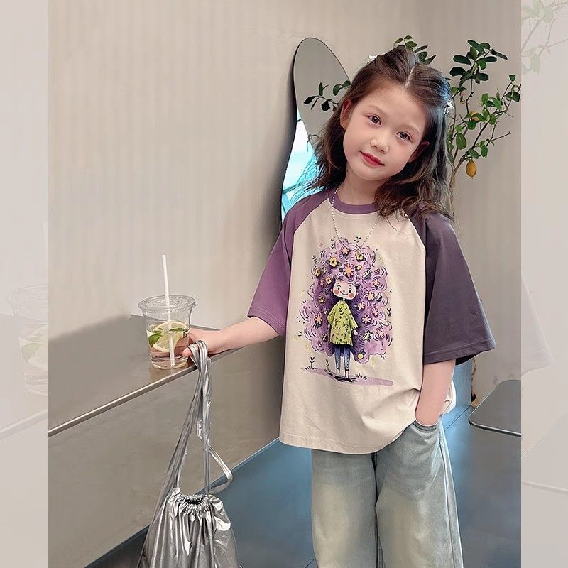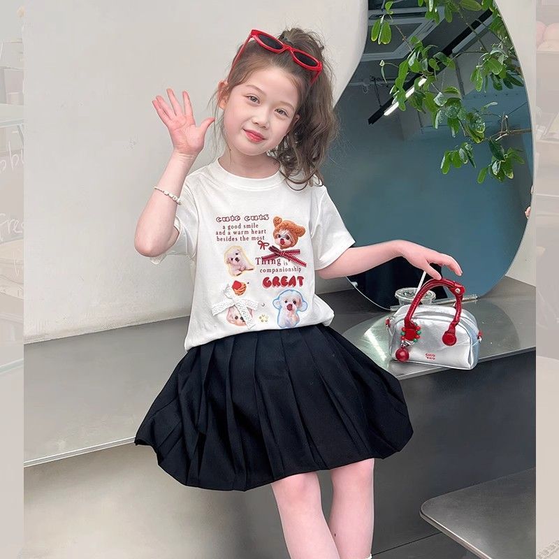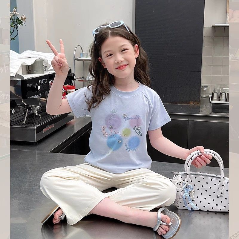 아동 패션 인터넷 연예인 반팔 흰색 티셔츠 소녀 유행 느슨한 한국 스타일 탑 큰 아동복 2025 여름 새 스타일