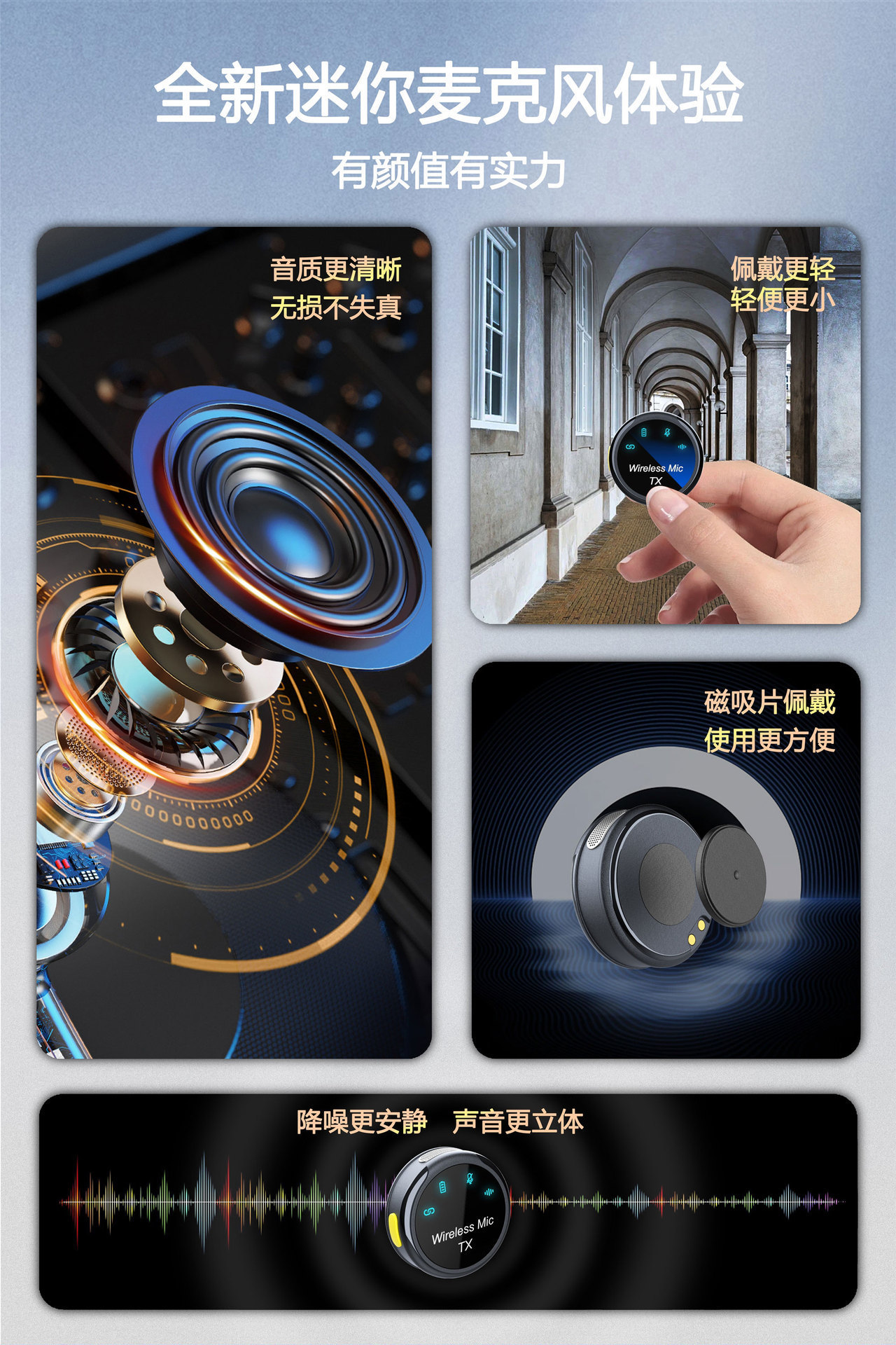 신형 무선 라발리에 마이크 버튼형 자석식 휴대폰 라이브 방송용 마이크 인터뷰용 고화질 녹음 소음 감소 마이크스토어 가기