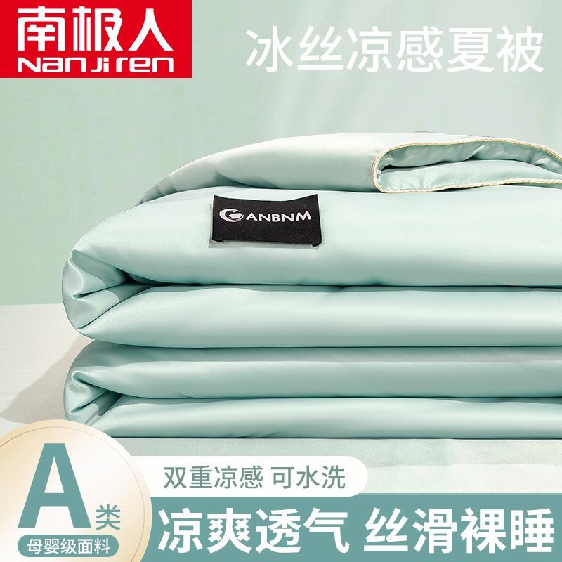 Nanjiren 여름 시원한 이불 얼음 실크 여름 시원한 이불 알몸 수면 에어컨 이불 기계 세탁 가능한 여름 침실 얇은 여름 이불
