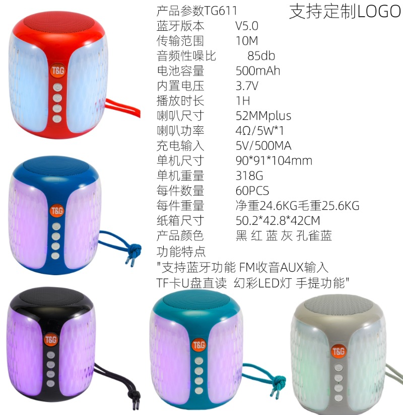 새로운 TG611 블루투스 스피커 홈 야외 휴대용 무선 서브 우퍼 카드 U 디스크 고품질 오디오