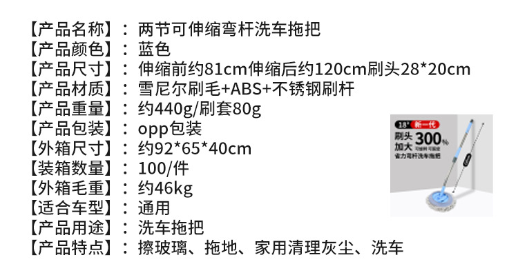 • 2단 스테인리스 스틸(120cm) 굽은 막대 세차용 걸레