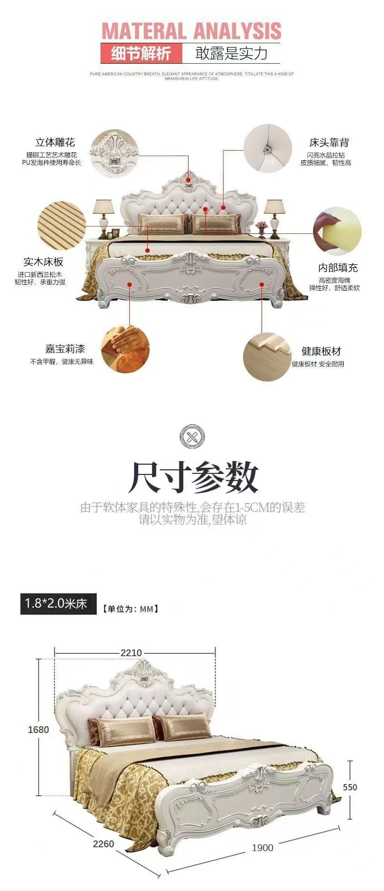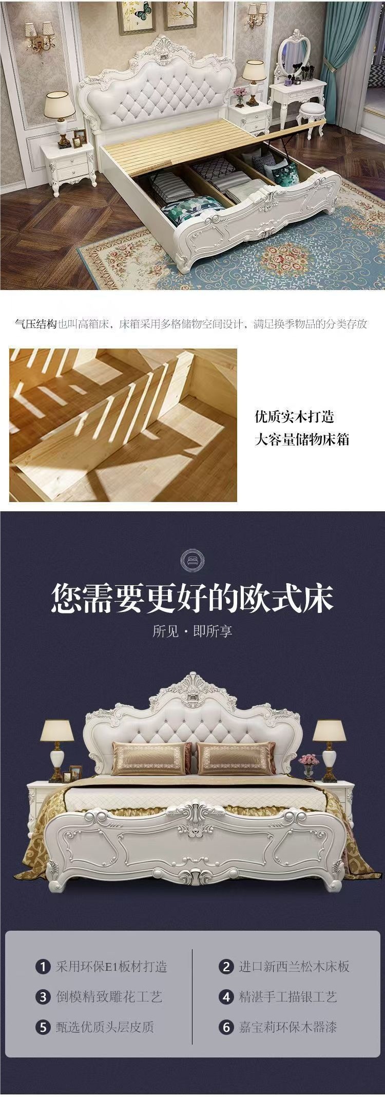 현대적인 심플한 유럽식 침대 더블 1.8x 2m 마스터 침실 대형 침대 럭셔리 공주 침대 1.5m 싱글 침대 수납 침대스토어 가기