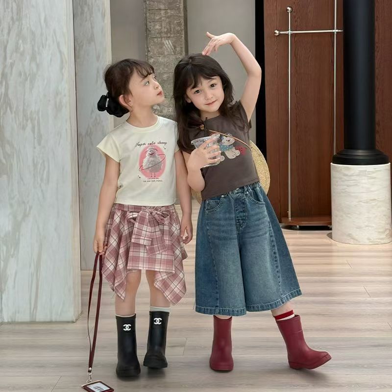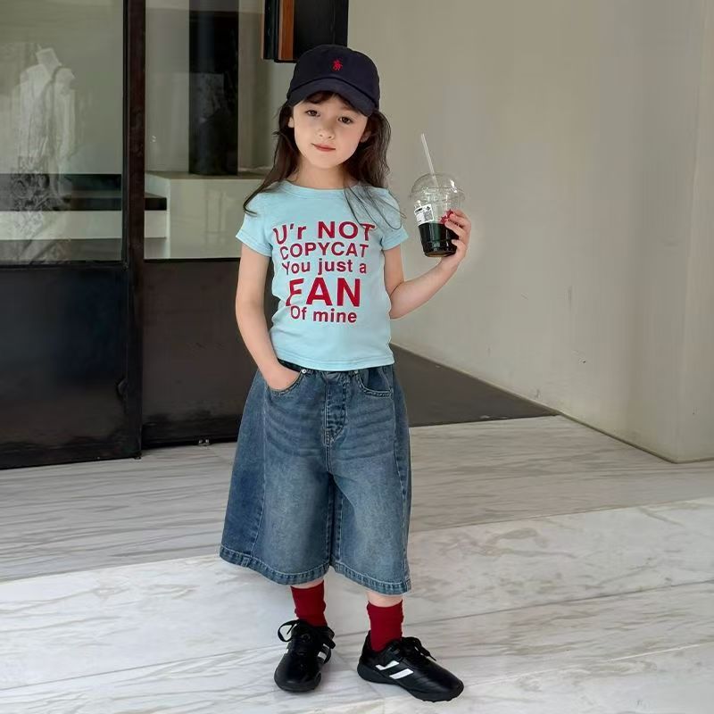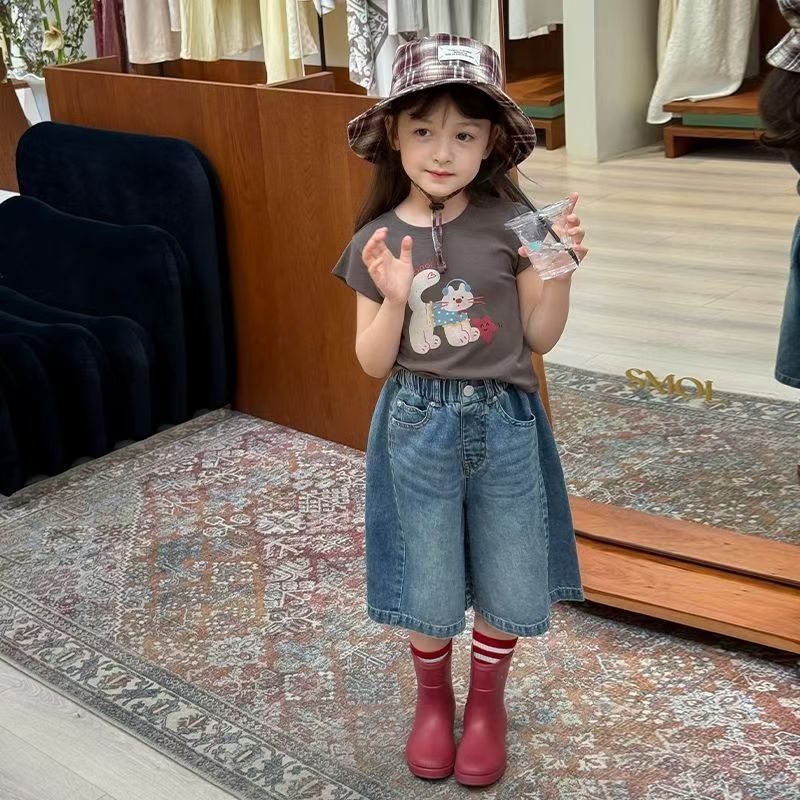 여아 청바지 2026 여름 신상 아동용 한국 스타일 패셔너블 데님 미디엄 팬츠 중대형 아동용 얇은 스트레이트 반바지