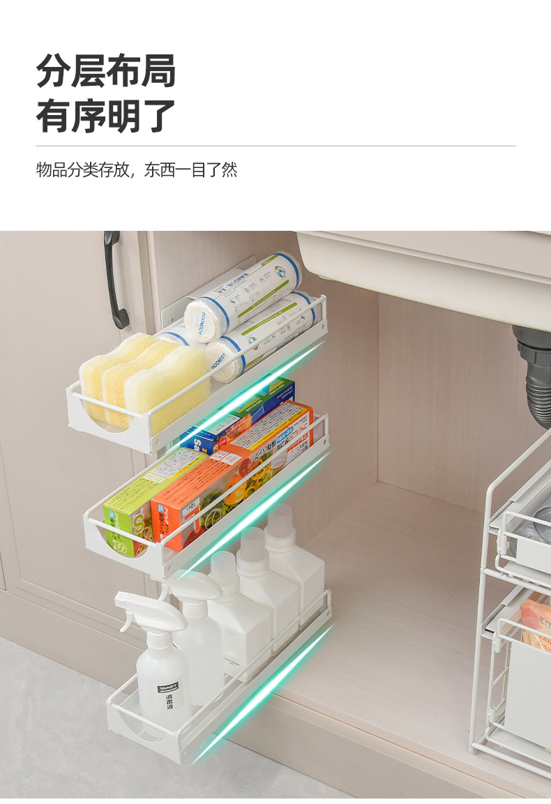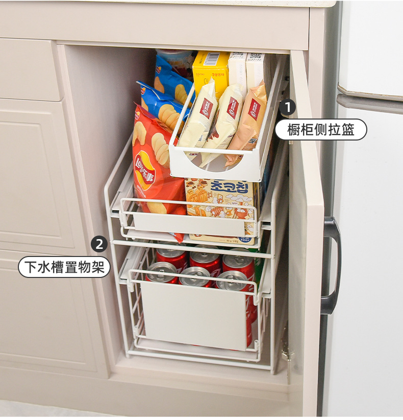 펀치없는 서랍형 수납선반 벽걸이형 조미료선반 캐비닛 홈 주방싱크대 하부 레일 수납선반스토어 가기