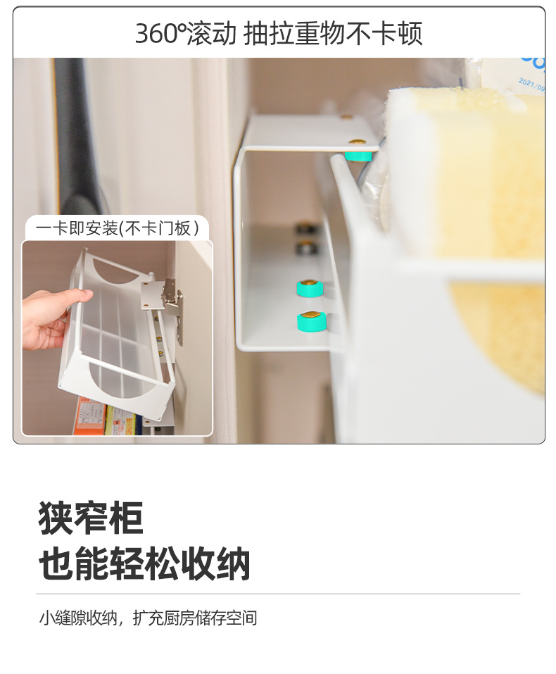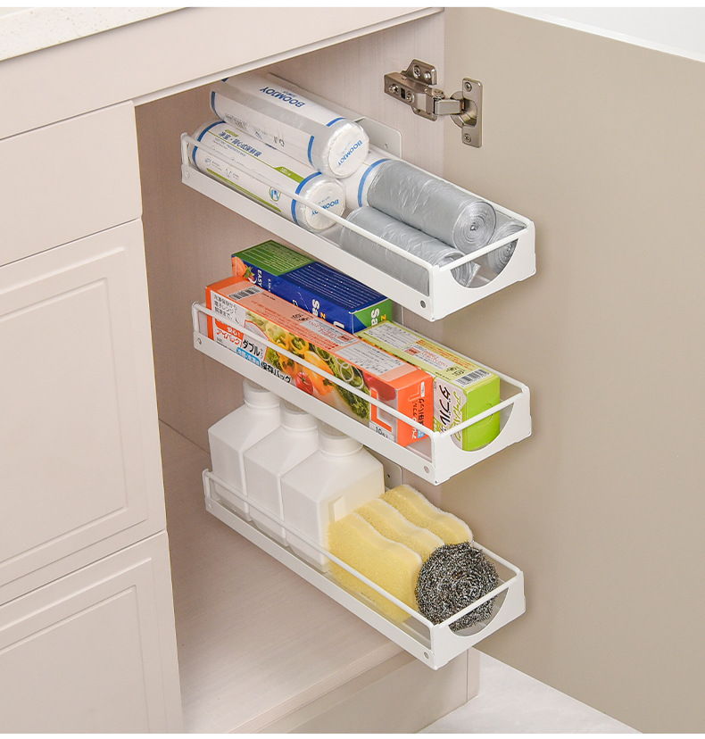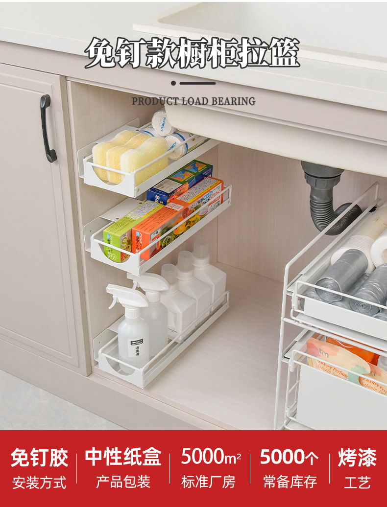펀치없는 서랍형 수납선반 벽걸이형 조미료선반 캐비닛 홈 주방싱크대 하부 레일 수납선반