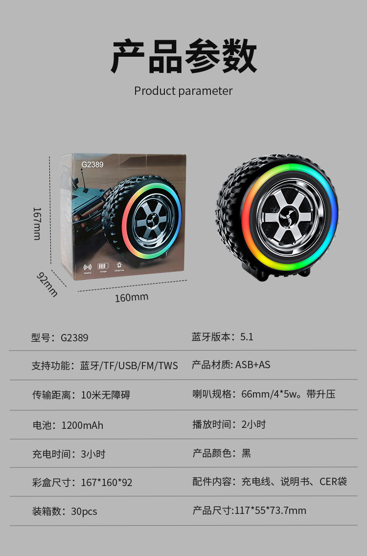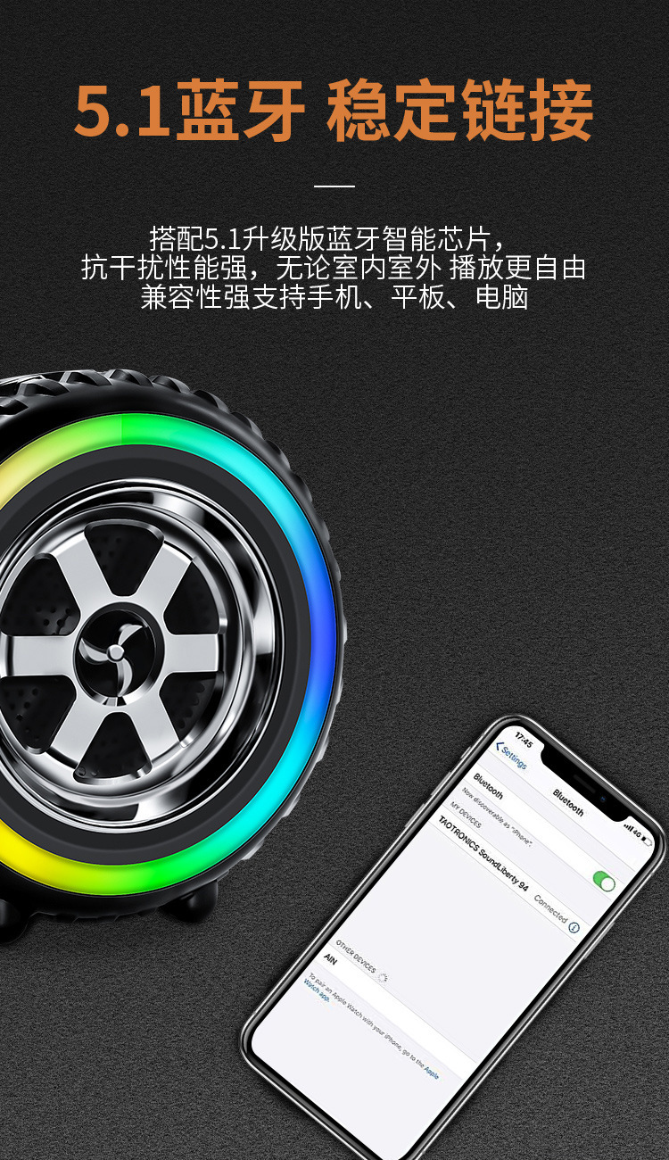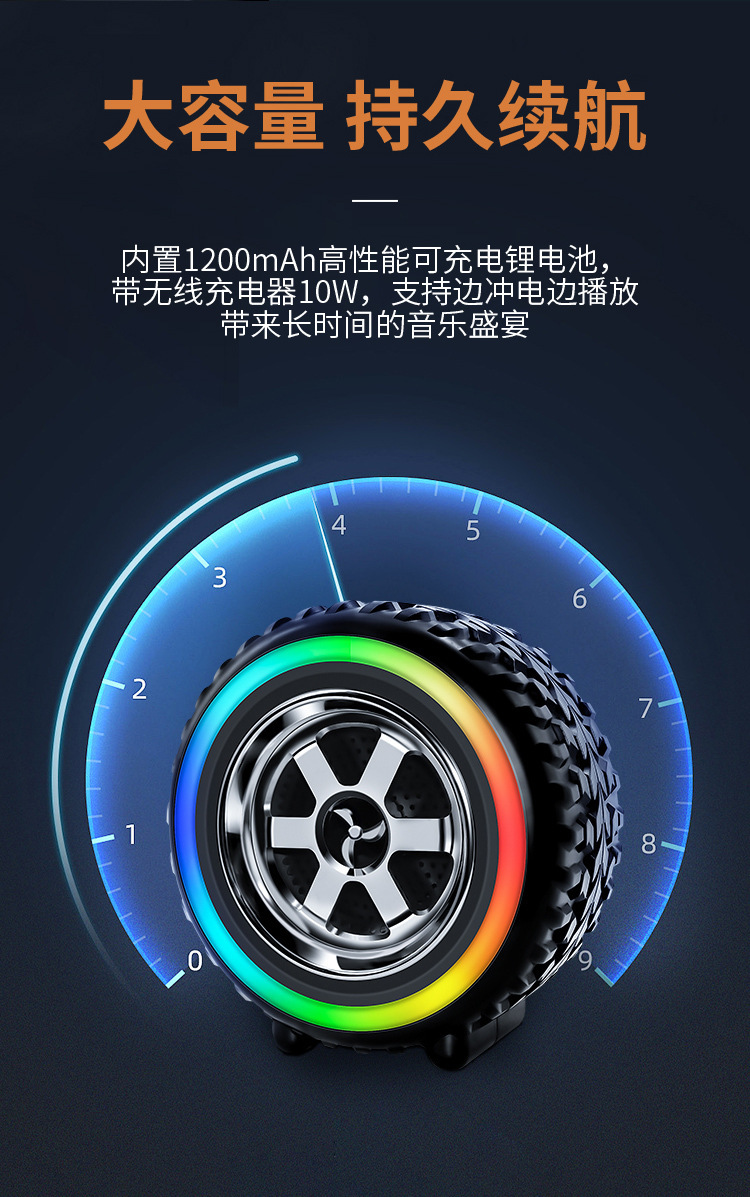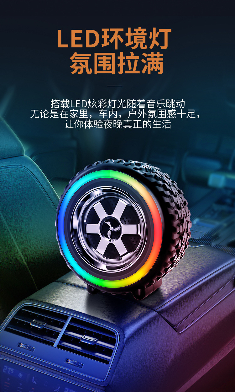 블루투스 스피커 LED 조명 미니 서브우퍼 휴대용 가정용 데스크탑 자동차 타이어 스피커 스테레오