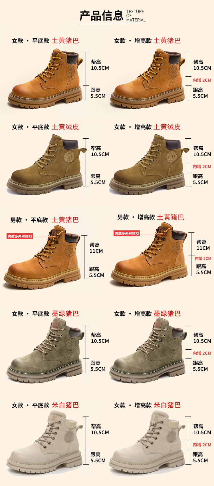 增高款跟高数据为4.5CM+2CM内增高